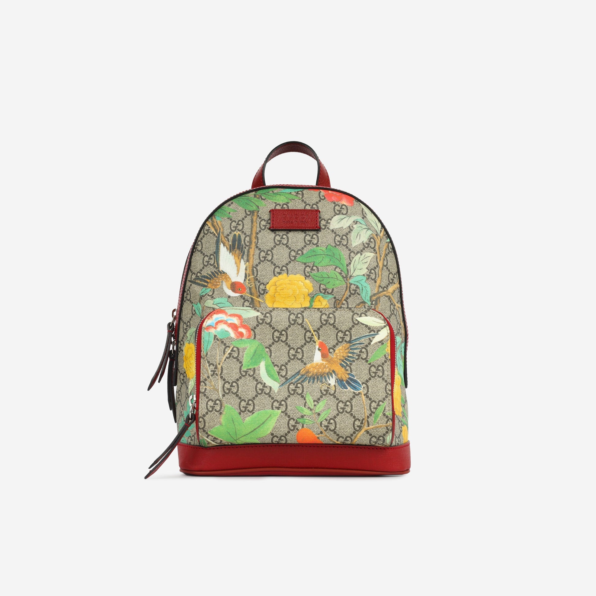 From their Fall/Winter 2015 collection, Gucci presents this stunning GG Supreme Blooms Floral Print backpack. With its signature "GG" monogram on canvas featuring an elegant floral pattern throughout, Gucci's Blooms motif has, literally, blossomed into one of the brand's iconic designs. This backpack is perfect for carrying all your essentials, but in style. Wherever you need to go, or wherever you need to be, you can be sure that this bag is both practical as well as stylish.