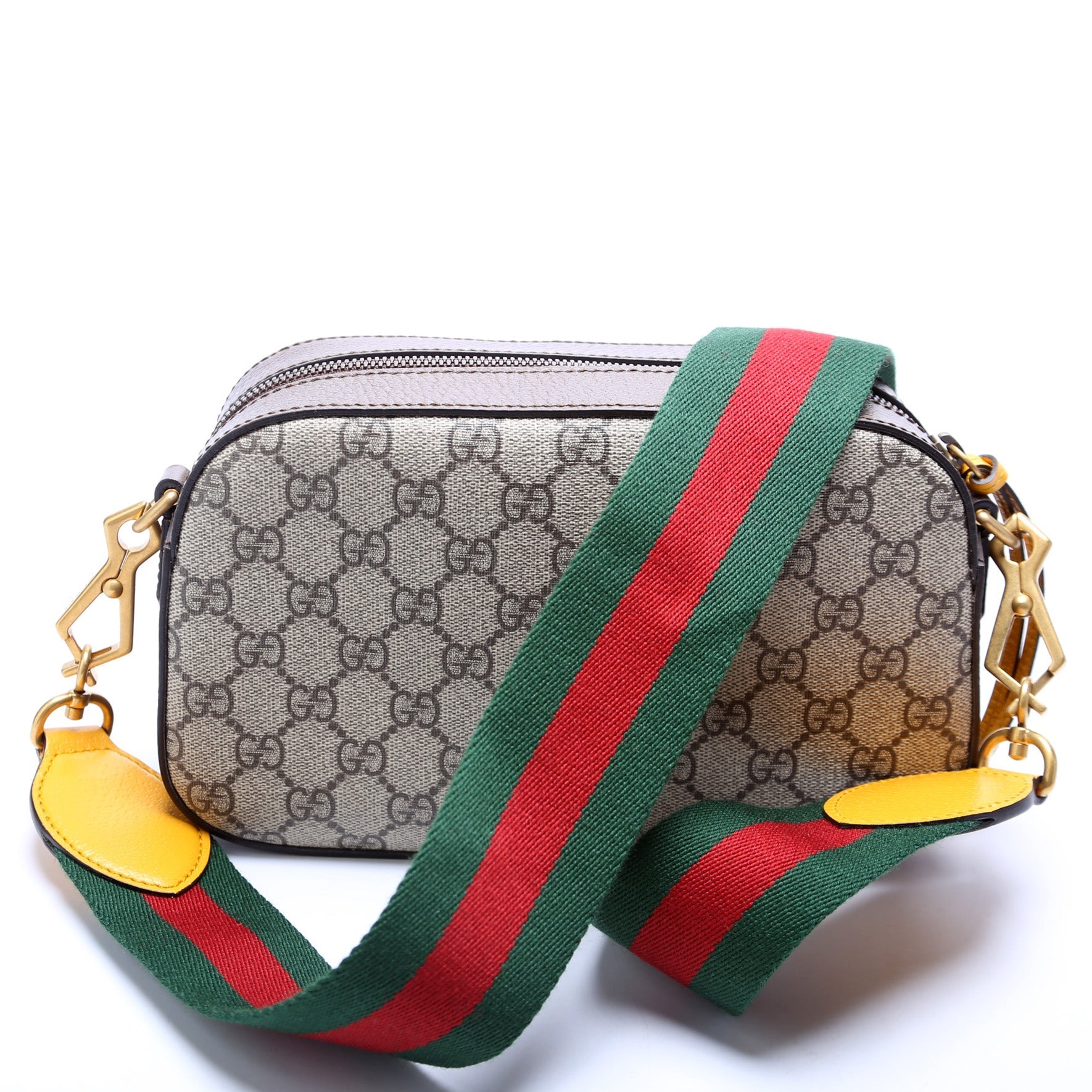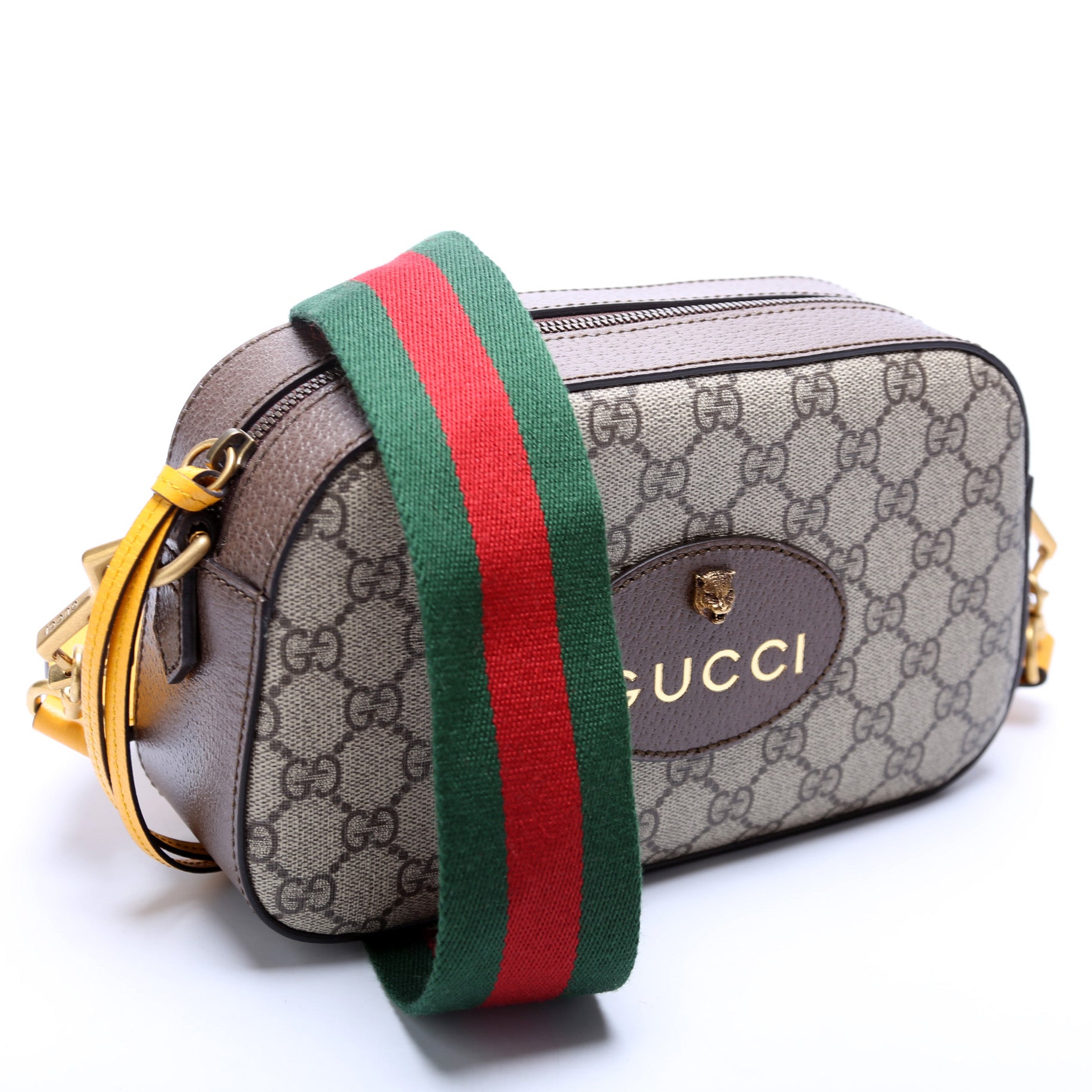 This Gucci Messenger Bag is d 100% . The exterior is in the classic Gucci GG Supreme coated canvas.