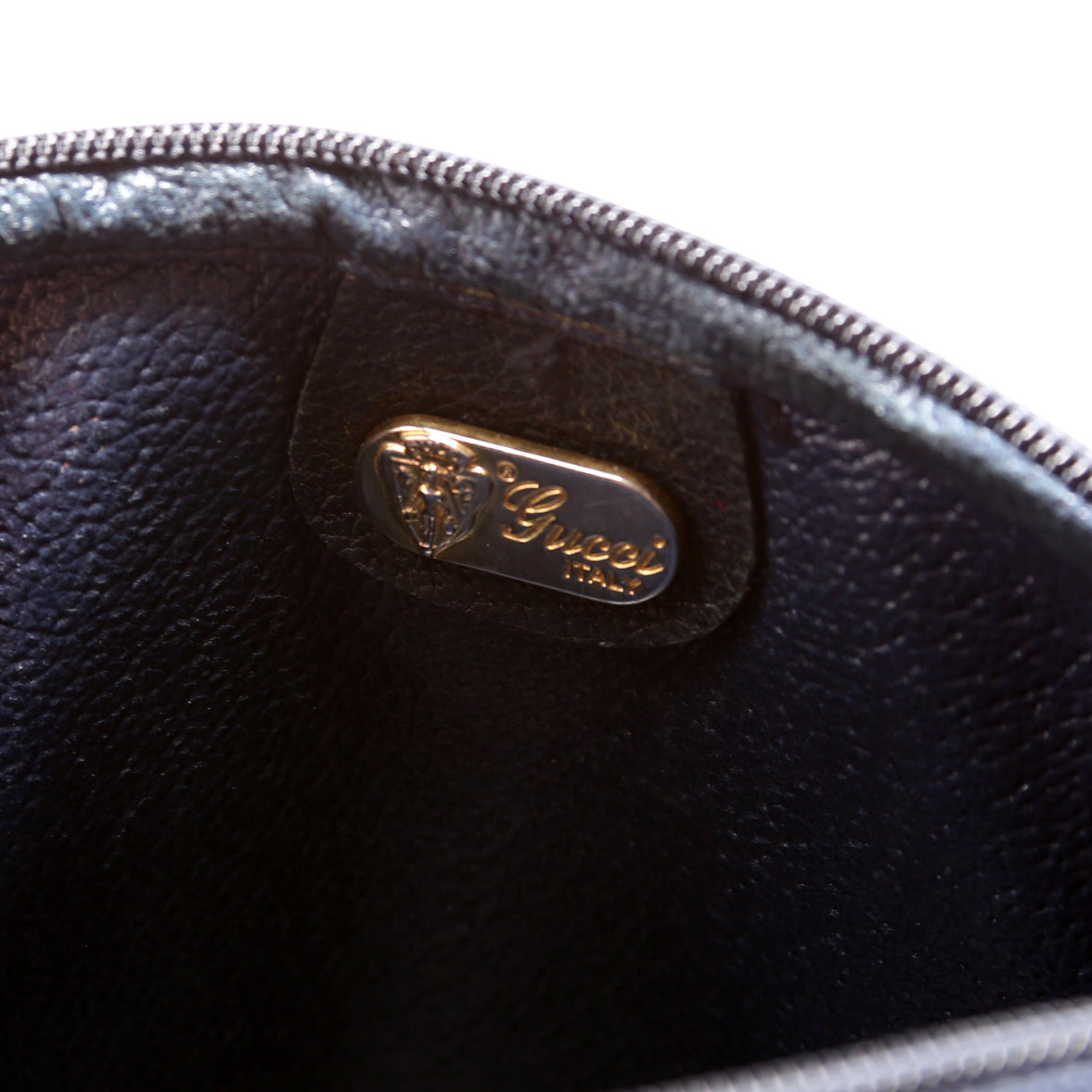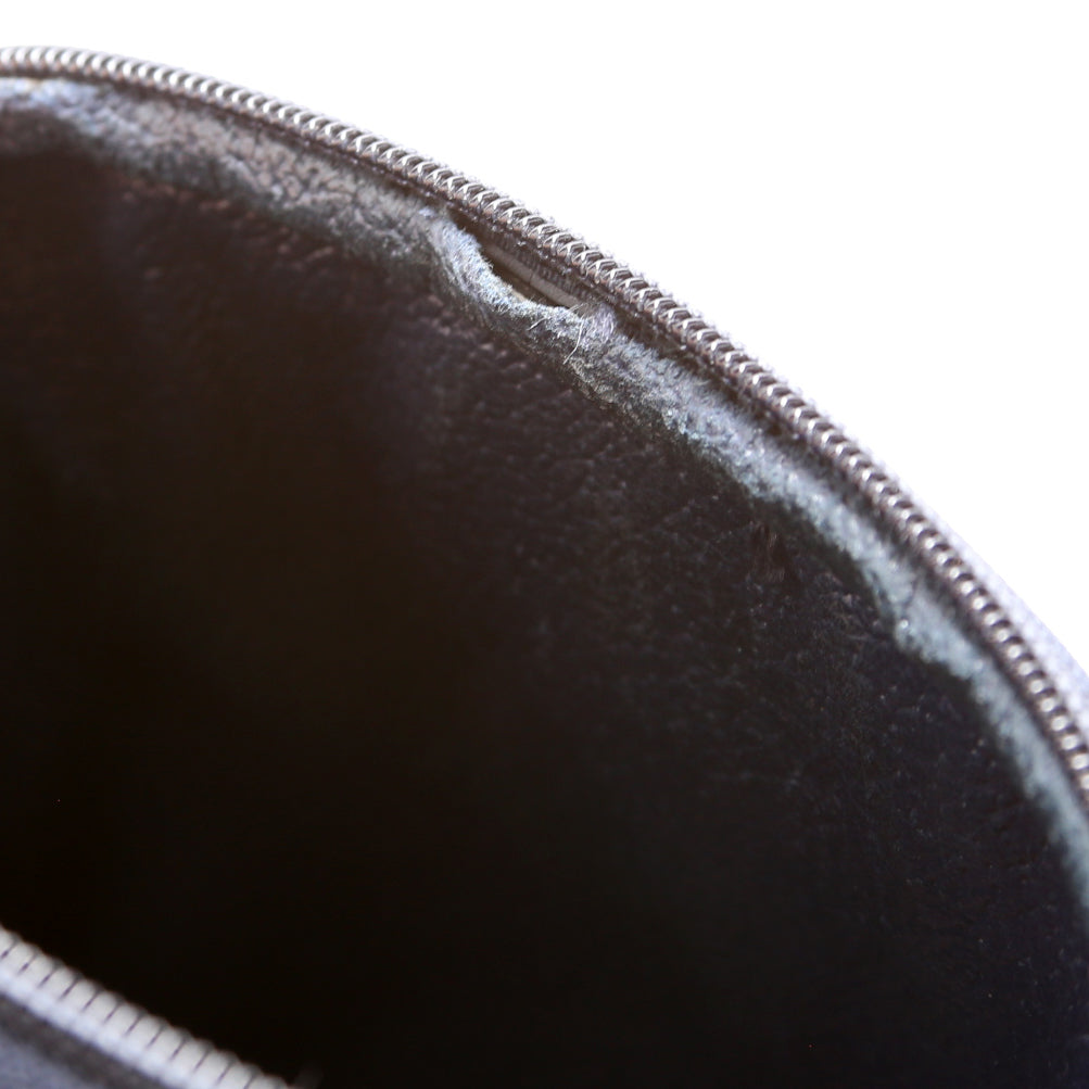 Interior: The interior shows minor wear throughout. The lining is peeling near the zipper.