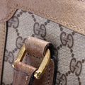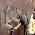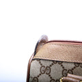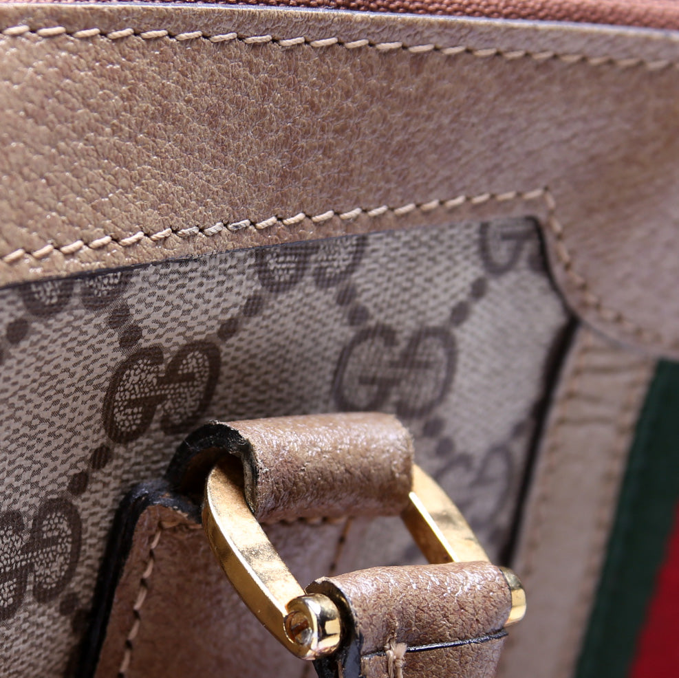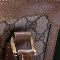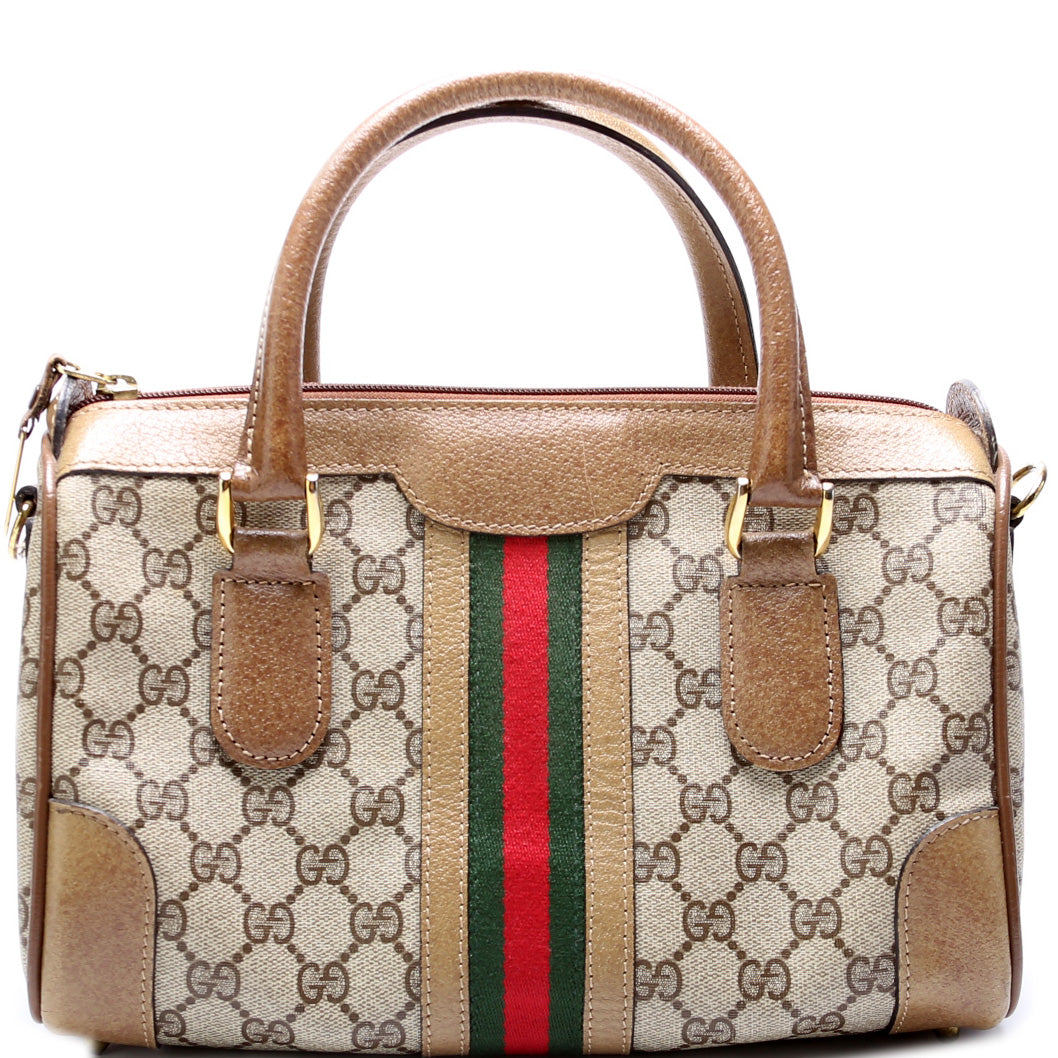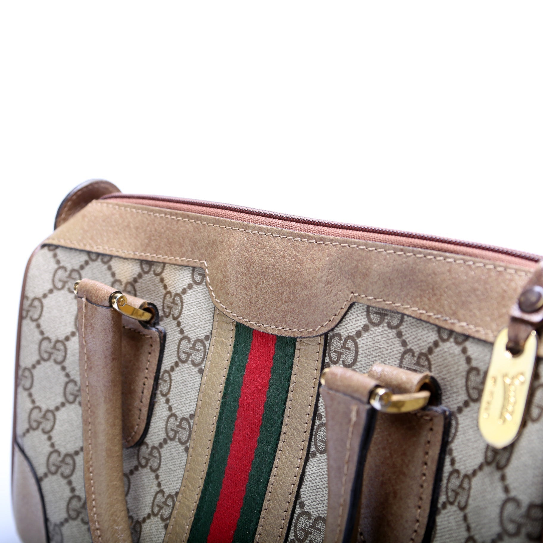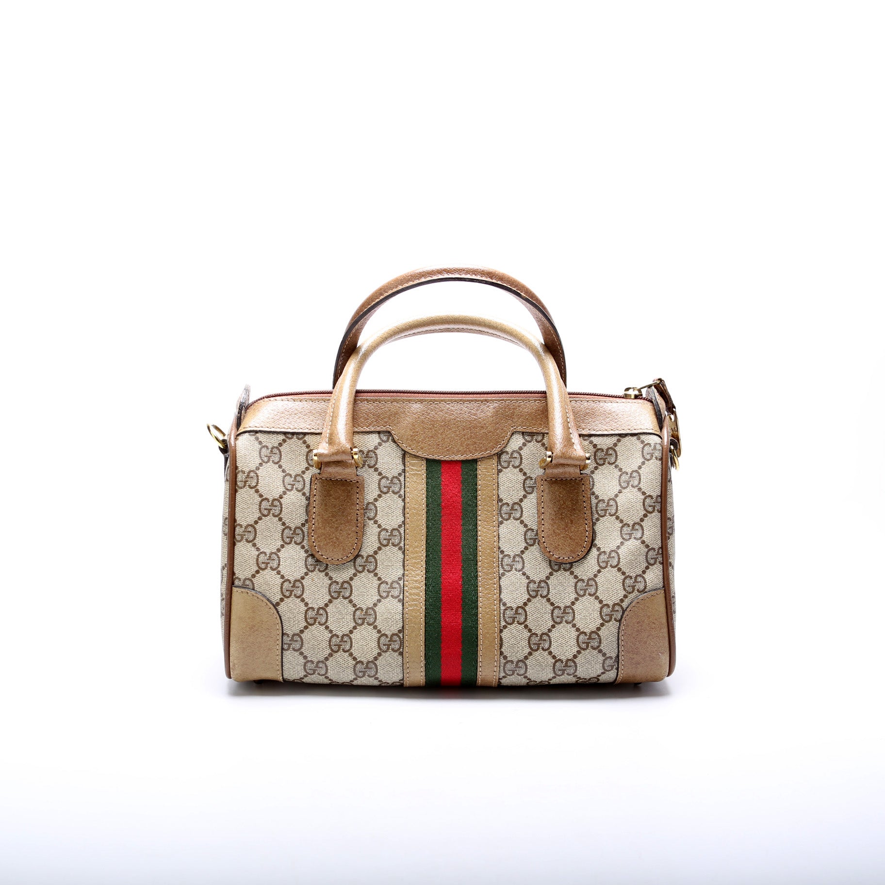 This Gucci GG Supreme Web Boston Bagis eye catching bag. The exterior is in the classic Gucci GG Supreme coated canvas.