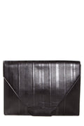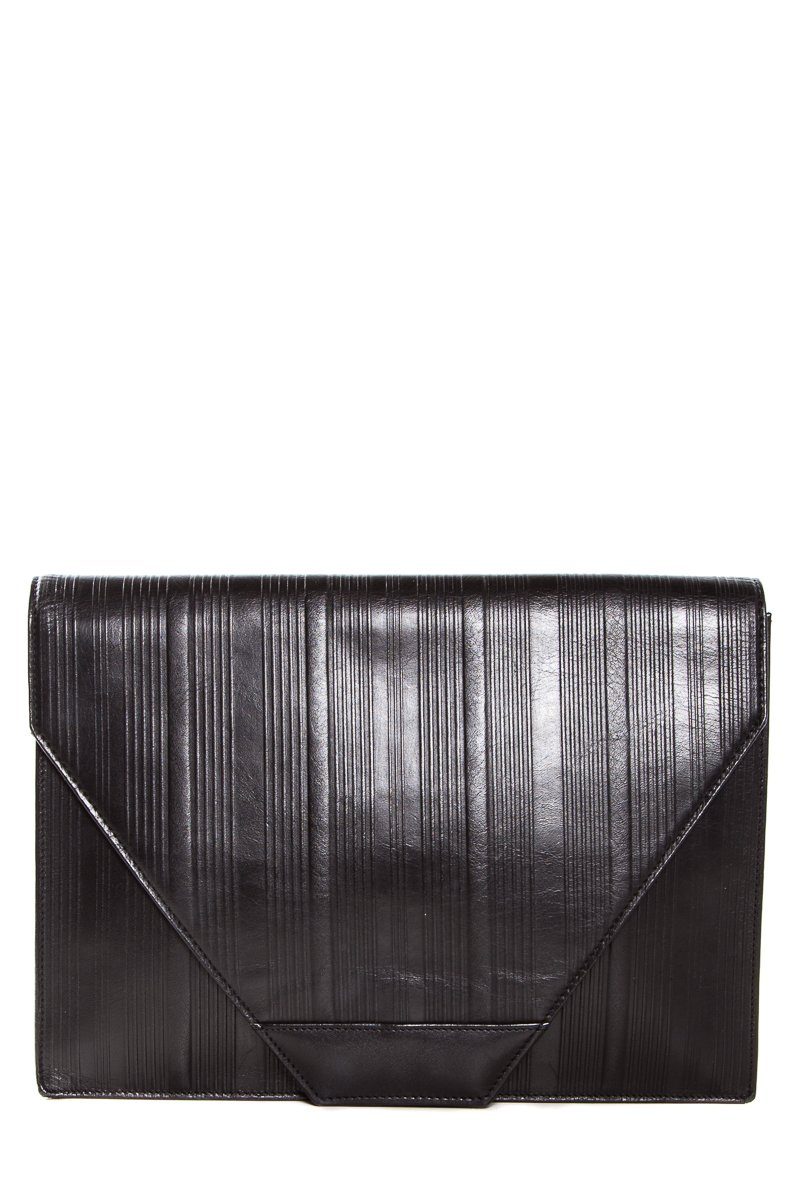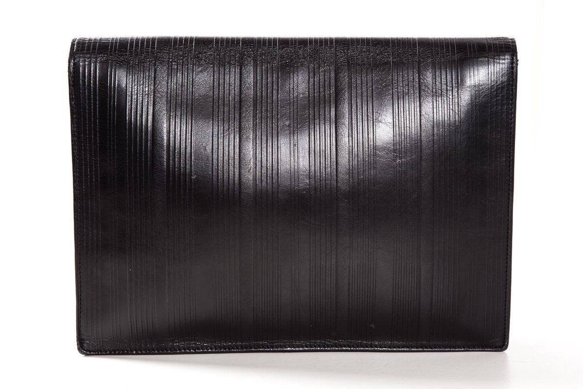 Gianni Versace Vintage Black Leather Snap Closure Clutch