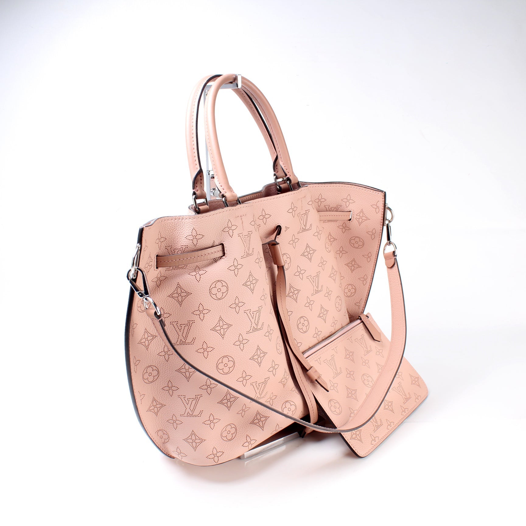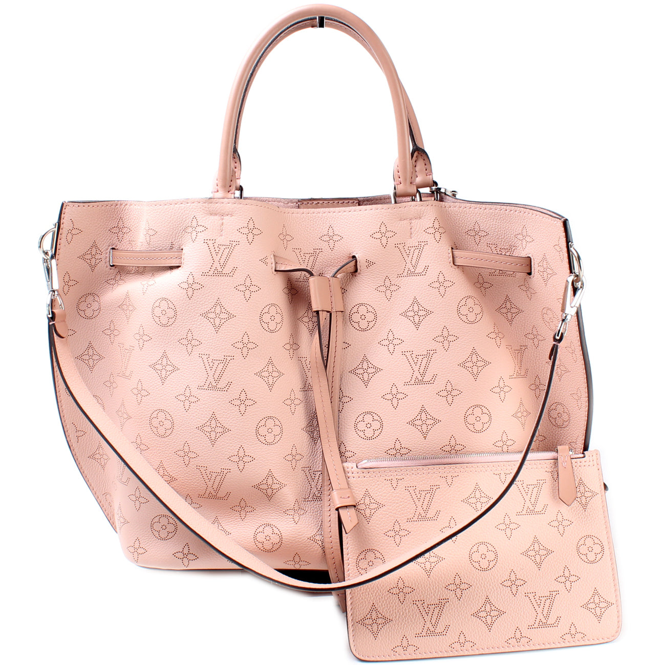 This Louis Vuitton Girolatais eye catching bag. The exterior is in the classic Louis Vuitton Mahina leather.