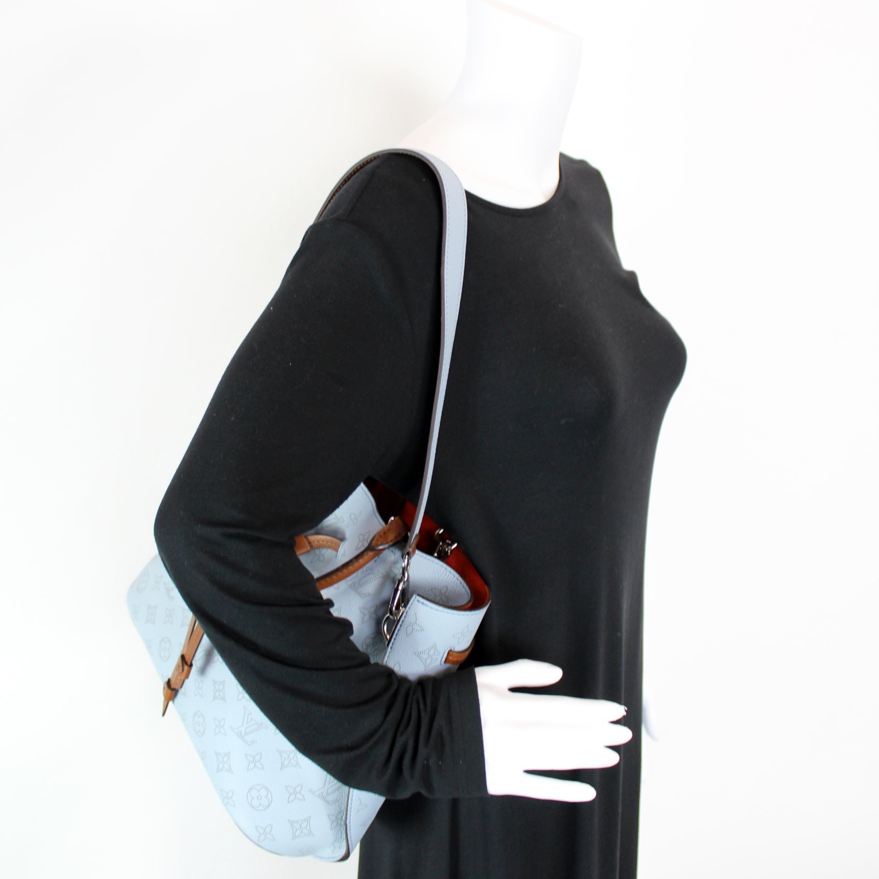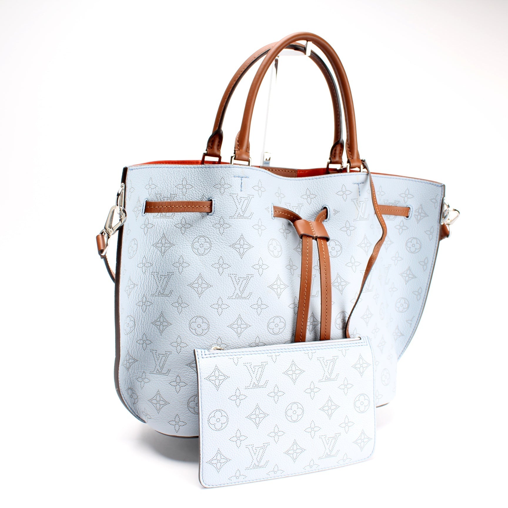 This Louis Vuitton Girolatais eye catching bag. The exterior is in the classic Louis Vuitton Mahina leather.