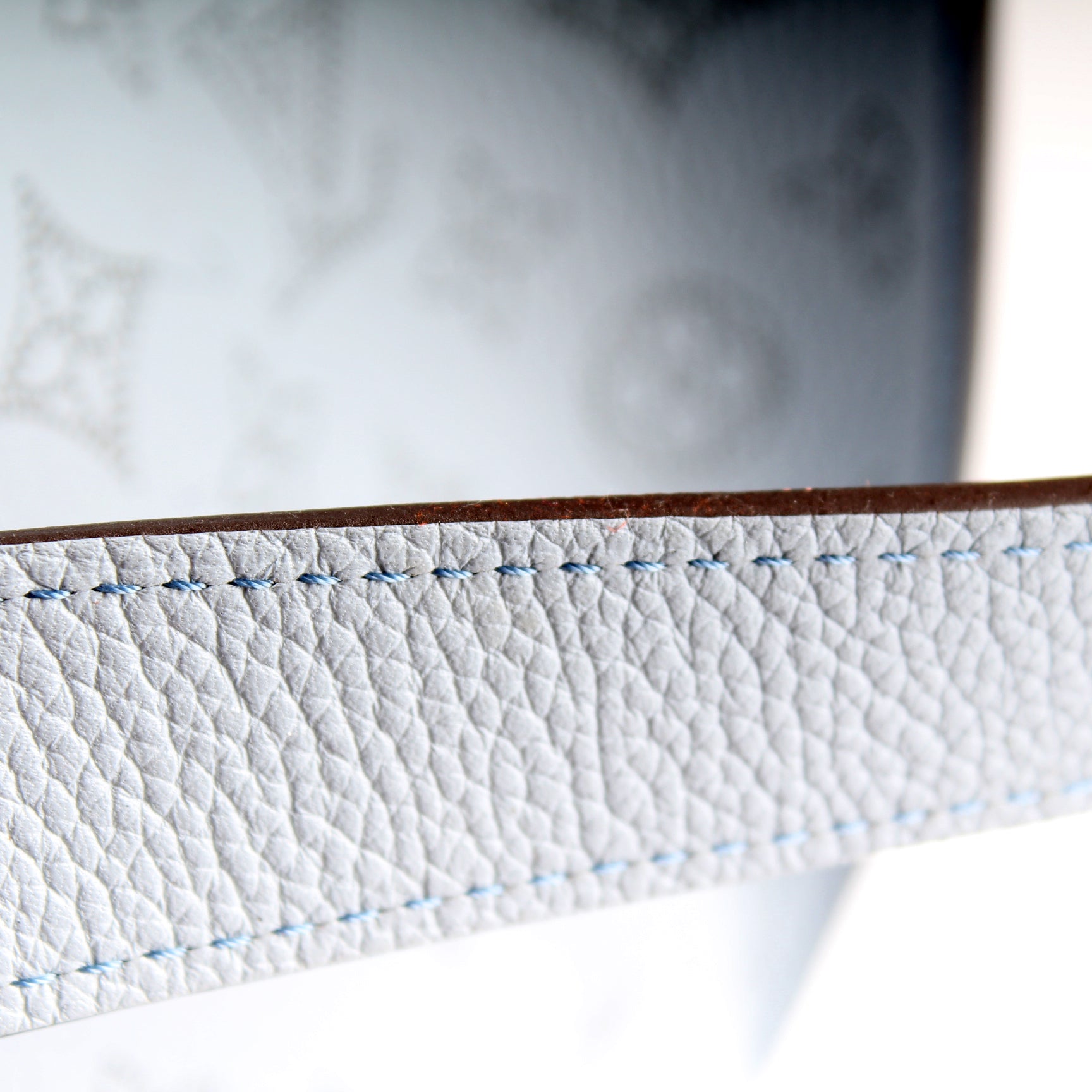 Exterior: The exterior leather shows no major signs of wear. The pipping shows light wear.