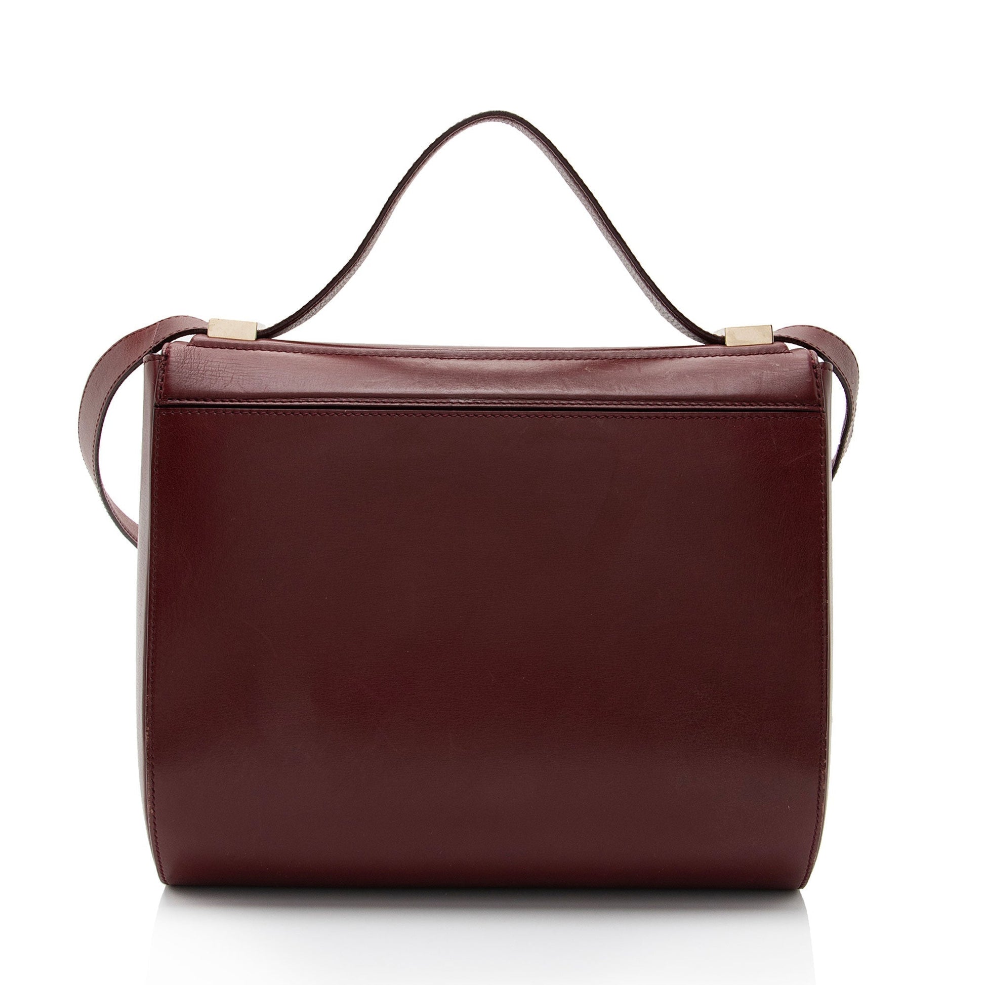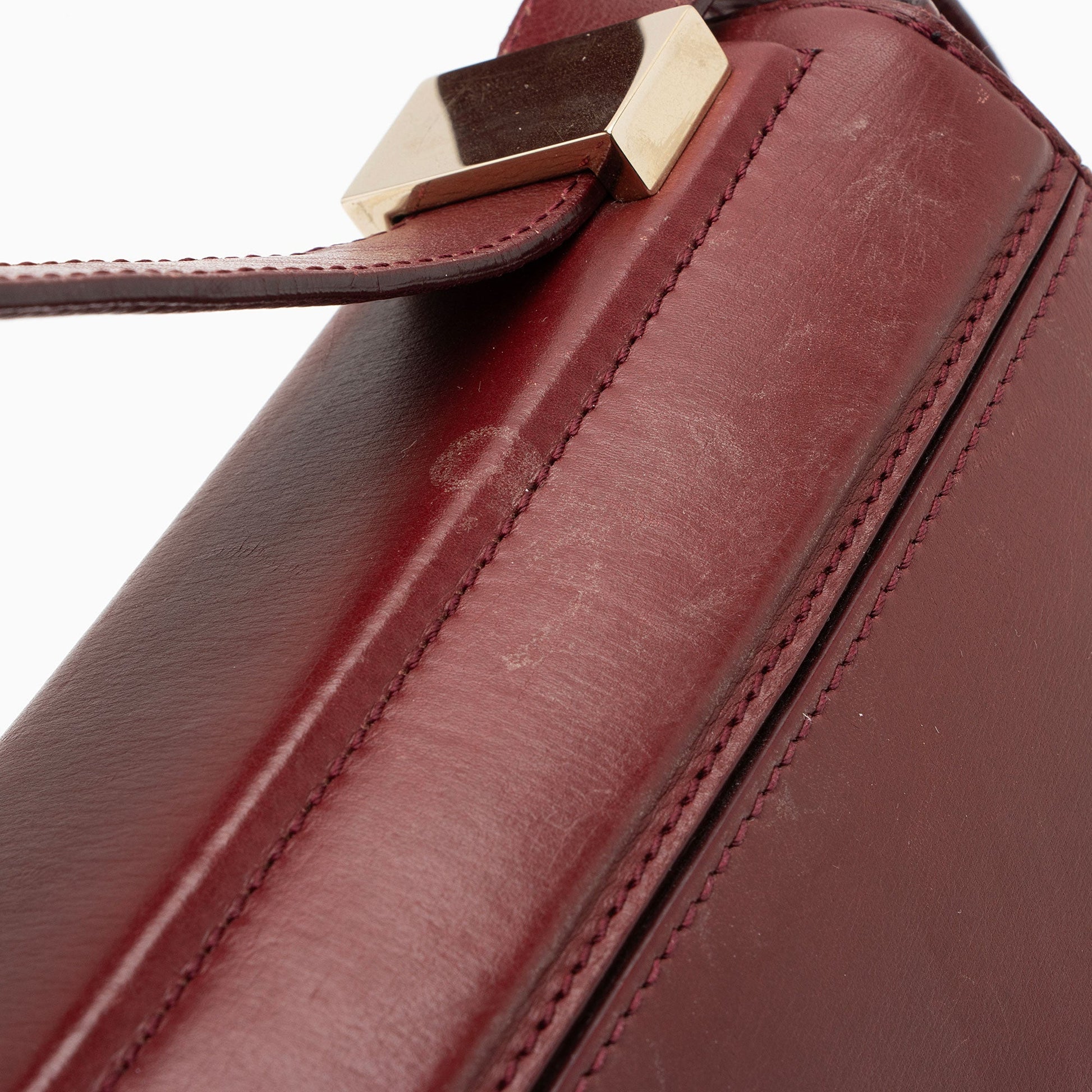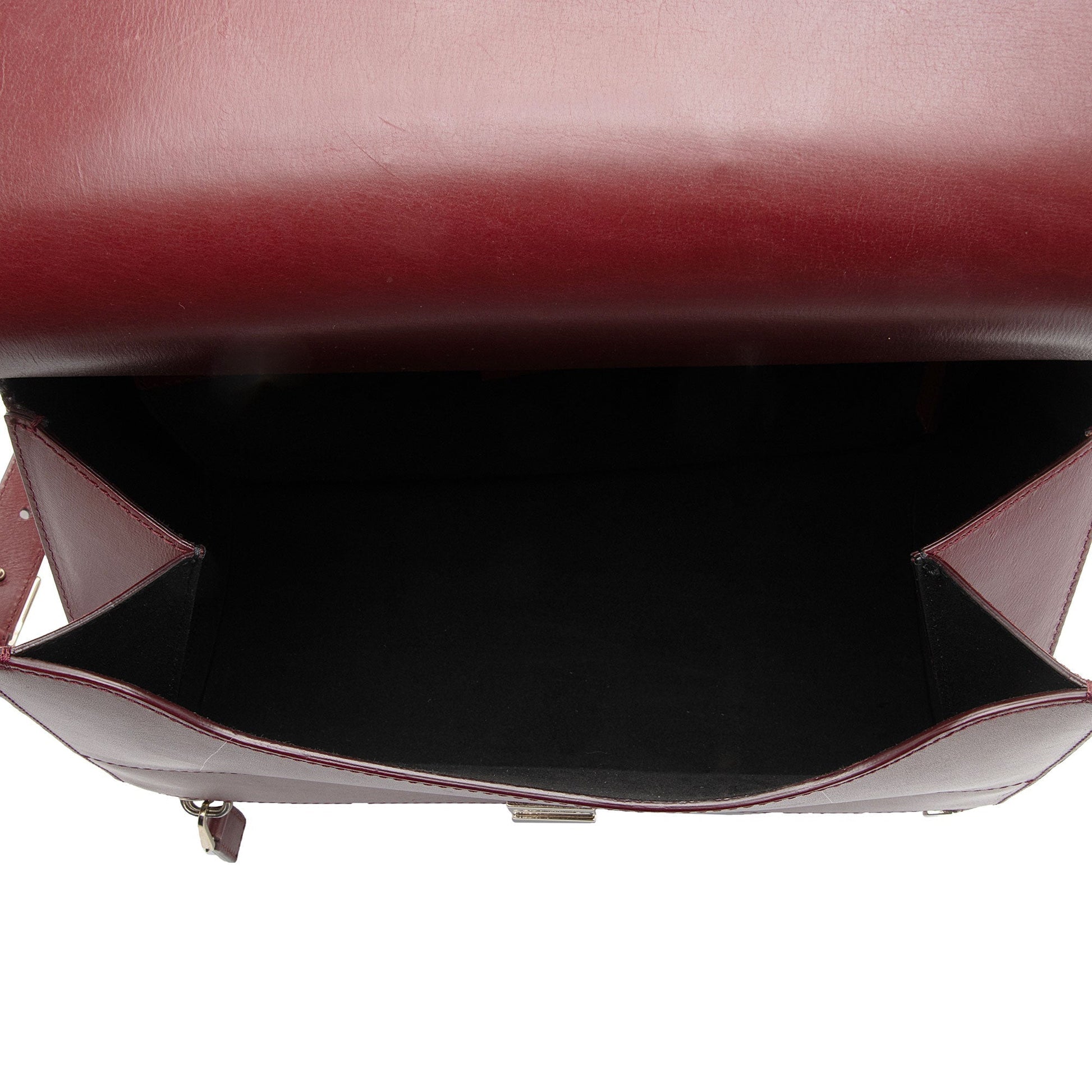 Condition Notes: Light scuffs throughout exterior. Creasing and light darkening throughout shoulder strap. Cracking throughout shoulder strap casing. Surface scratches to hardware. Scuffs throughout interior flap. Light marks throughout interior.