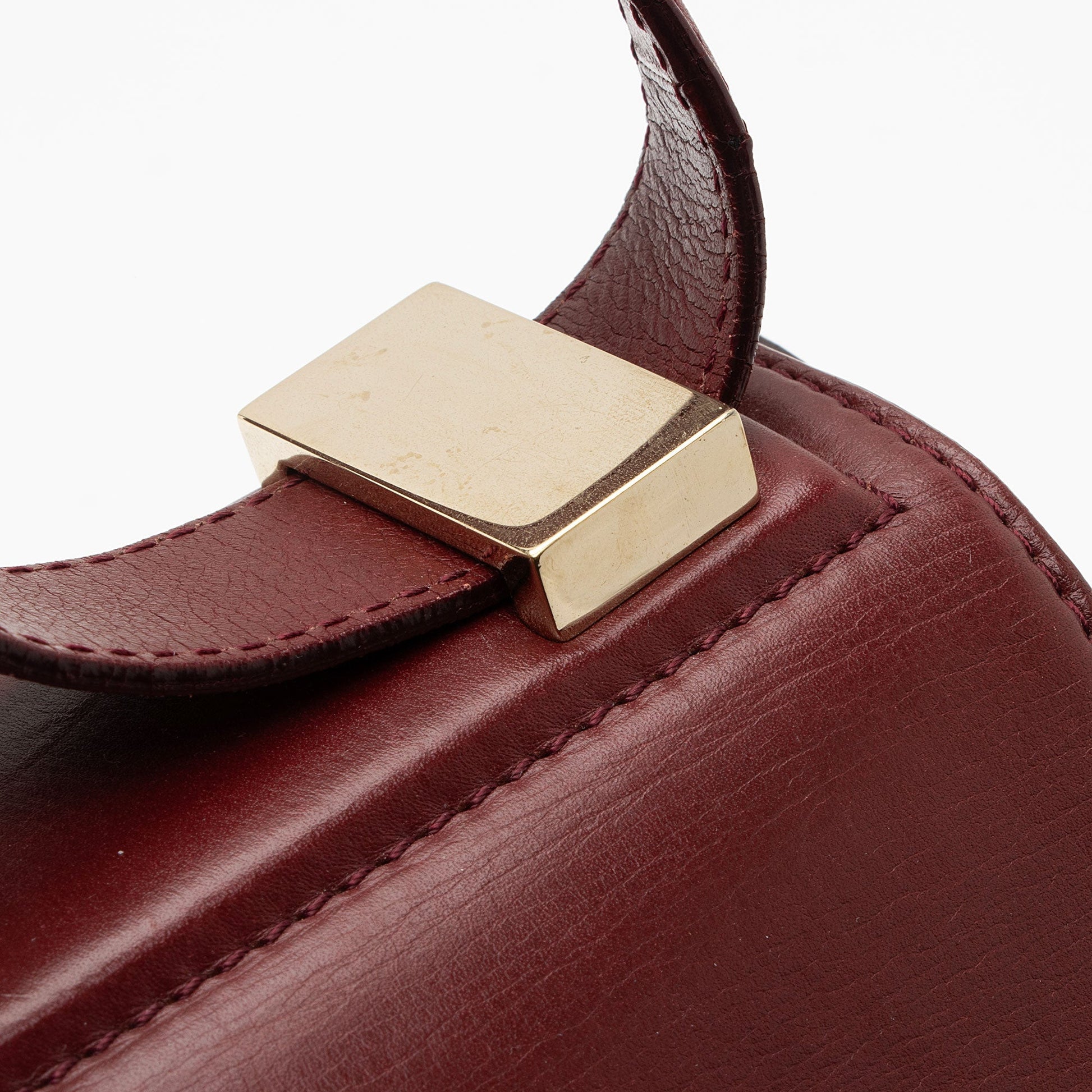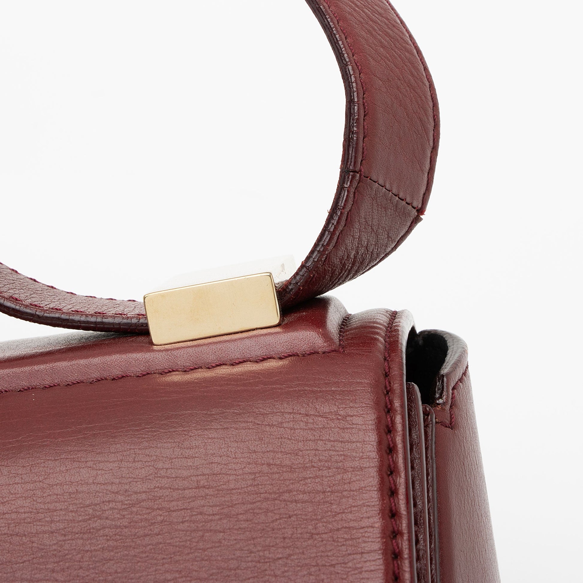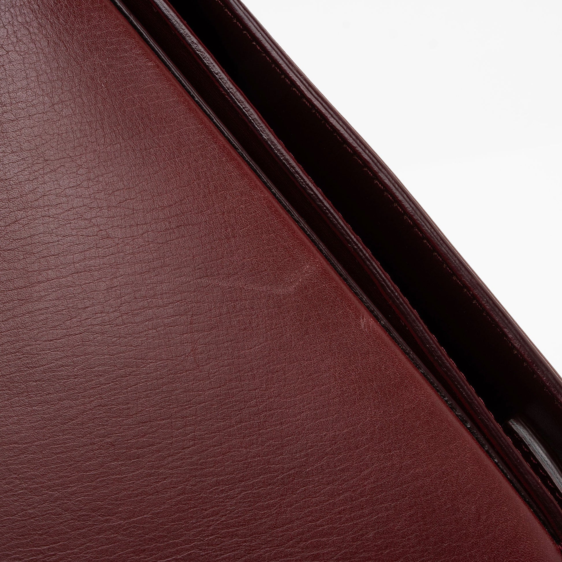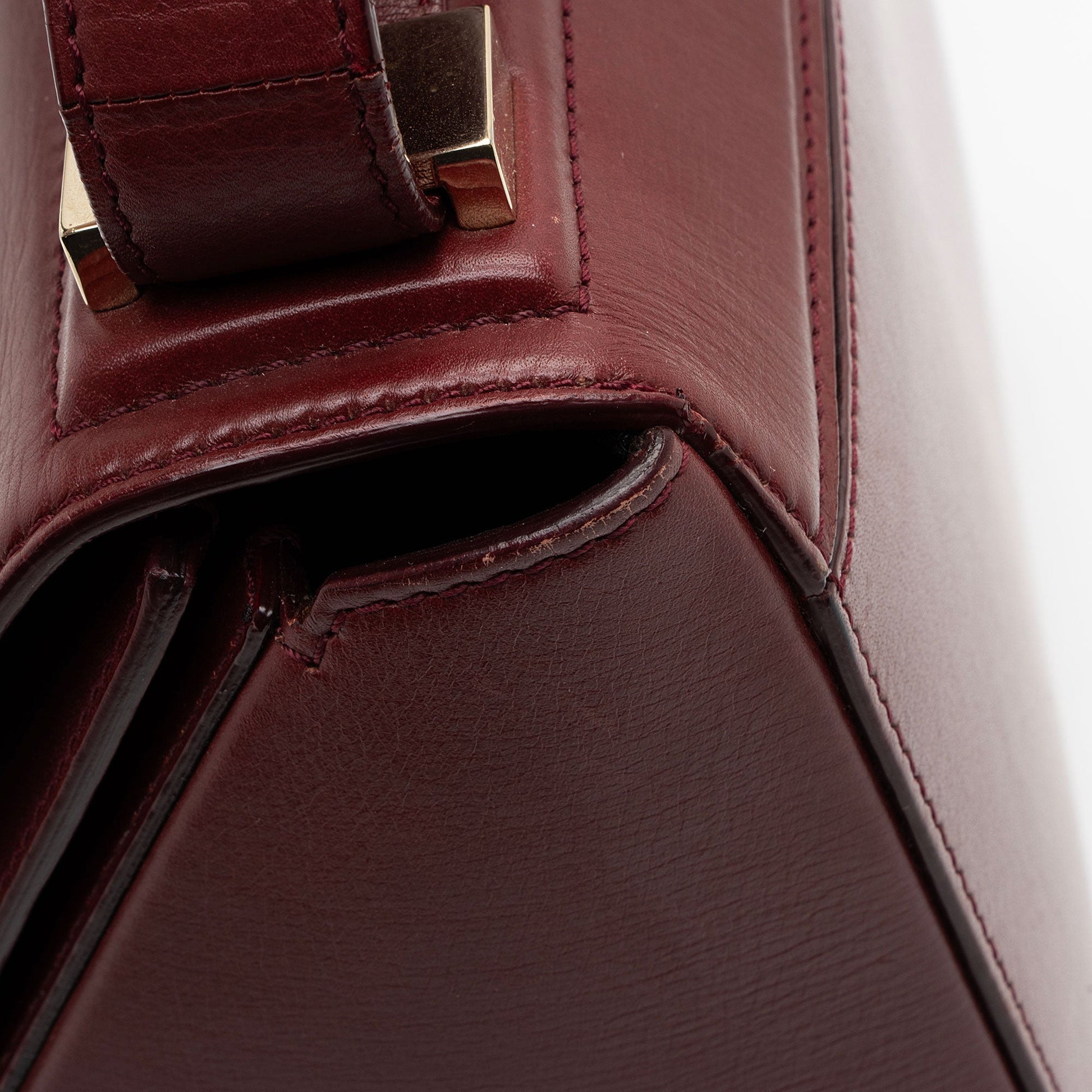 Condition Notes: Light scuffs throughout exterior. Creasing and light darkening throughout shoulder strap. Cracking throughout shoulder strap casing. Surface scratches to hardware. Scuffs throughout interior flap. Light marks throughout interior.