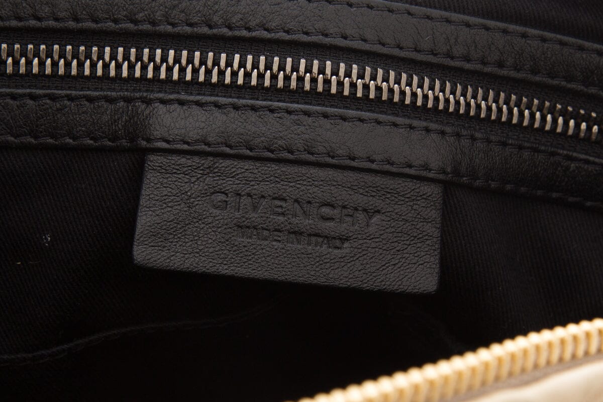 Givenchy Nude Tumbled Pandora Shoulder Bag. This item is gently loved; some discoloring on exterior leather.