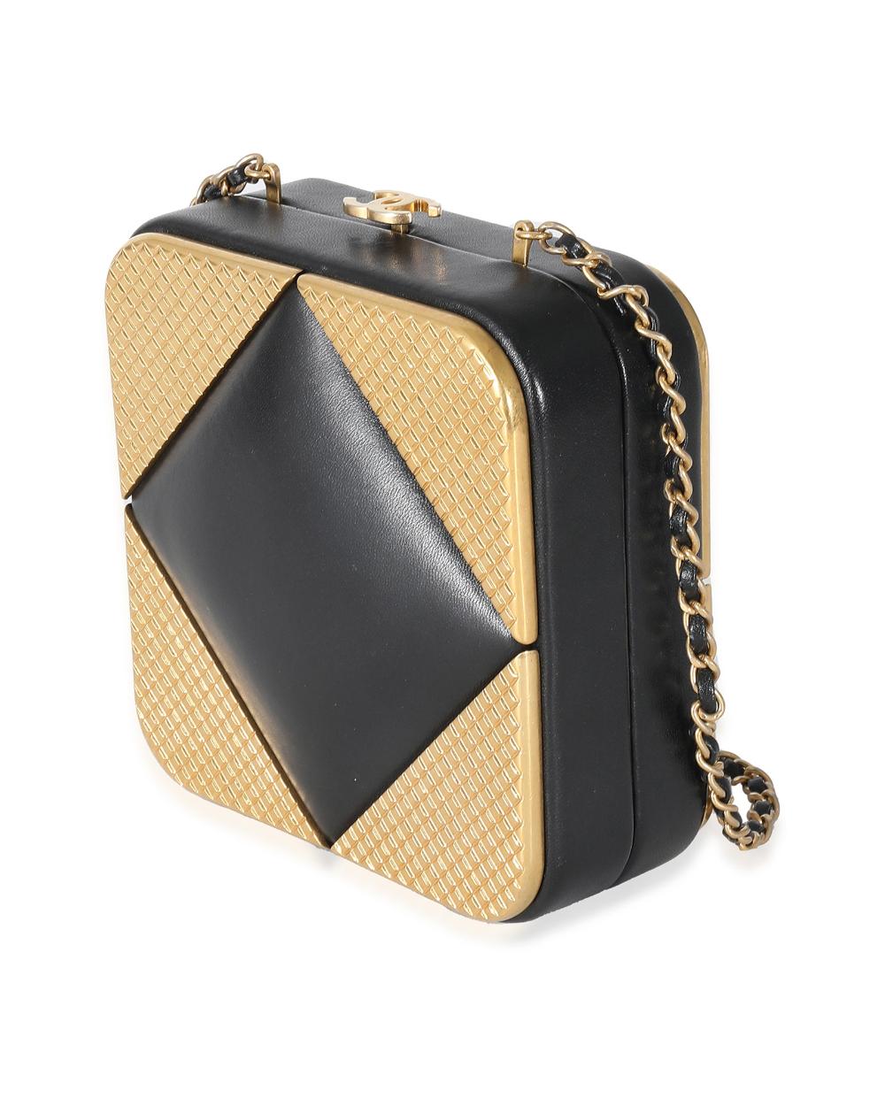 Listing Title: Chanel Black Lambskin Gold Metal Square CC Clutch