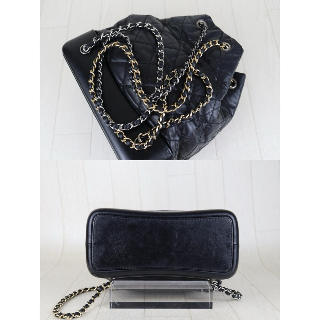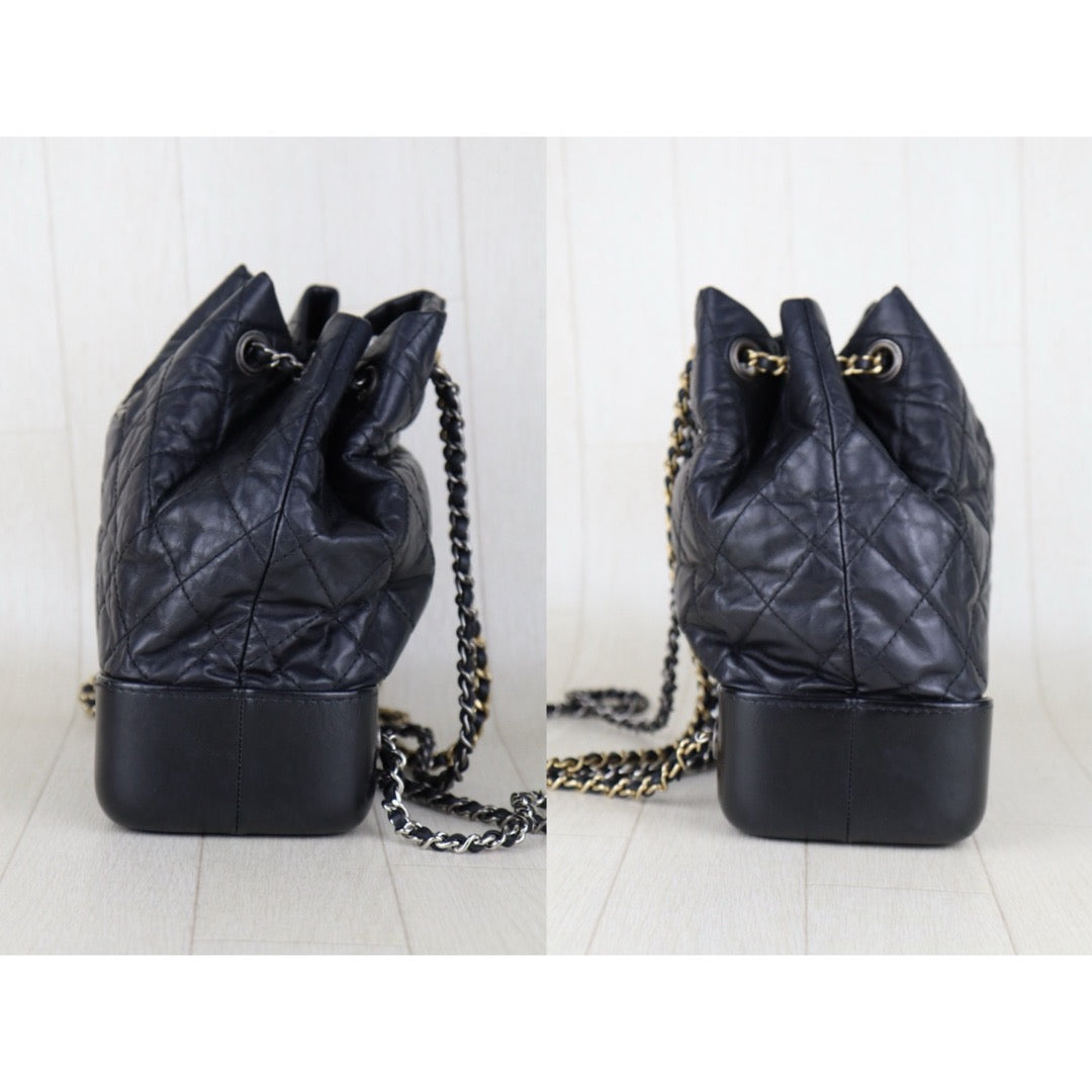 Good ( Rank AB)?CHANE Calf Leather Gabrielle Aged Backpack PM Black Made in 2018Year?H25063009