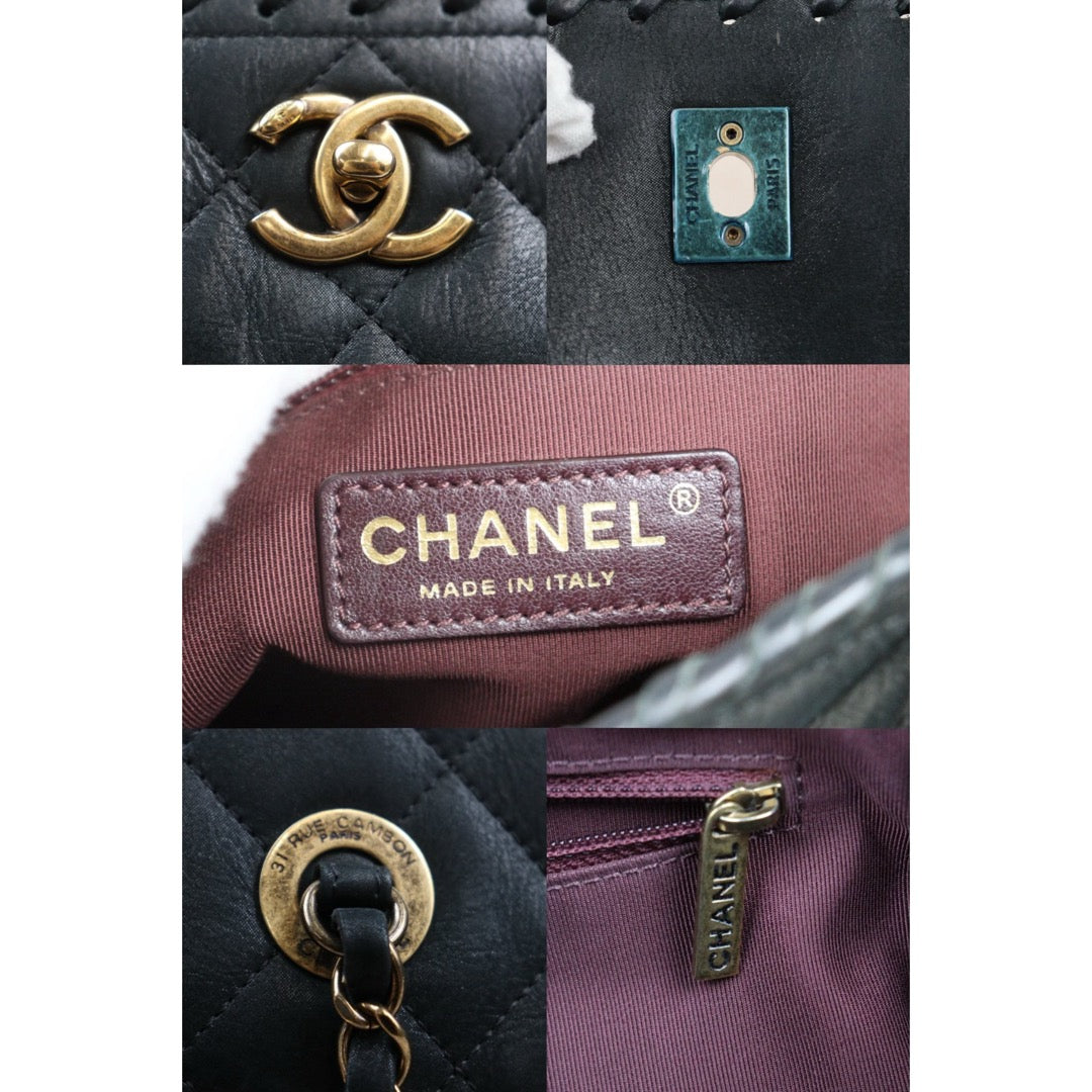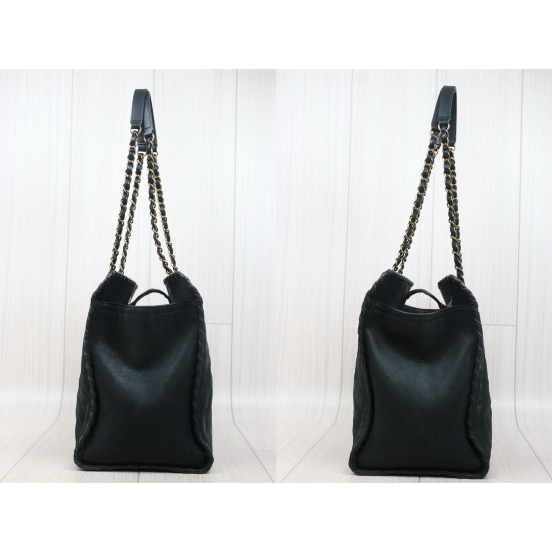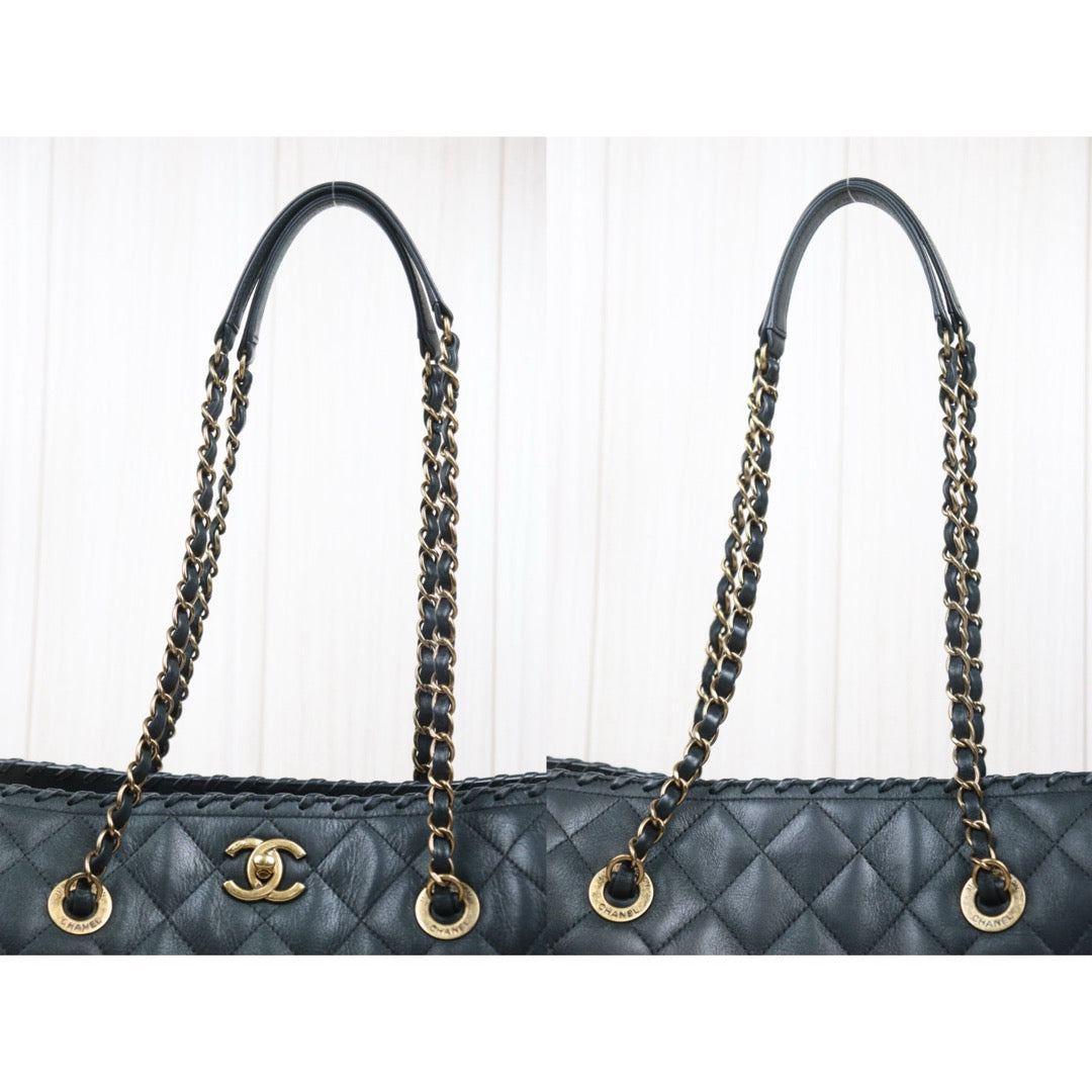 Good ( Rank AB)? CHANEL Matrasse Chain Calf Leather Tote Bag Dark Green Made In 2014 -2015 Year?Y25061702