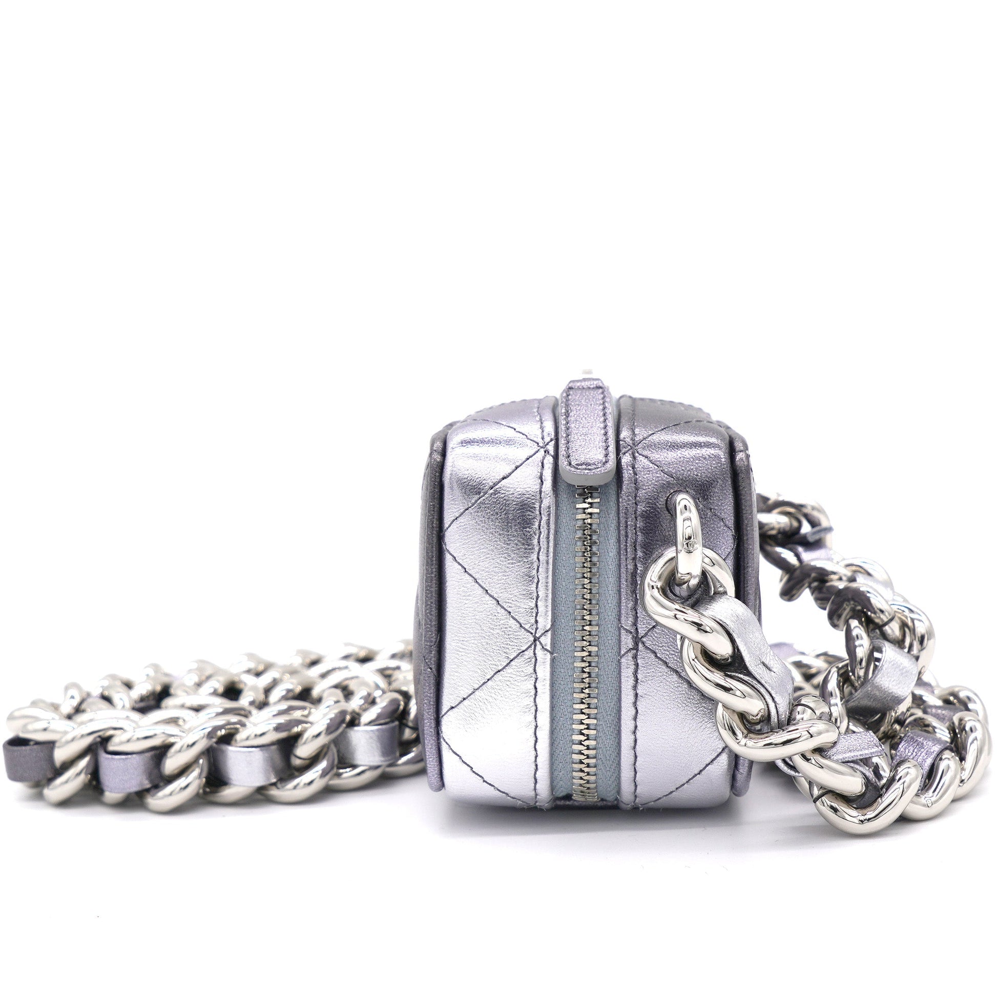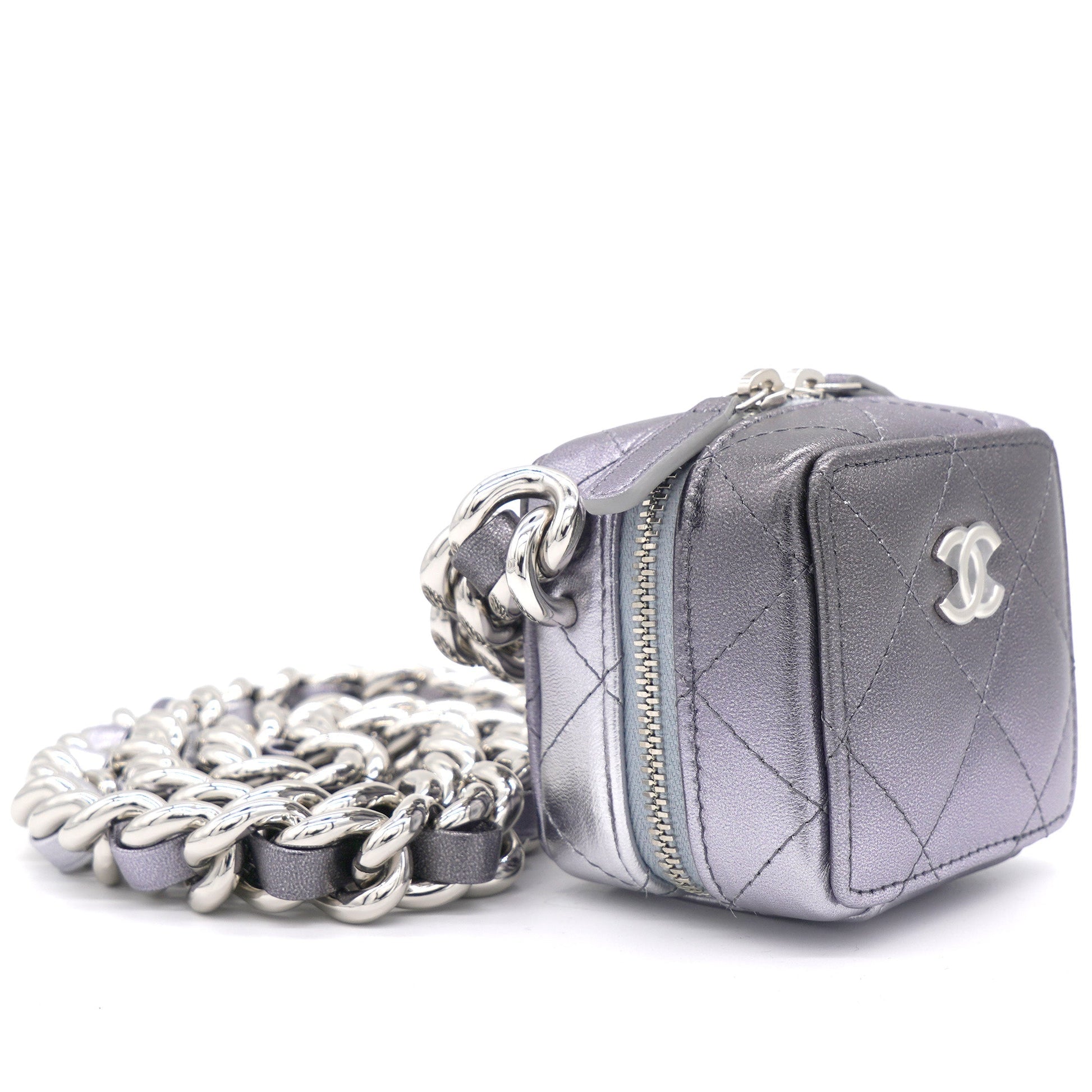 Chanel Gradient Metallic Silver and Purple Lambskin Clutch with Chain