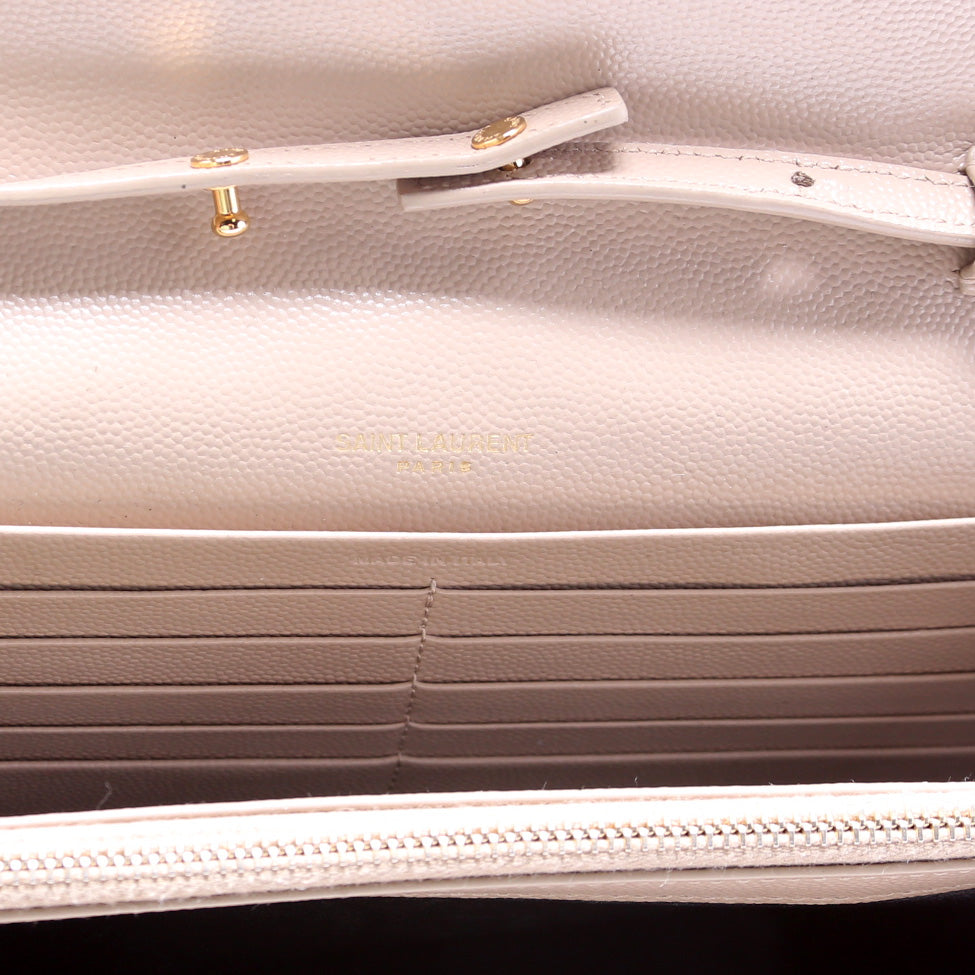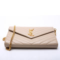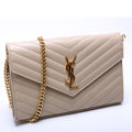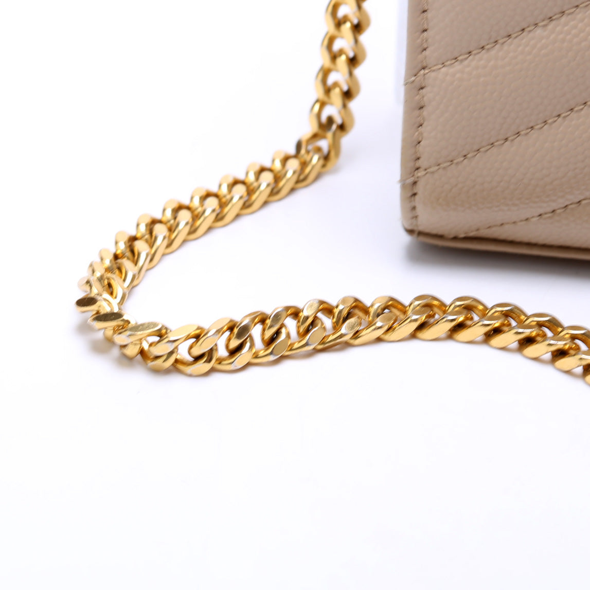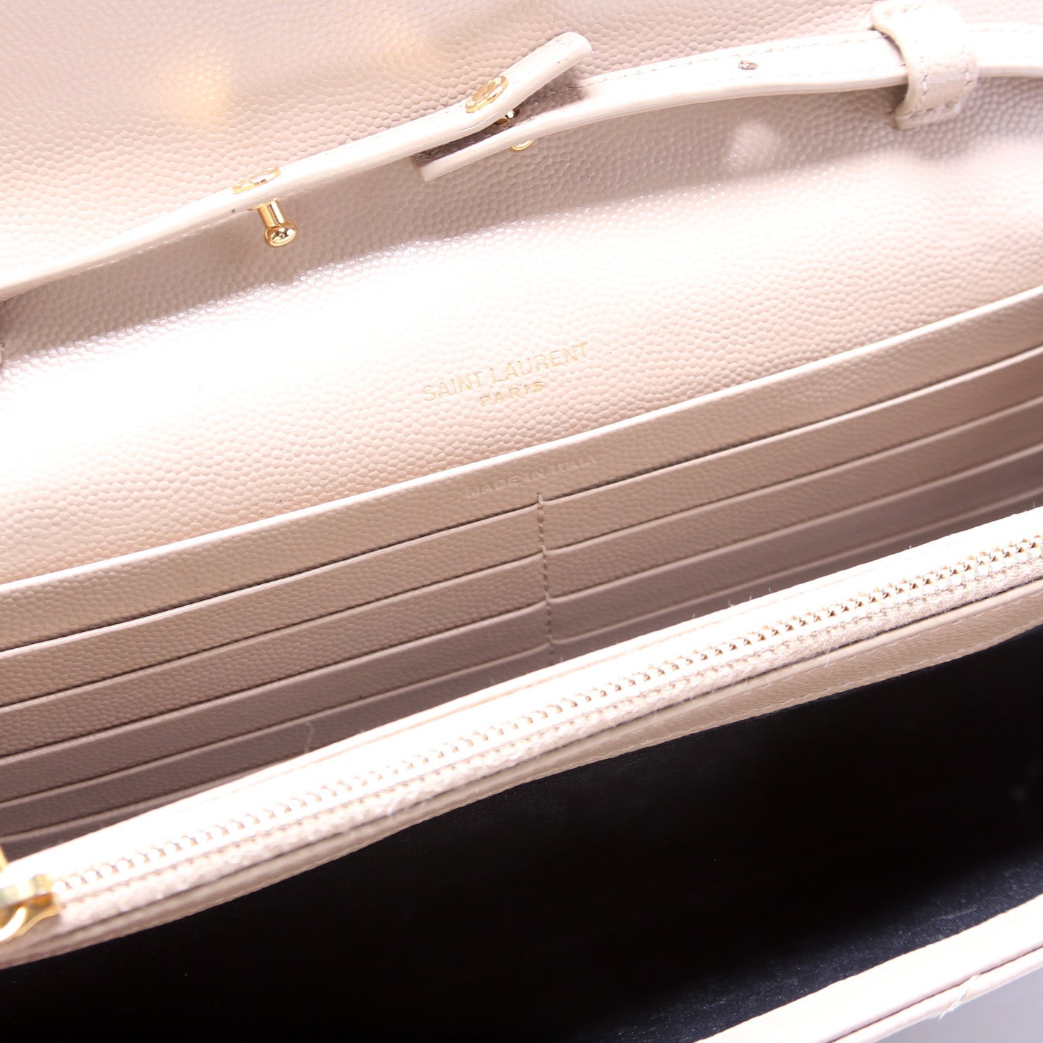 This Saint Laurent Grain De Chain Walletis eye catching bag. The exterior is in the classic Saint Laurent Grain De Poudre leather.