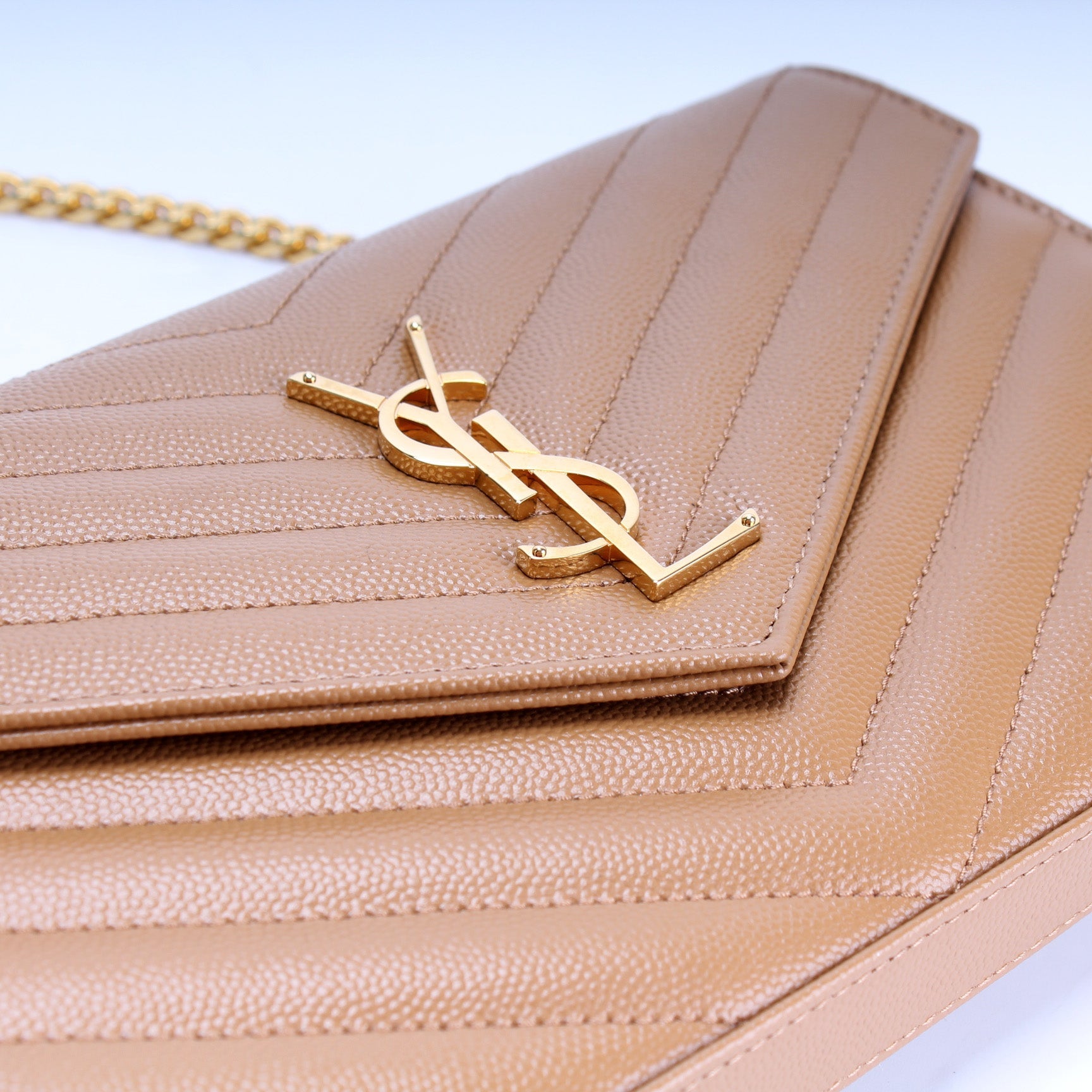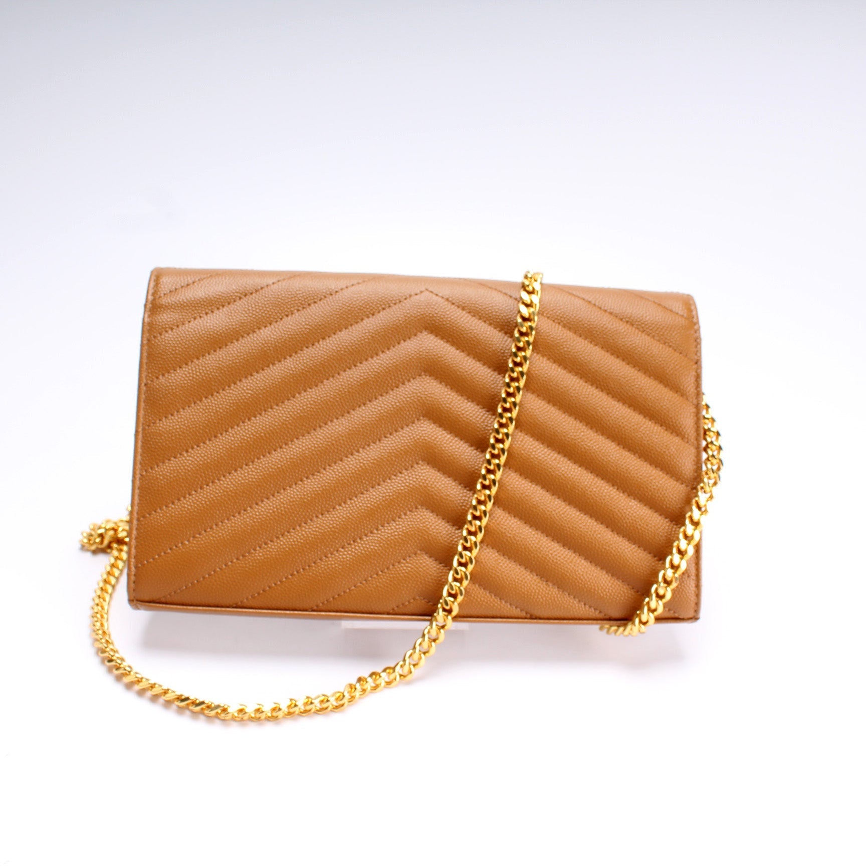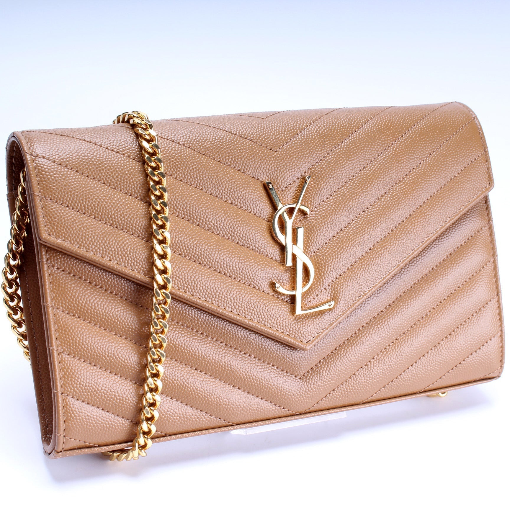 This Saint Laurent Grain De Chain Walletis eye catching bag. The exterior is in the classic Saint Laurent Grained Leather.