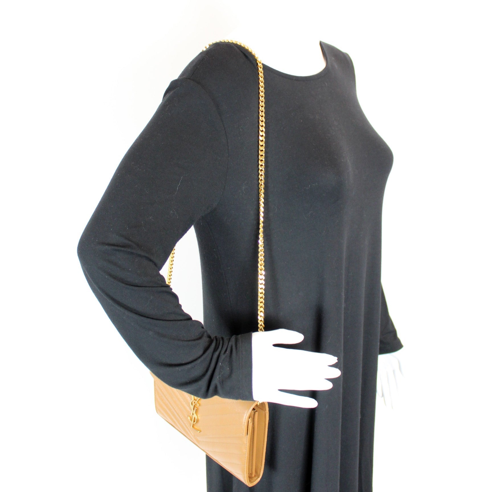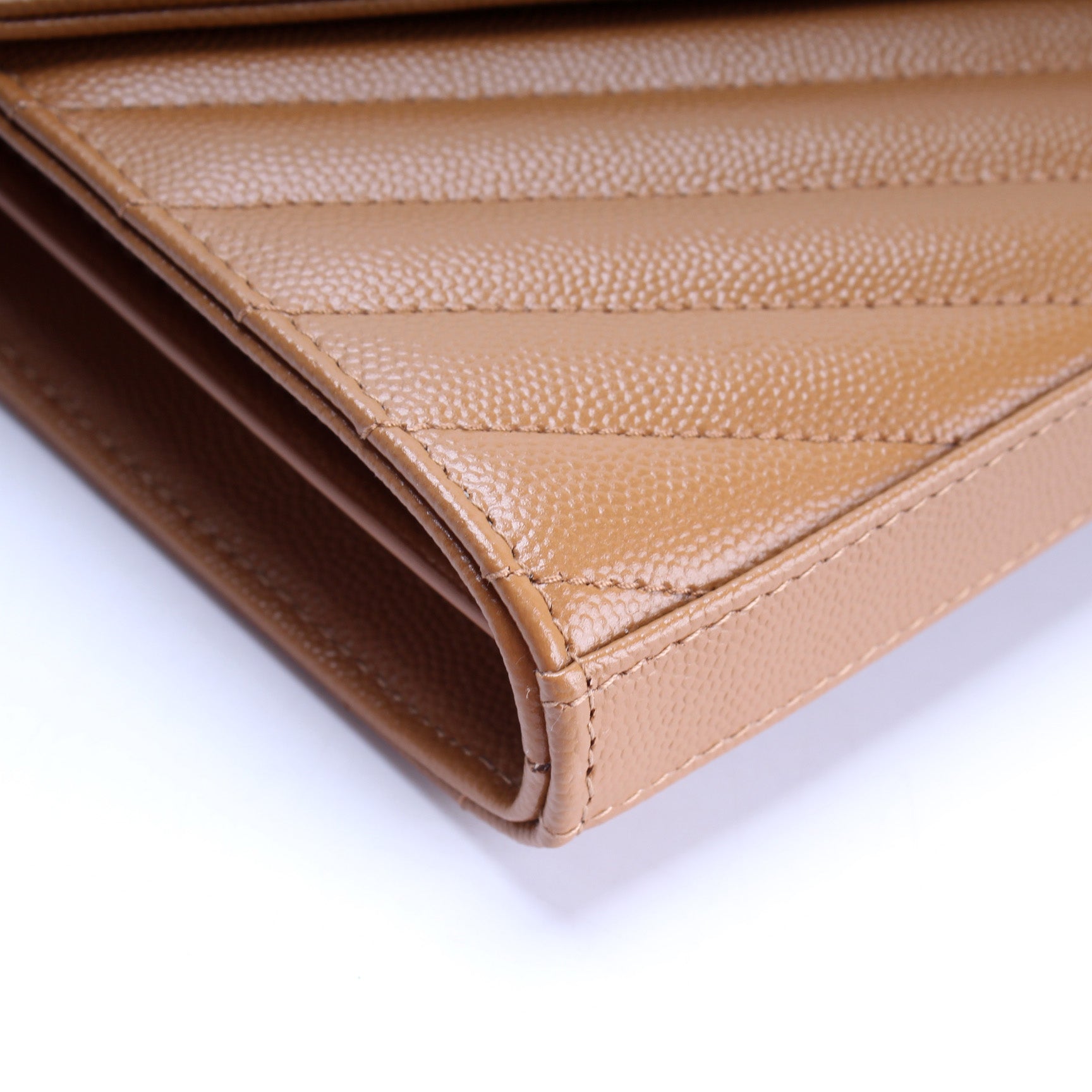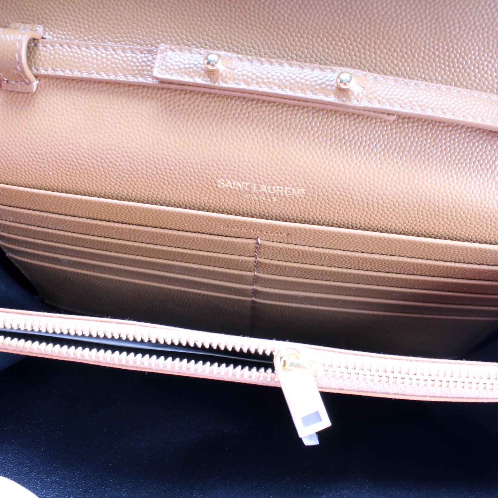This Saint Laurent Grain De Chain Walletis eye catching bag. The exterior is in the classic Saint Laurent Grained Leather.
