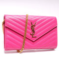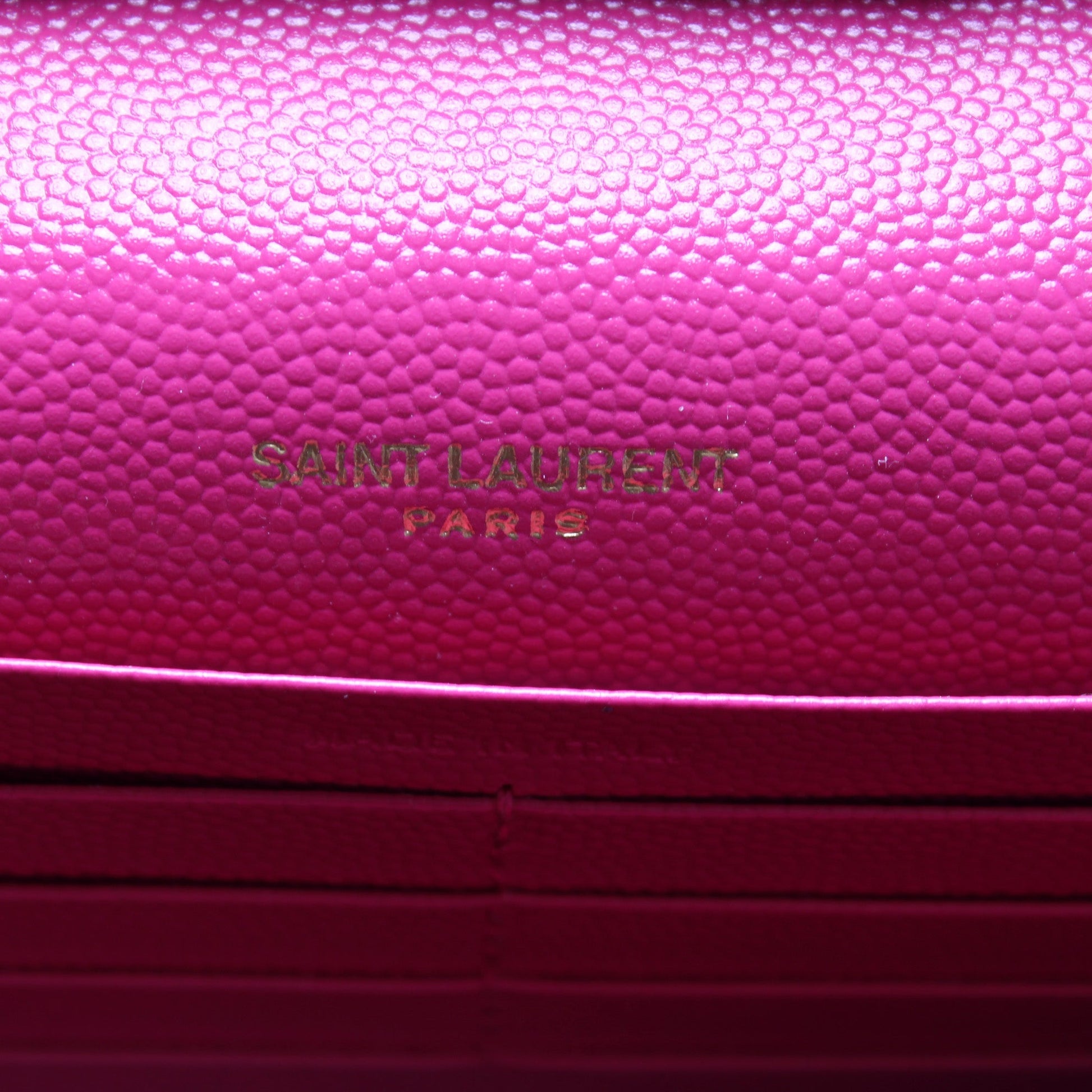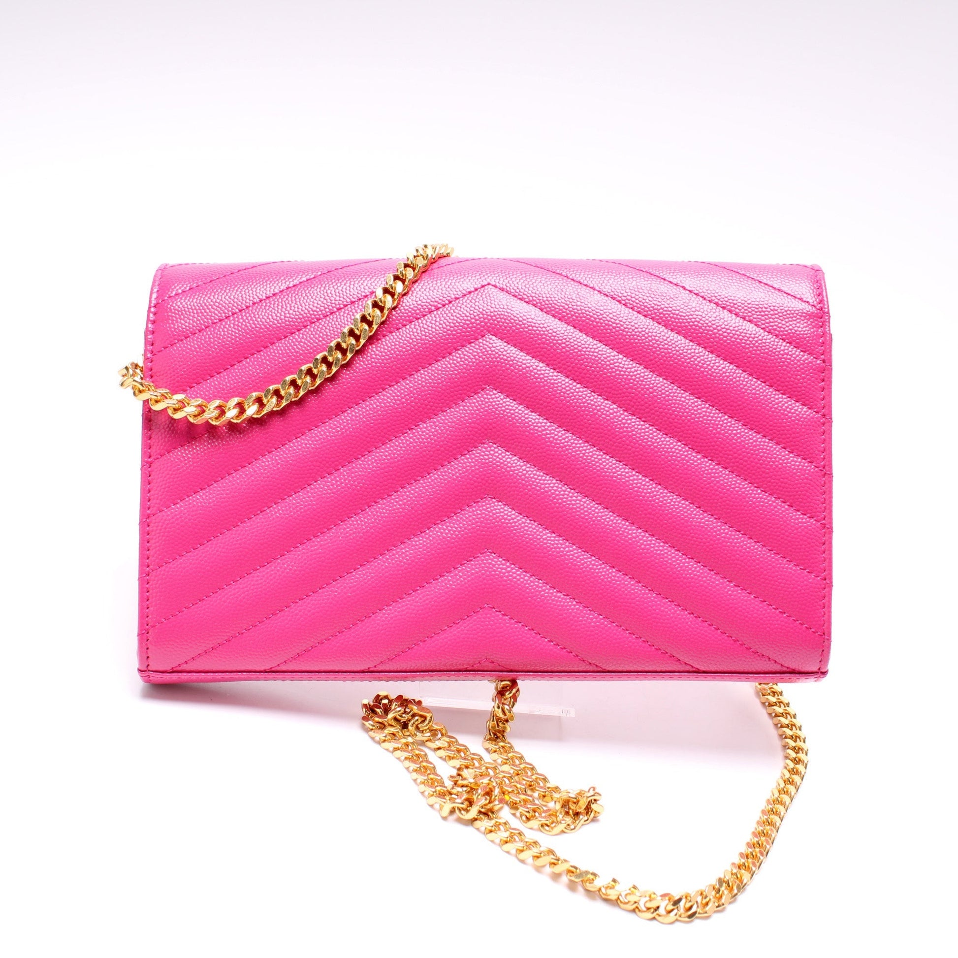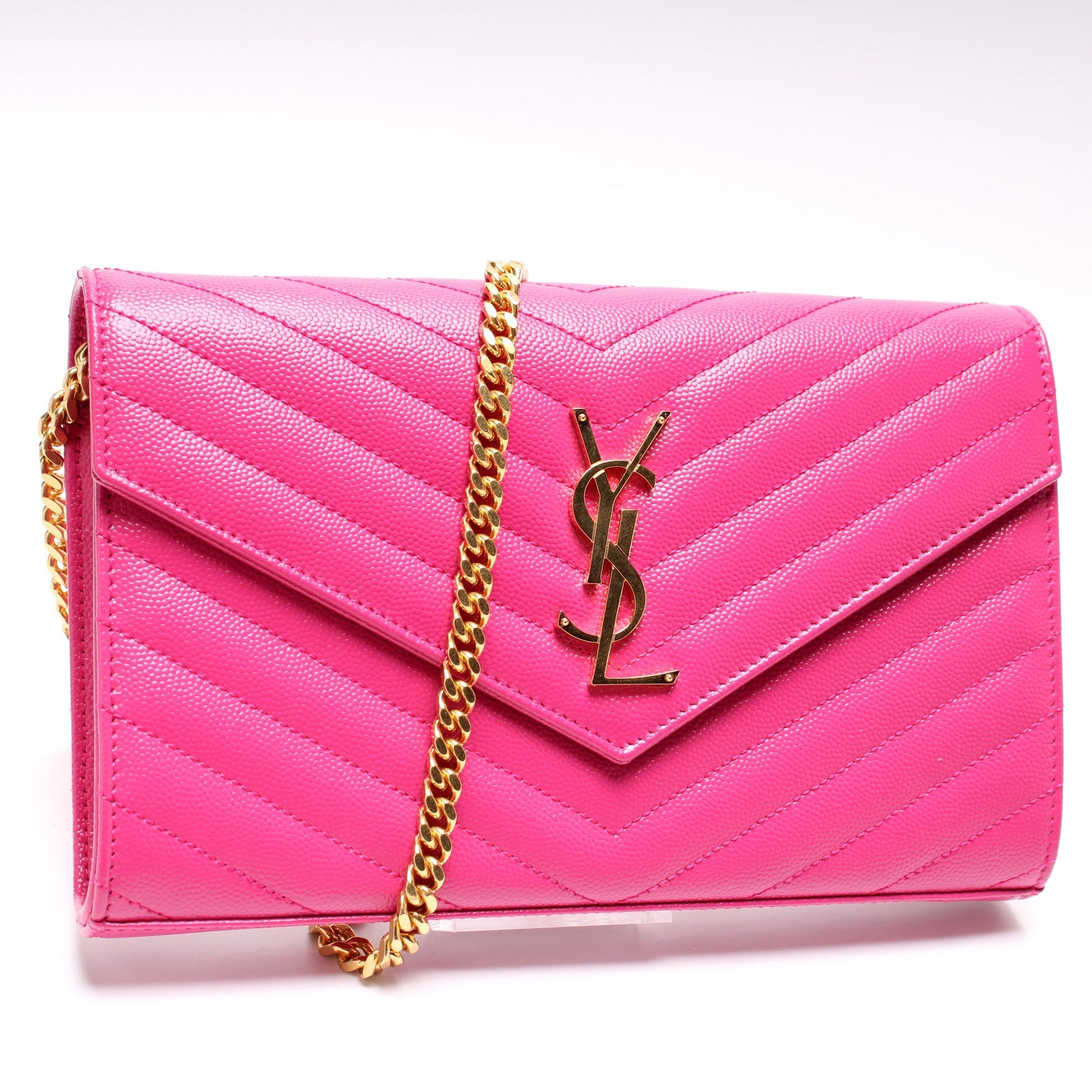 This Saint Laurent Grain De Chain Walletis eye catching bag. The exterior is in the classic Saint Laurent Grain De Poudre leather.