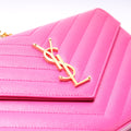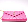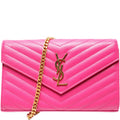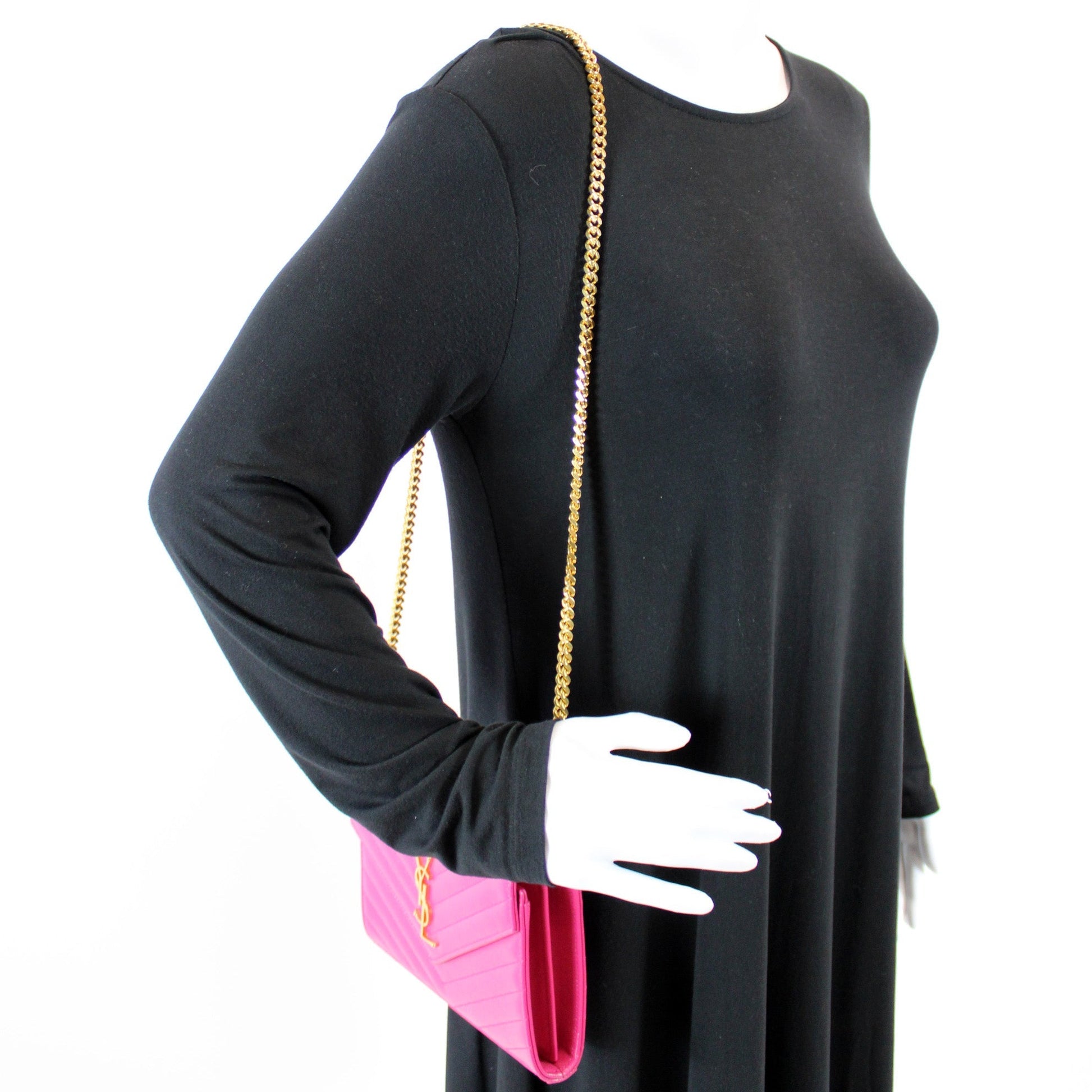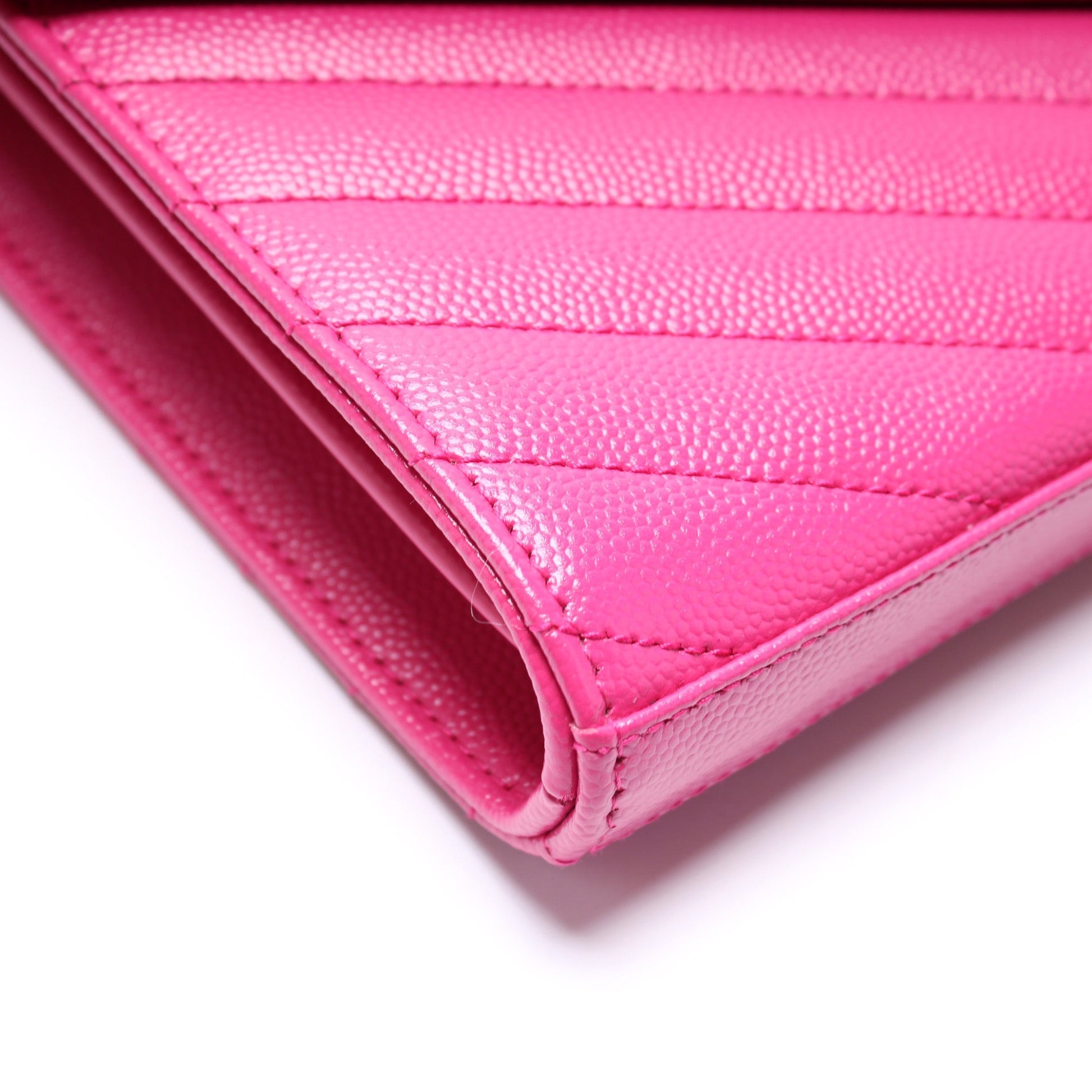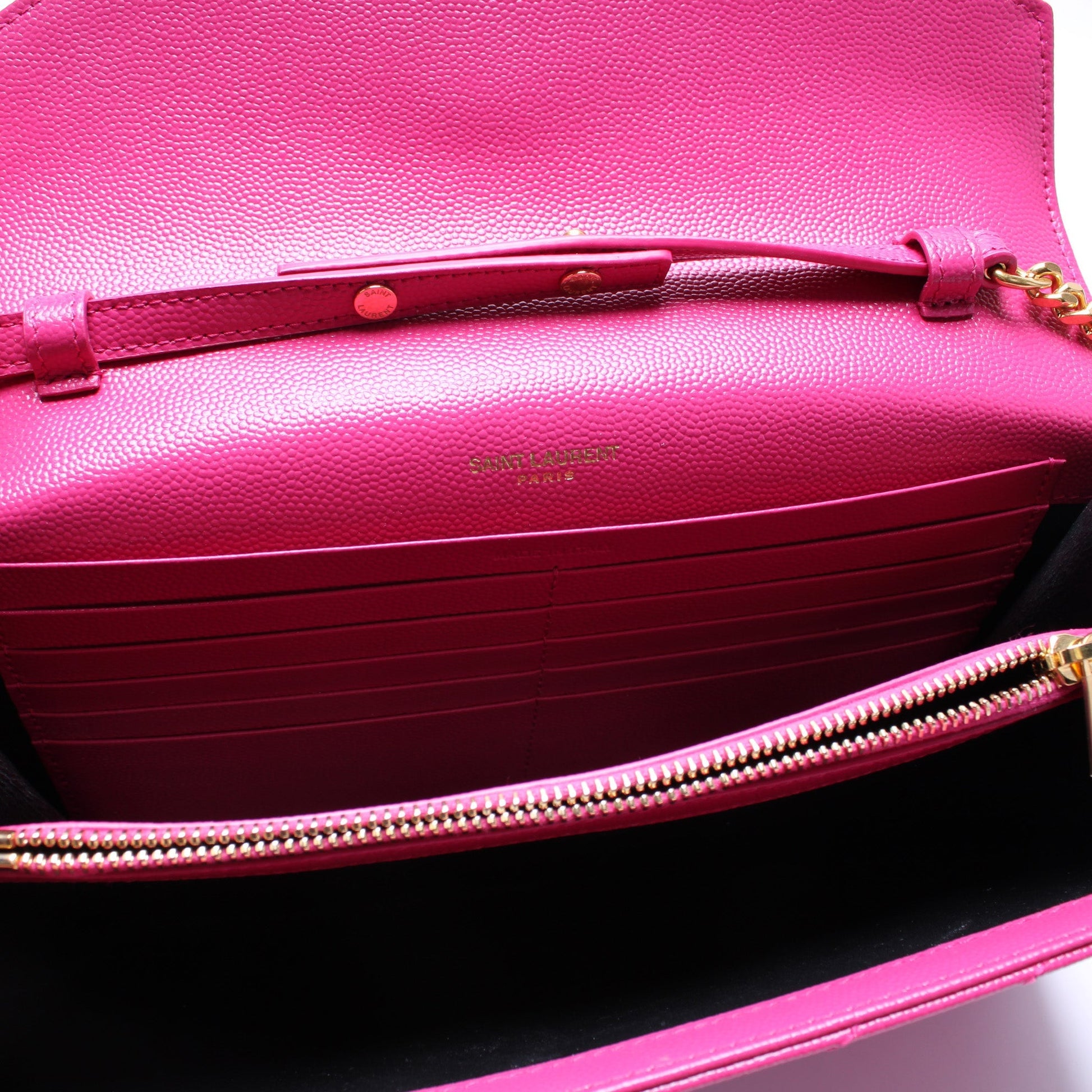 This Saint Laurent Grain De Chain Walletis eye catching bag. The exterior is in the classic Saint Laurent Grain De Poudre leather.