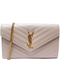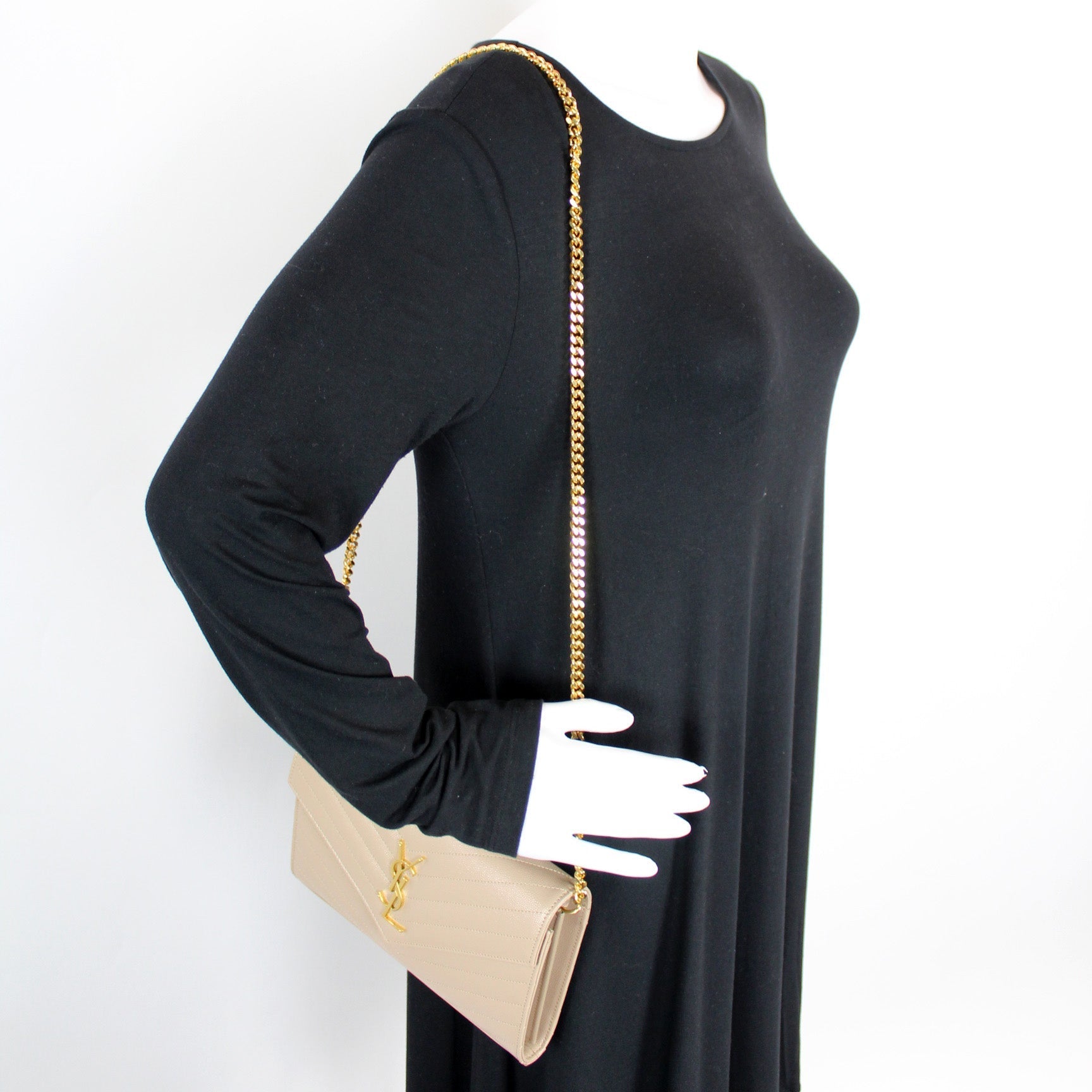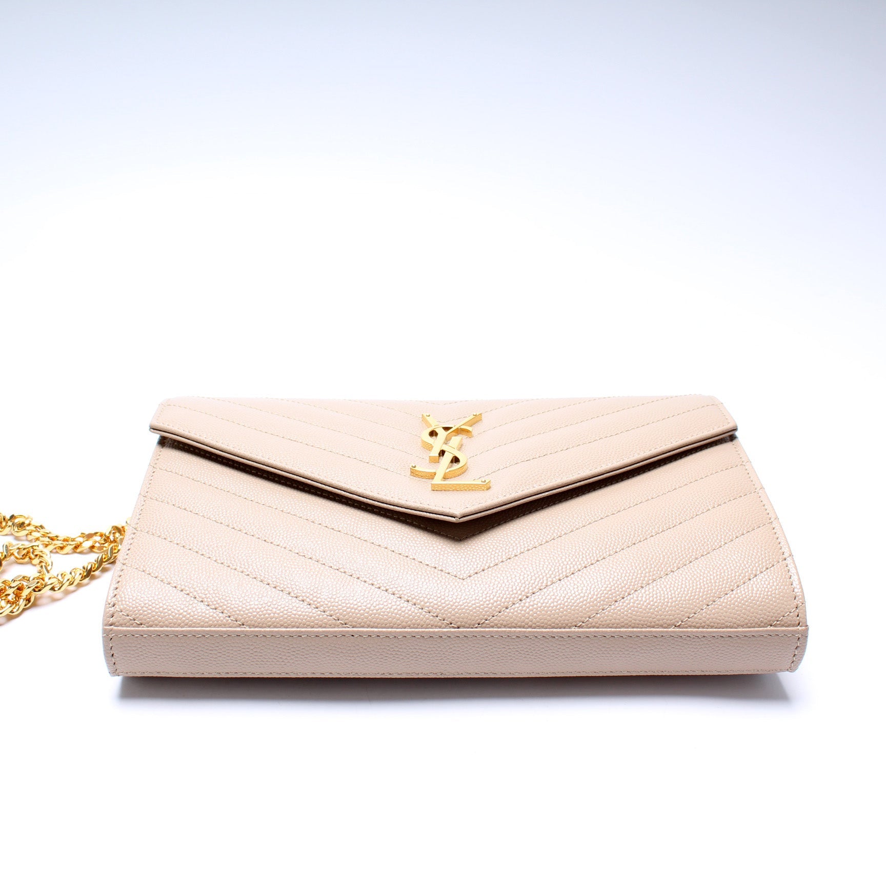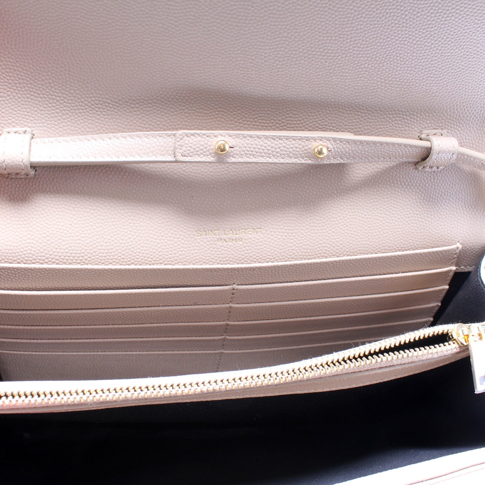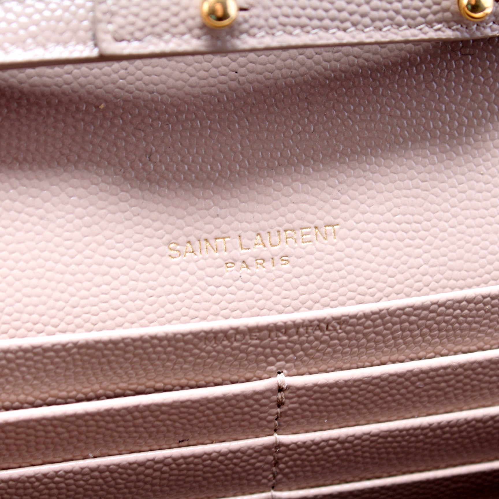 This Saint Laurent Grain De Chain Walletis eye catching bag. The exterior is in the classic Saint Laurent Grained Leather.