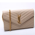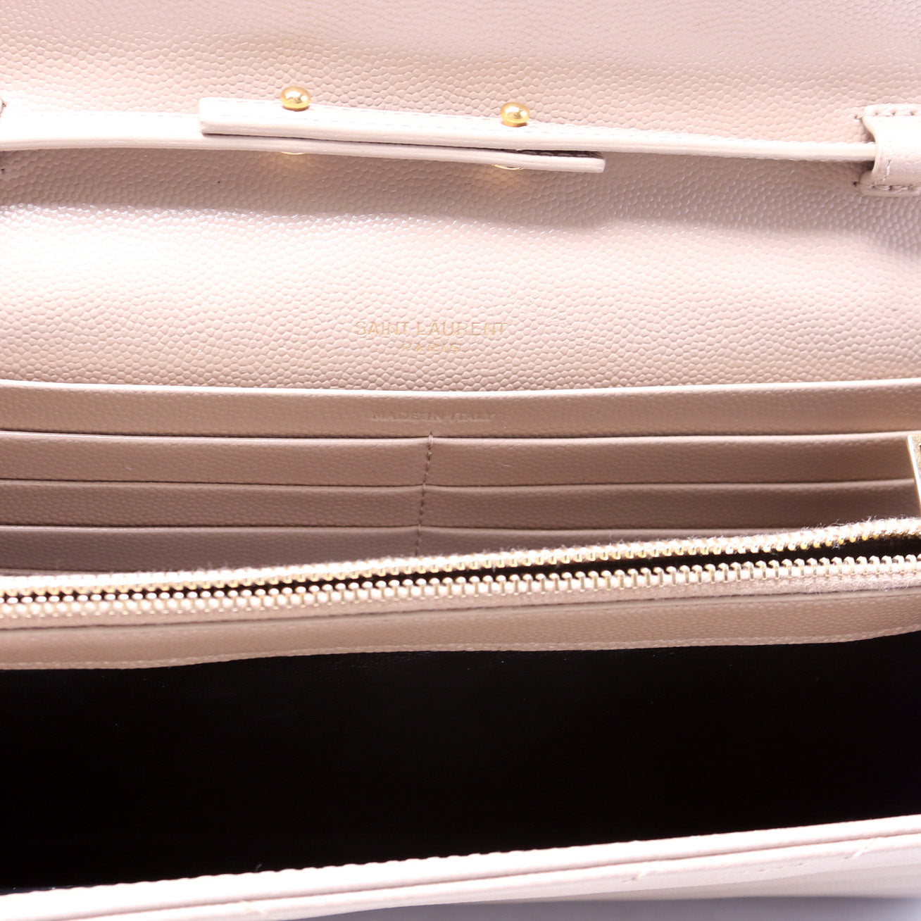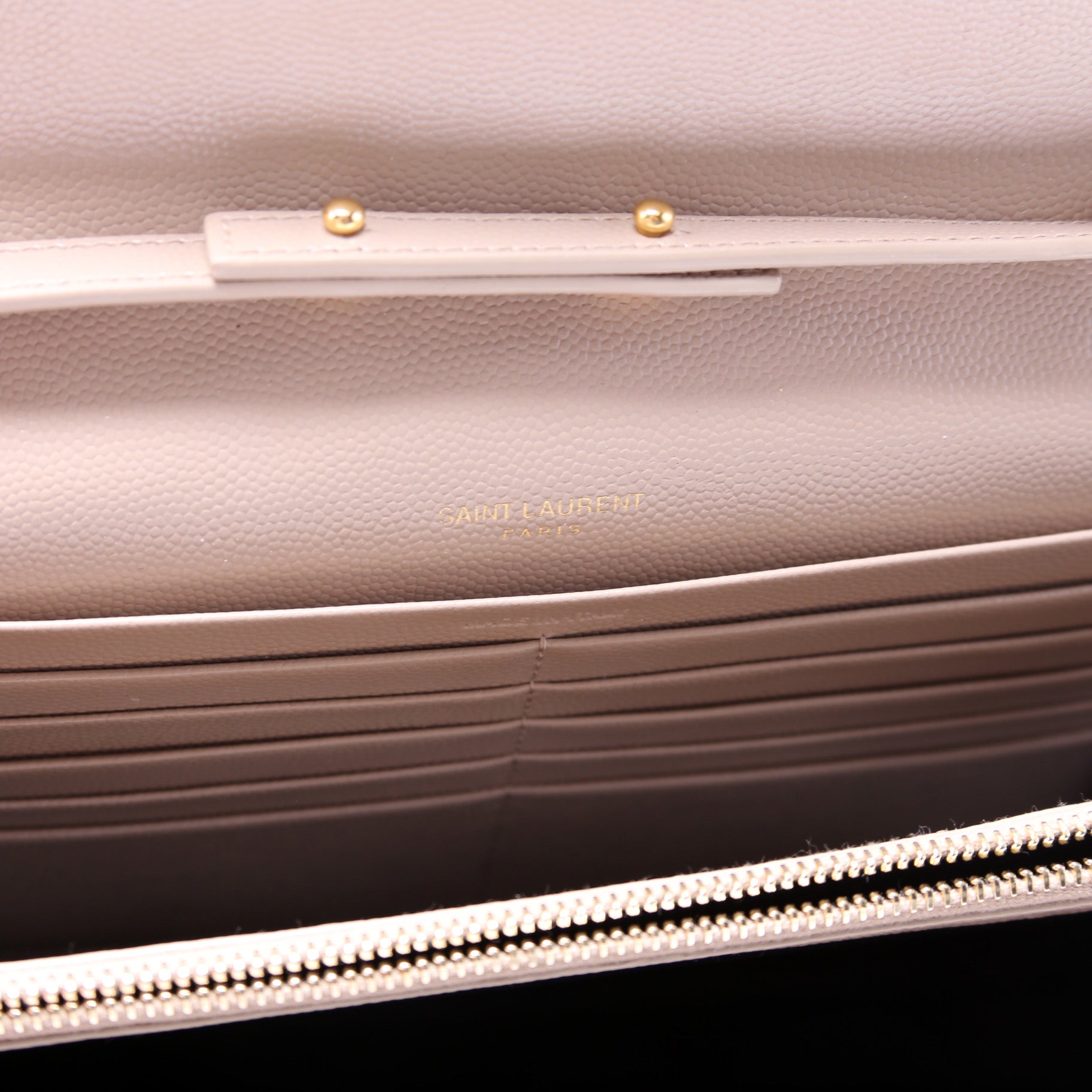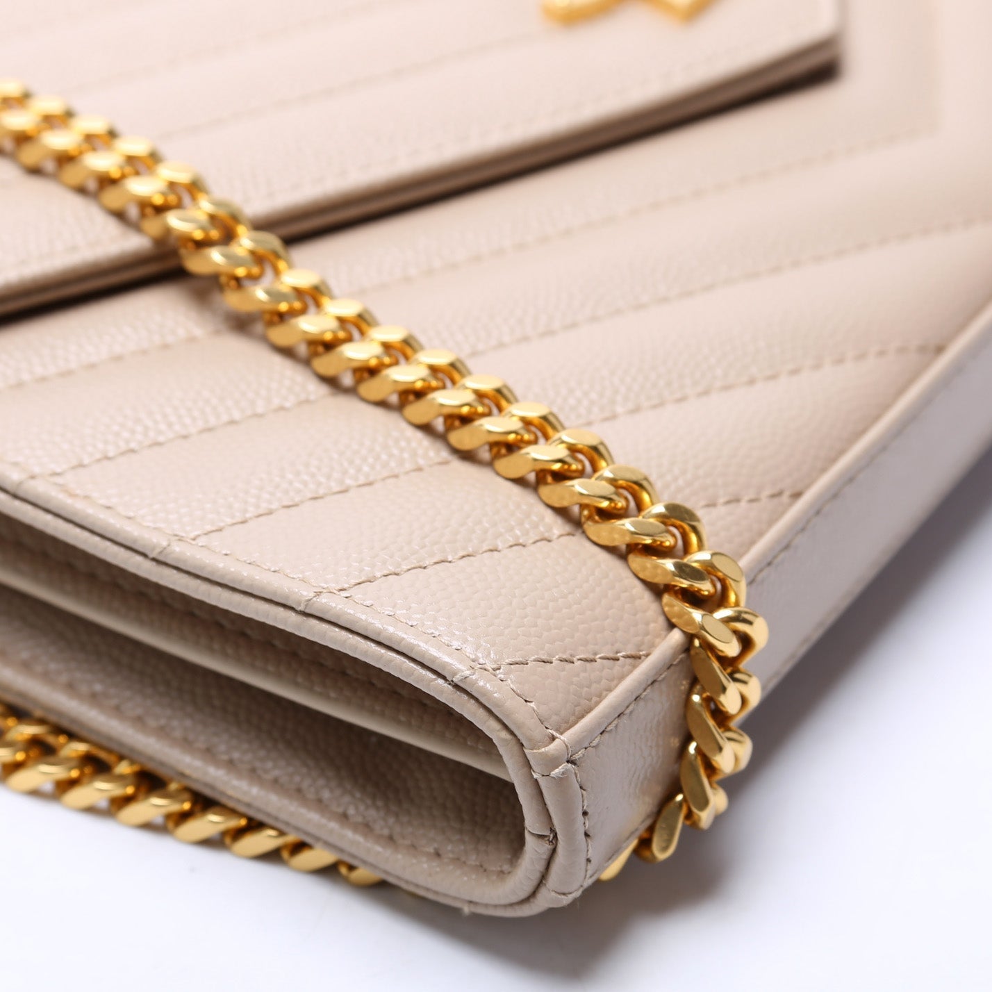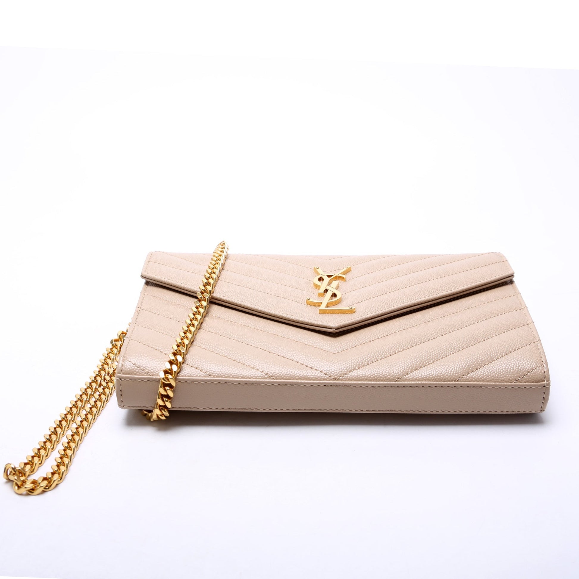 This Saint Laurent Grain De Chain Walletis eye catching bag. The exterior is in the classic Saint Laurent Grained Leather.