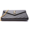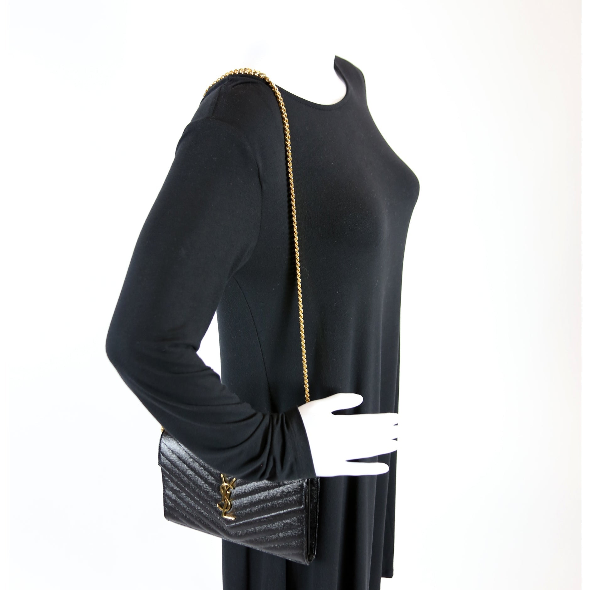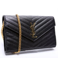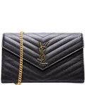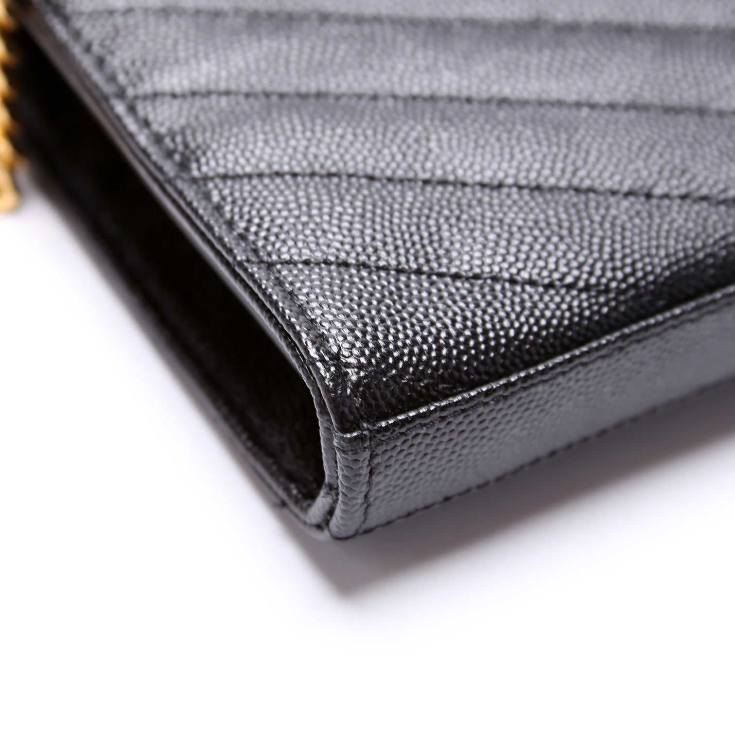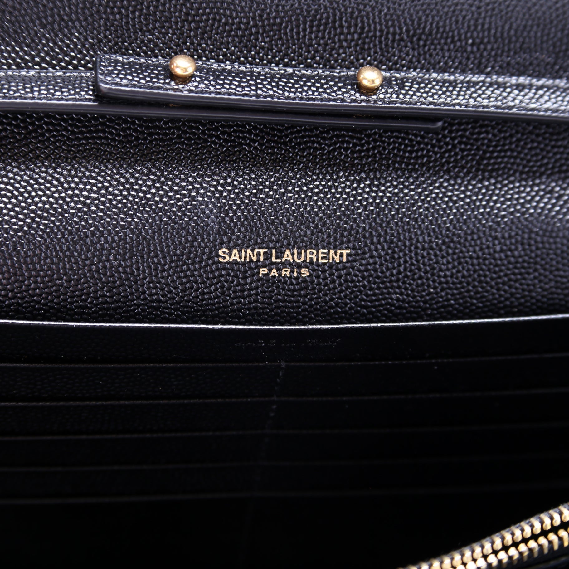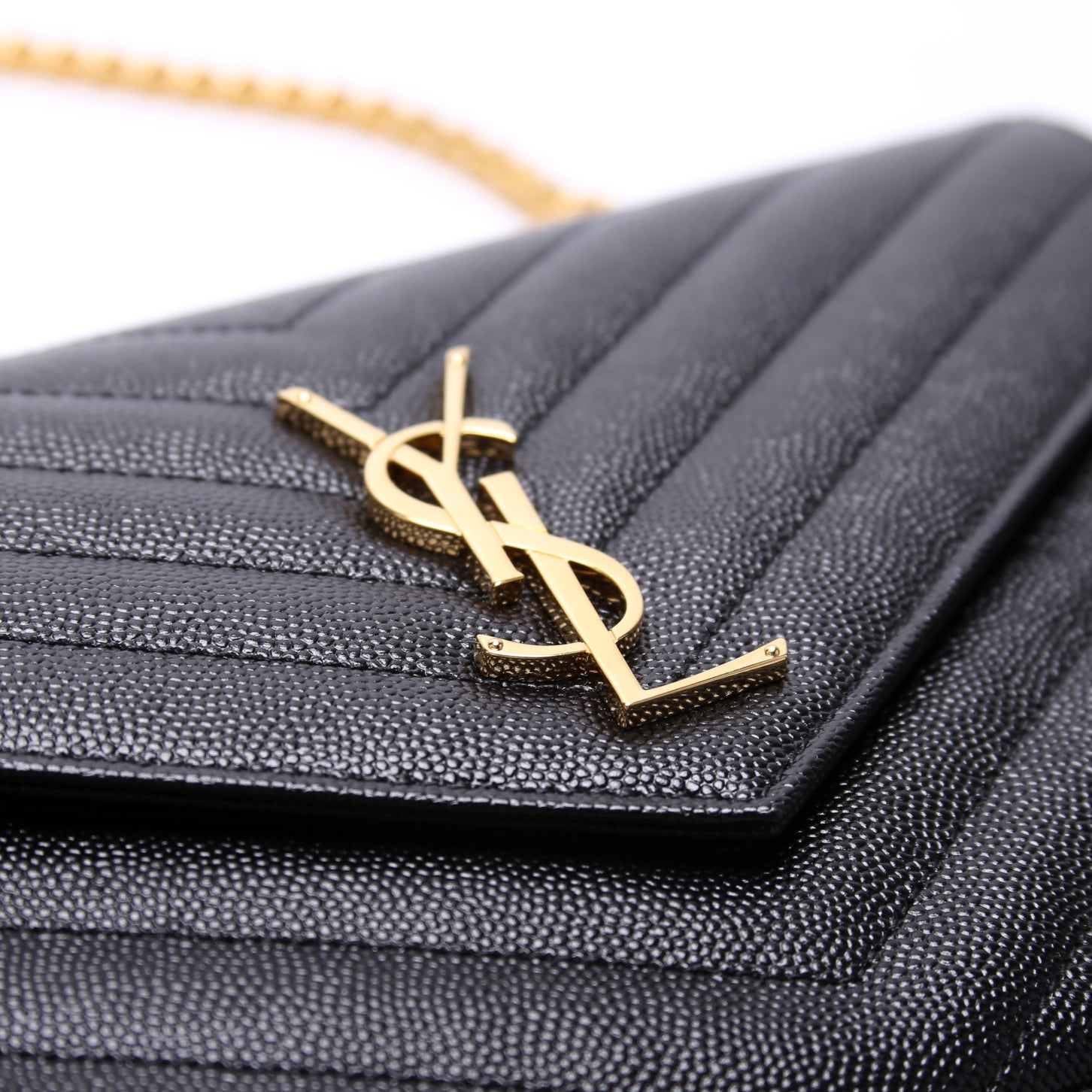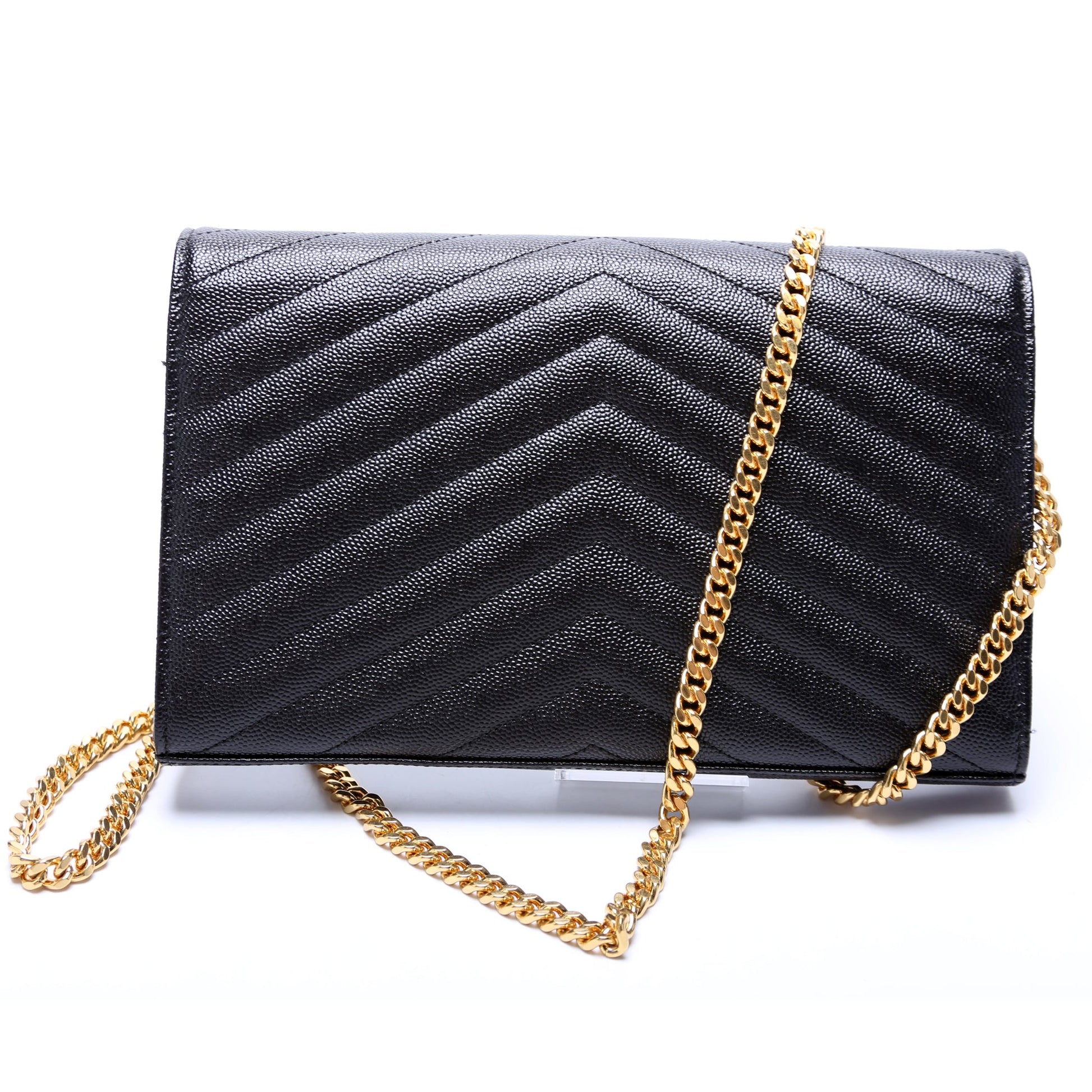 This Saint Laurent Grain De Chain Walletis eye catching bag. The exterior is in the classic Saint Laurent Grained Leather.