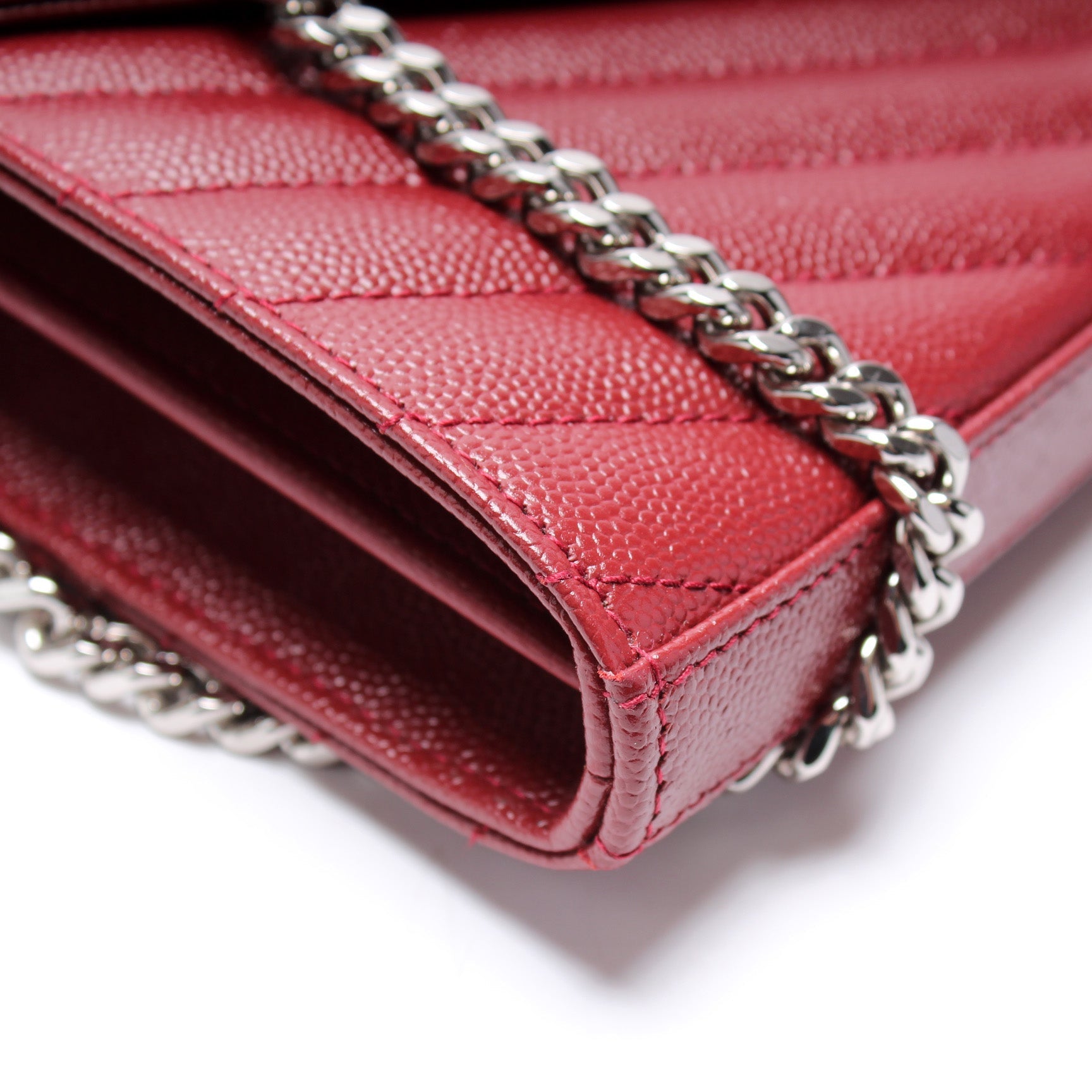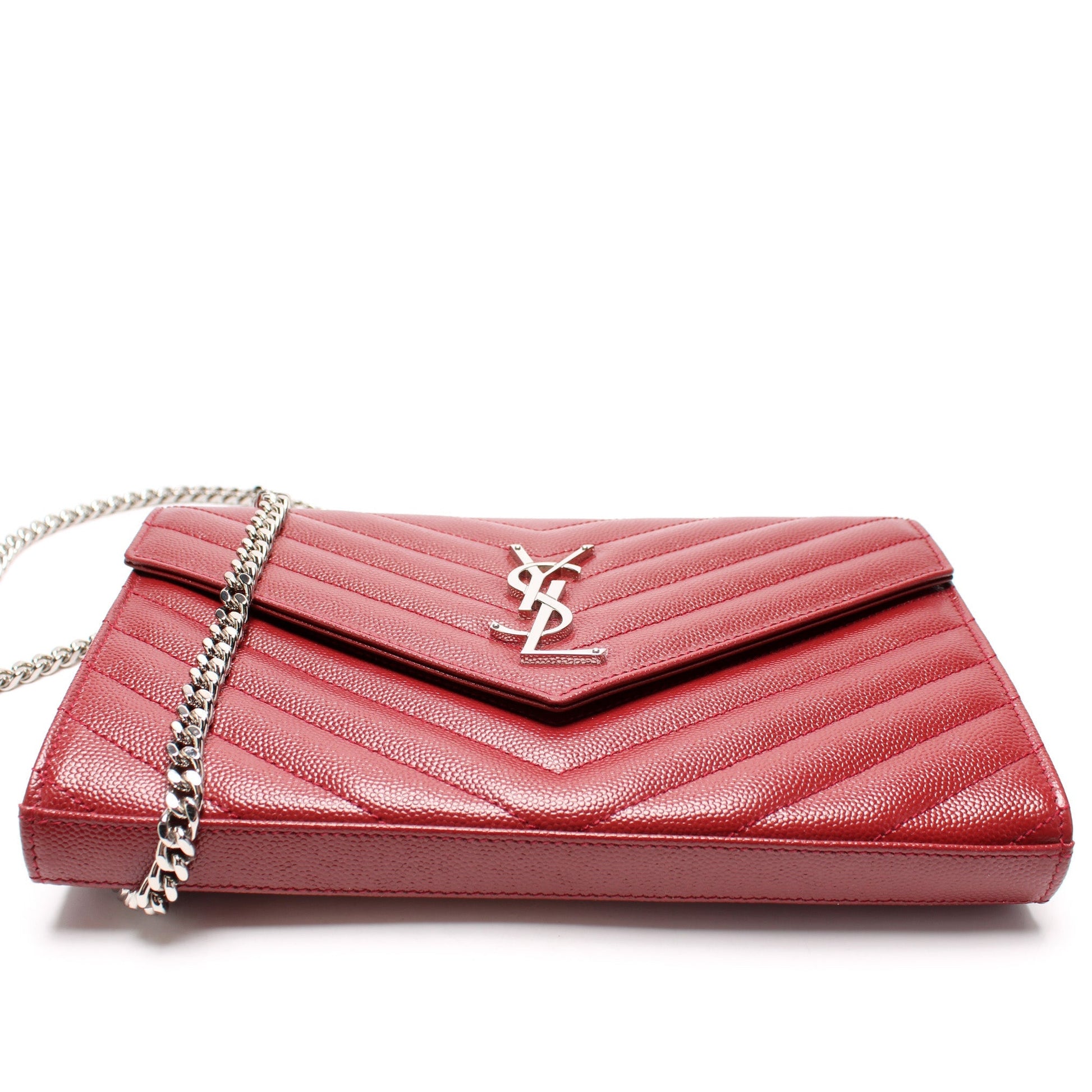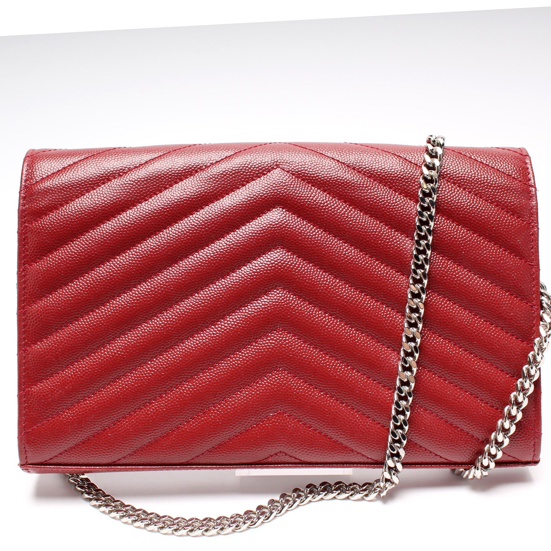 This Saint Laurent Grain De Chain Walletis eye catching bag. The exterior is in the classic Saint Laurent Grain De Poudre leather.