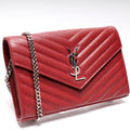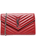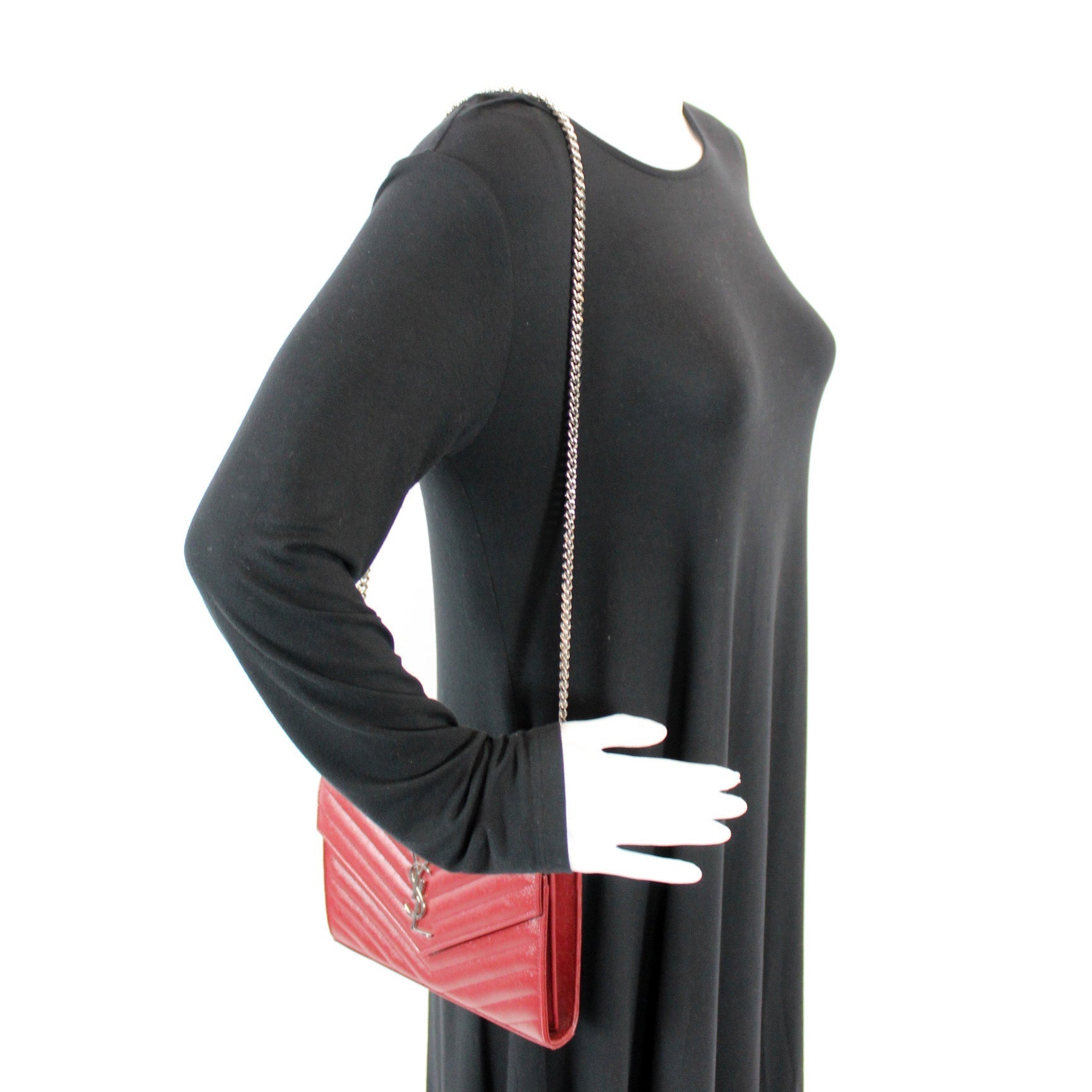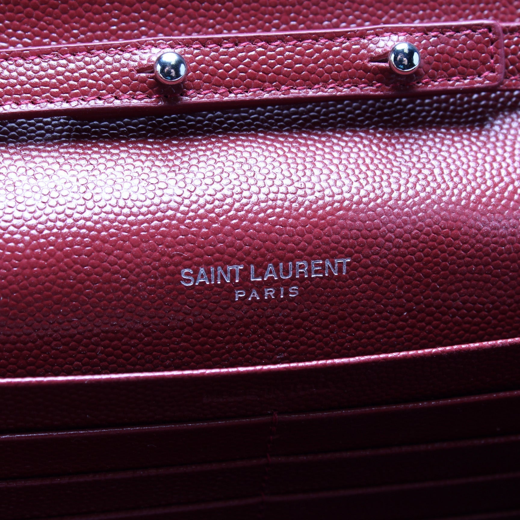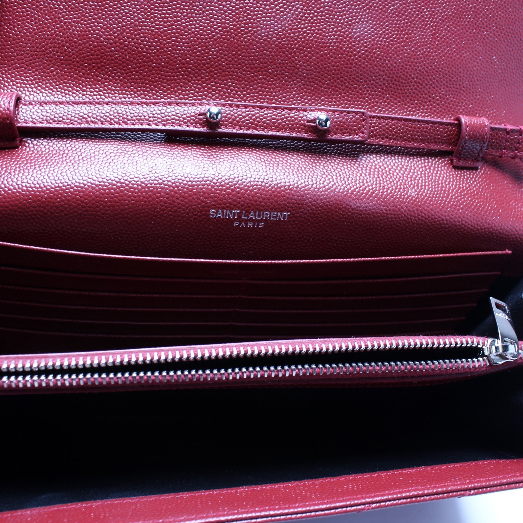 This Saint Laurent Grain De Chain Walletis eye catching bag. The exterior is in the classic Saint Laurent Grain De Poudre leather.