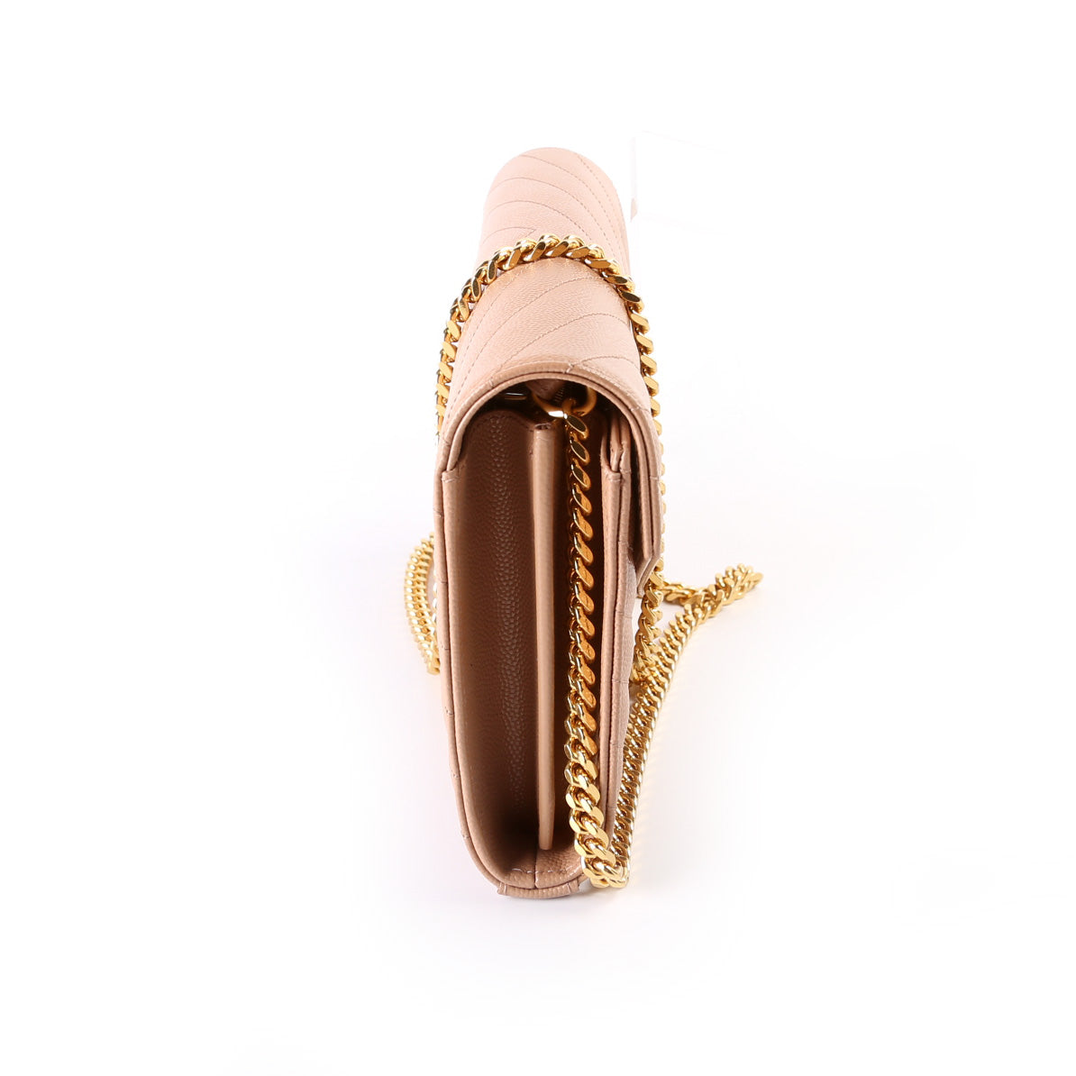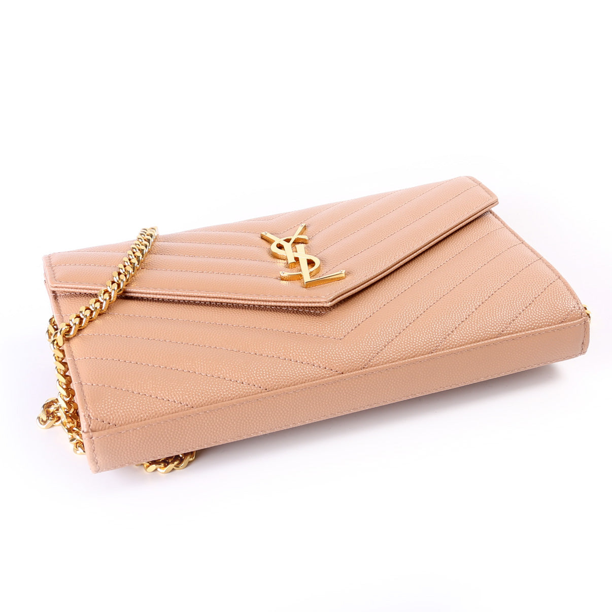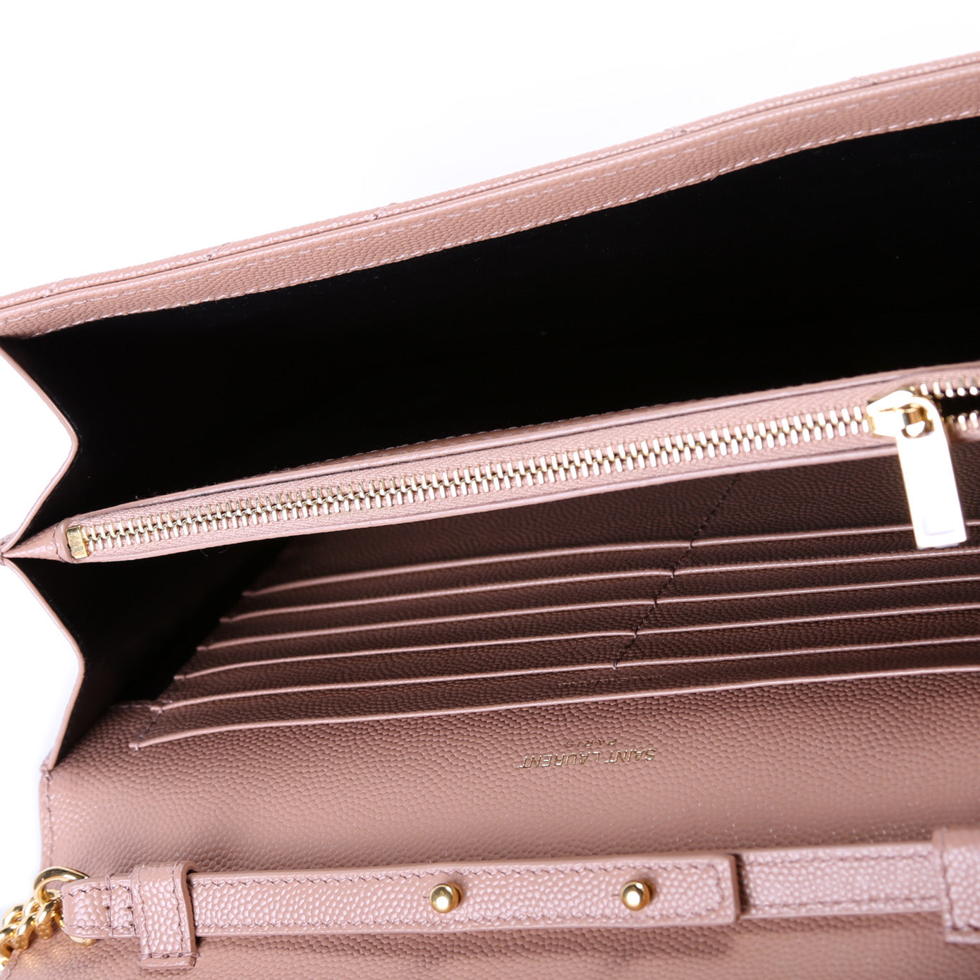 This Saint Laurent Grain De Poudre Chain Walletis eye catching bag. The exterior is in the classic Saint Laurent Grain De Poudre leather.