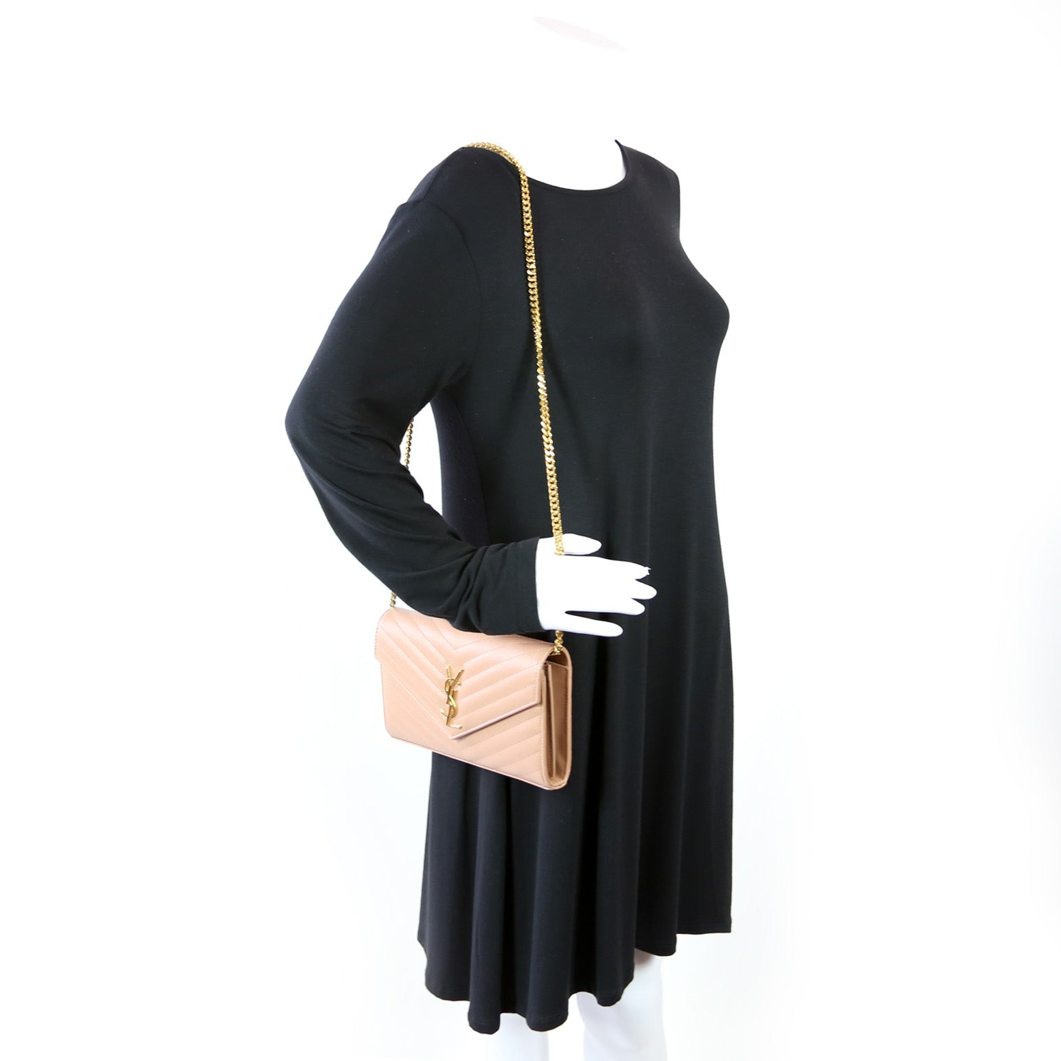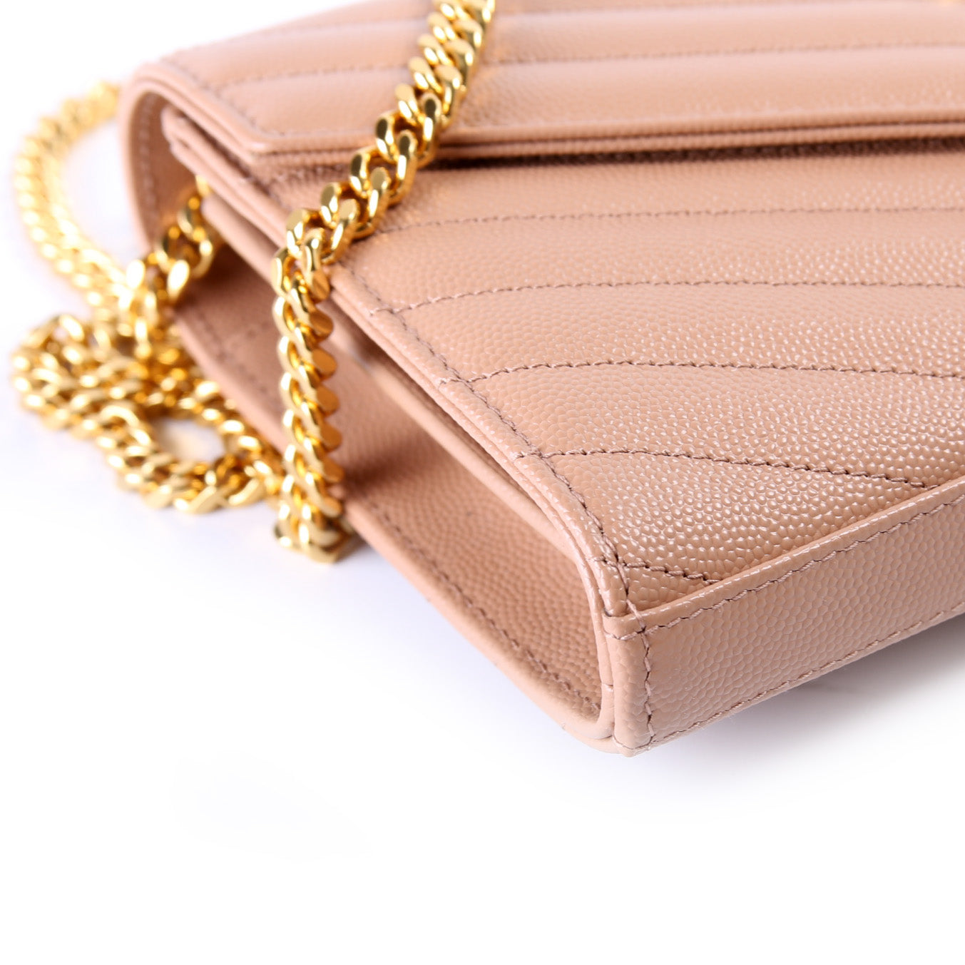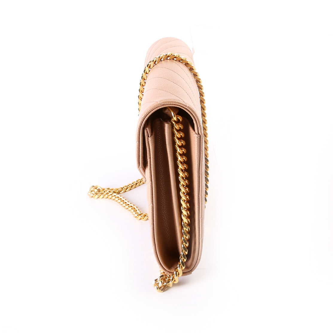 This Saint Laurent Grain De Poudre Chain Walletis eye catching bag. The exterior is in the classic Saint Laurent Grain De Poudre leather.