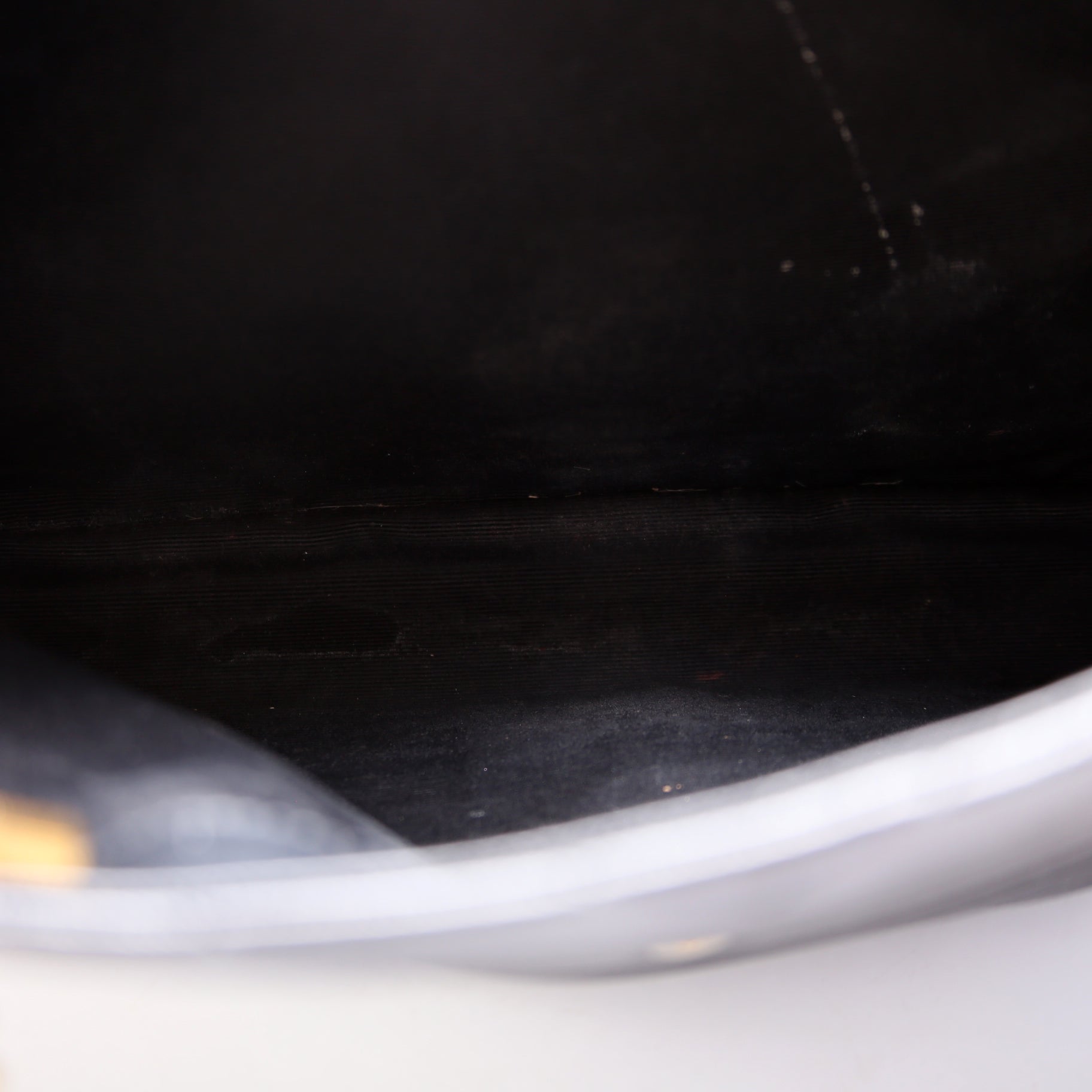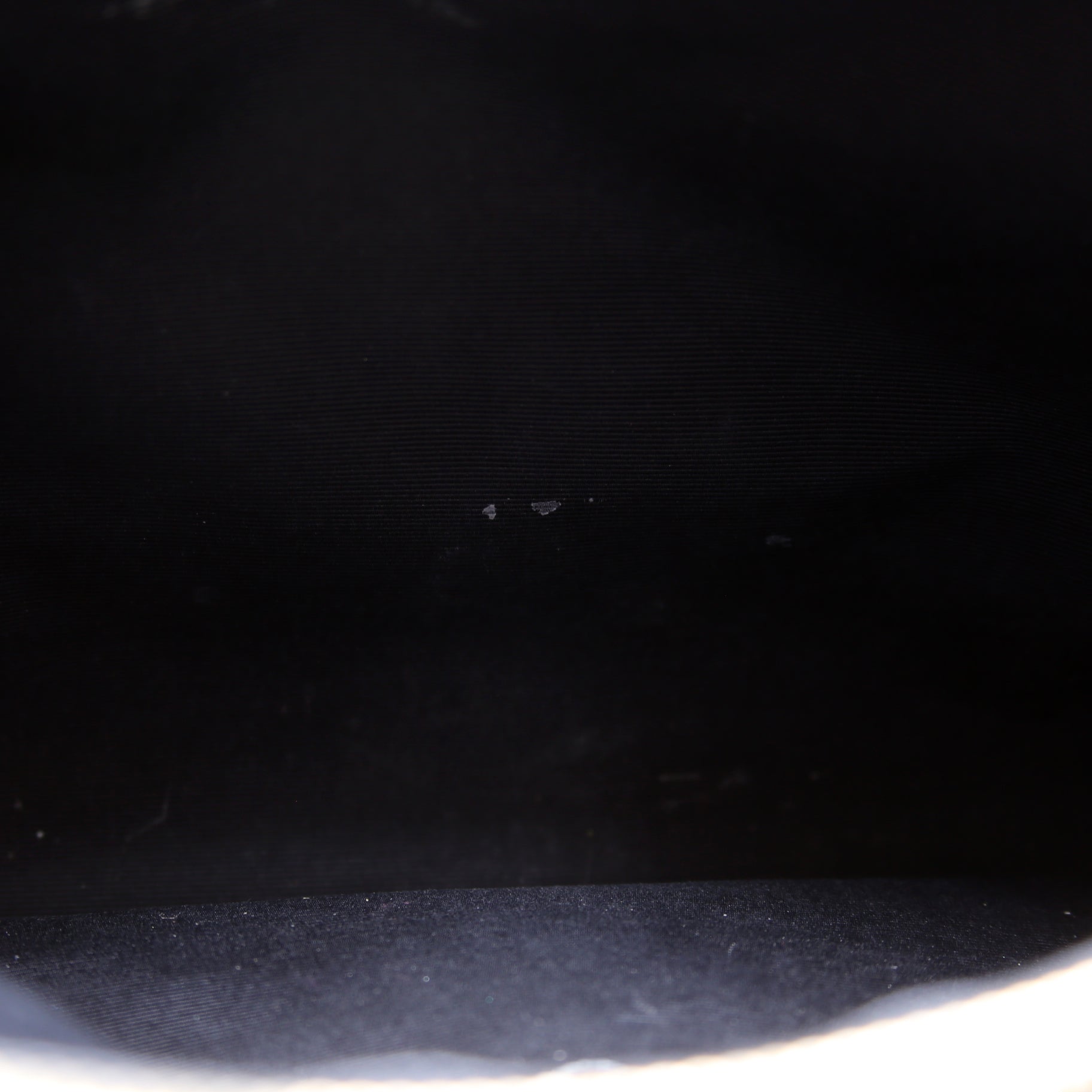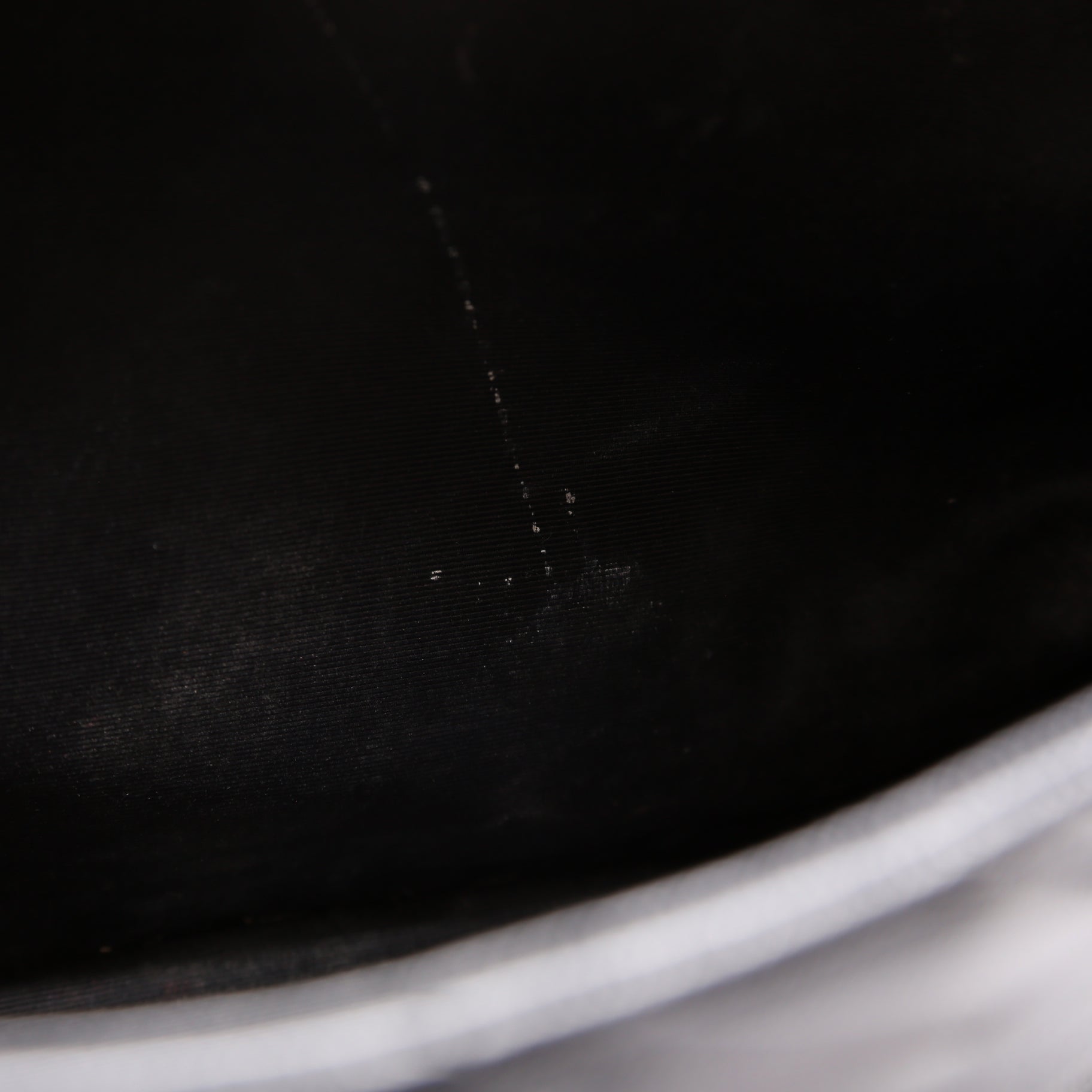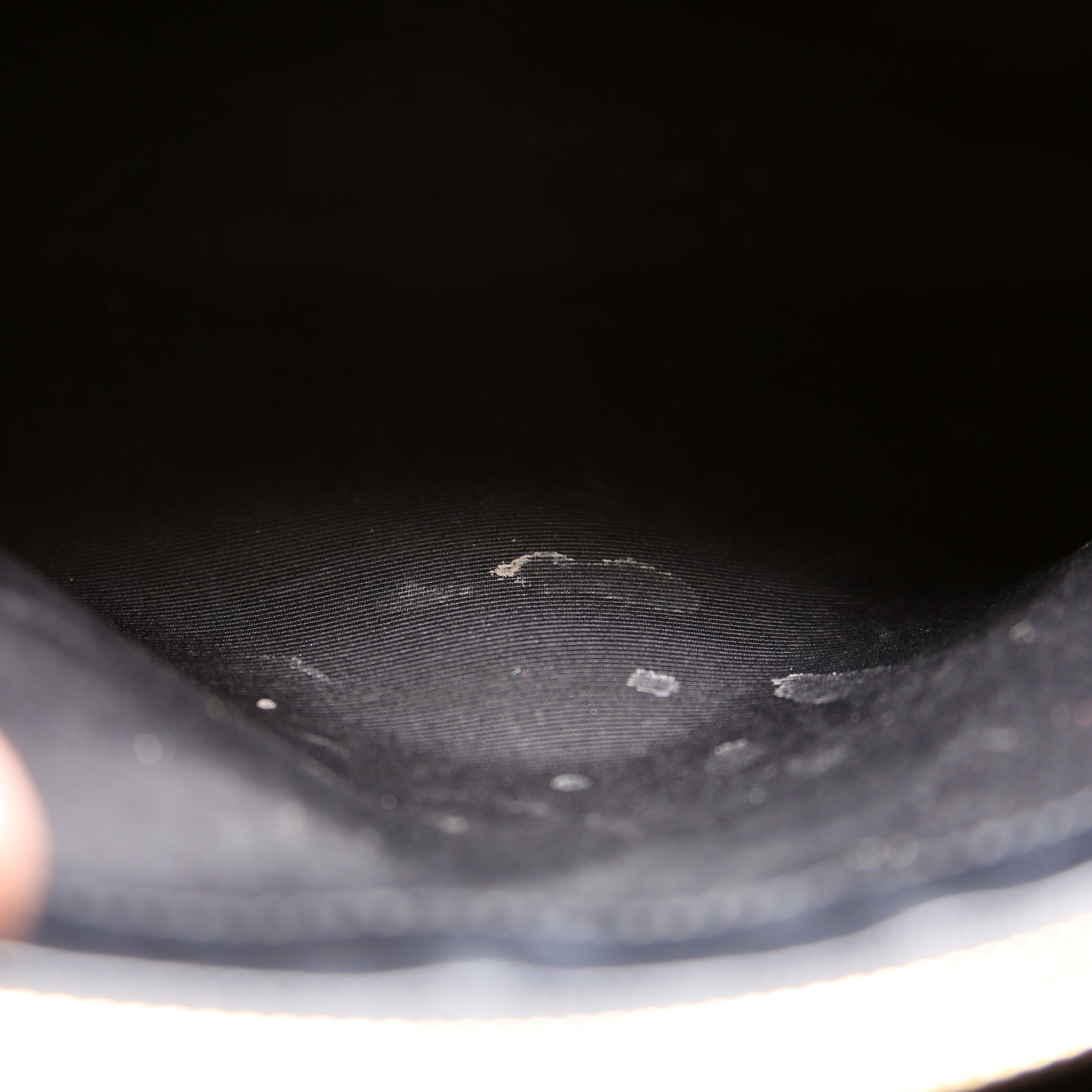 Interior: The interior is free of rips or tears. The interior features two zipper pockets. There is heavy discoloration throughout the interior of the fabric.