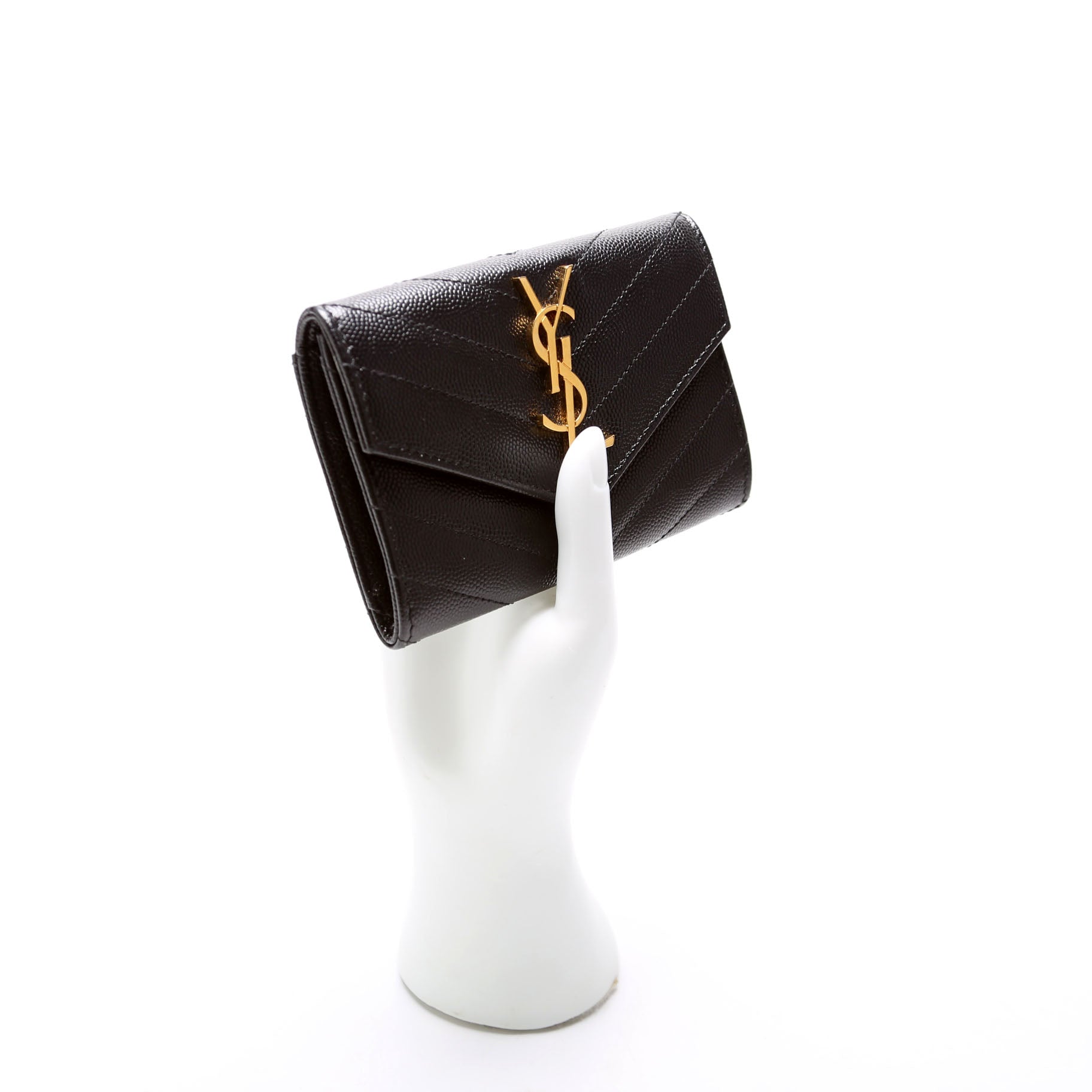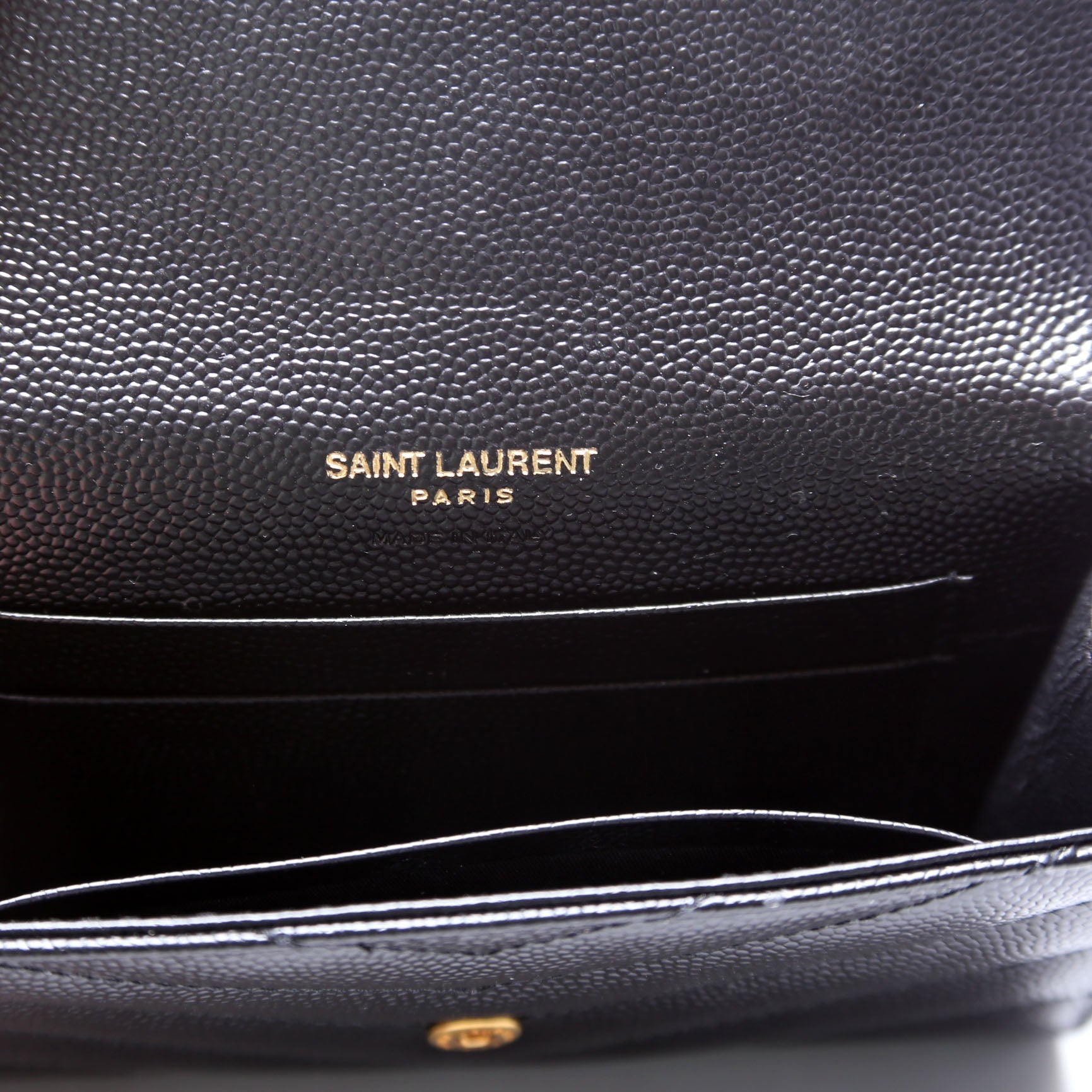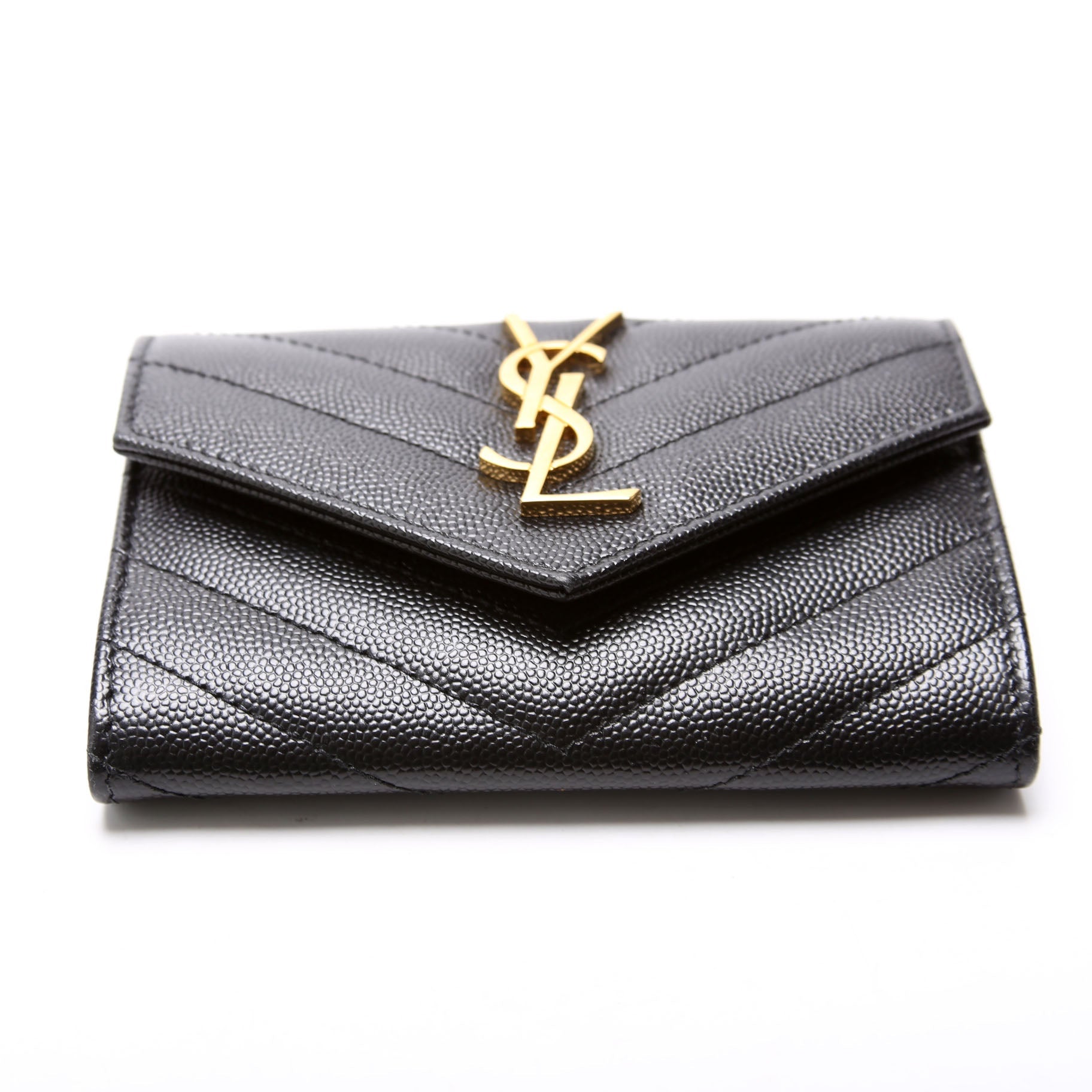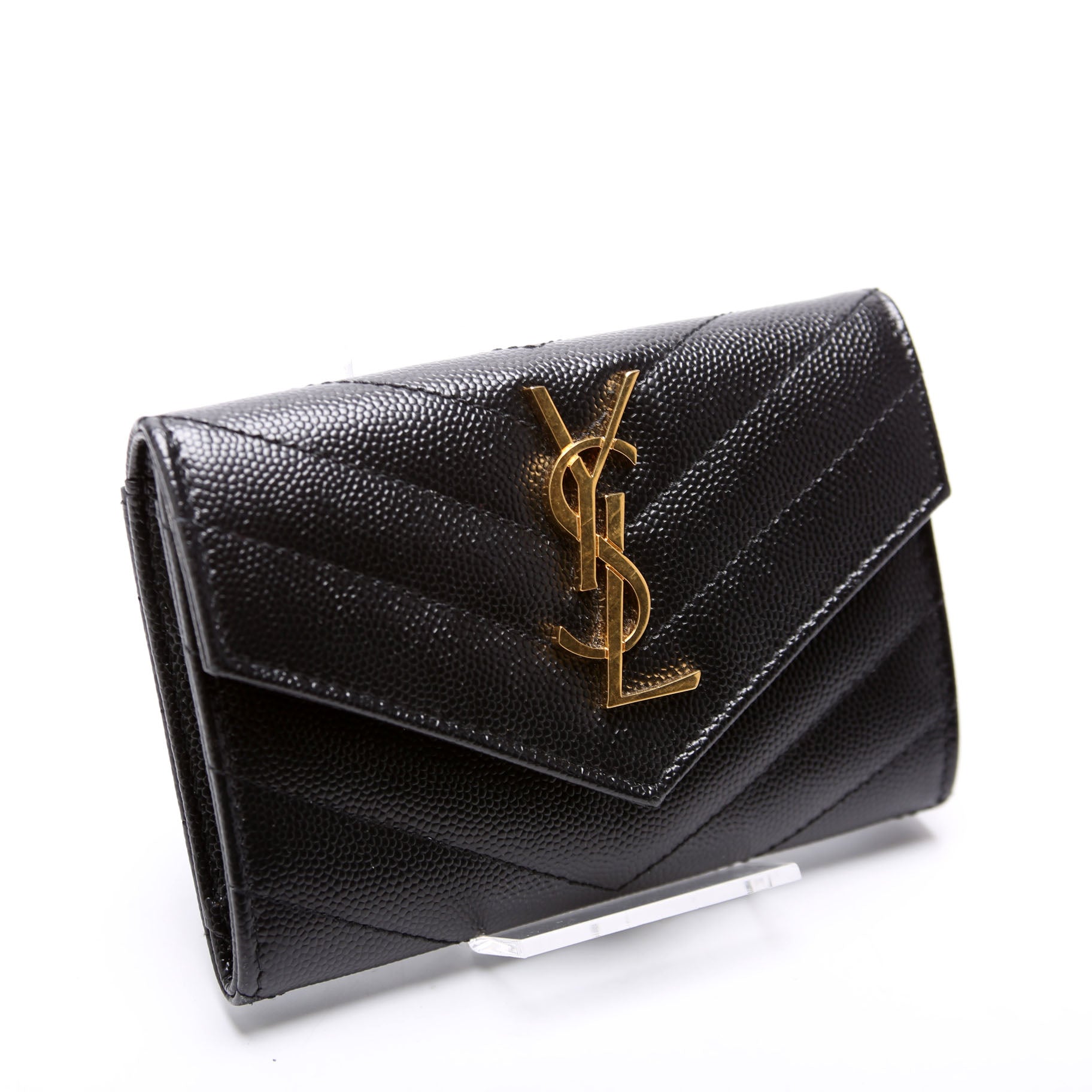 This pre-owned Saint Laurent Grain De Poudre Small Envelope Wallet is The exterior is in the classic Yves Saint Laurent Grain De Poudre leather.