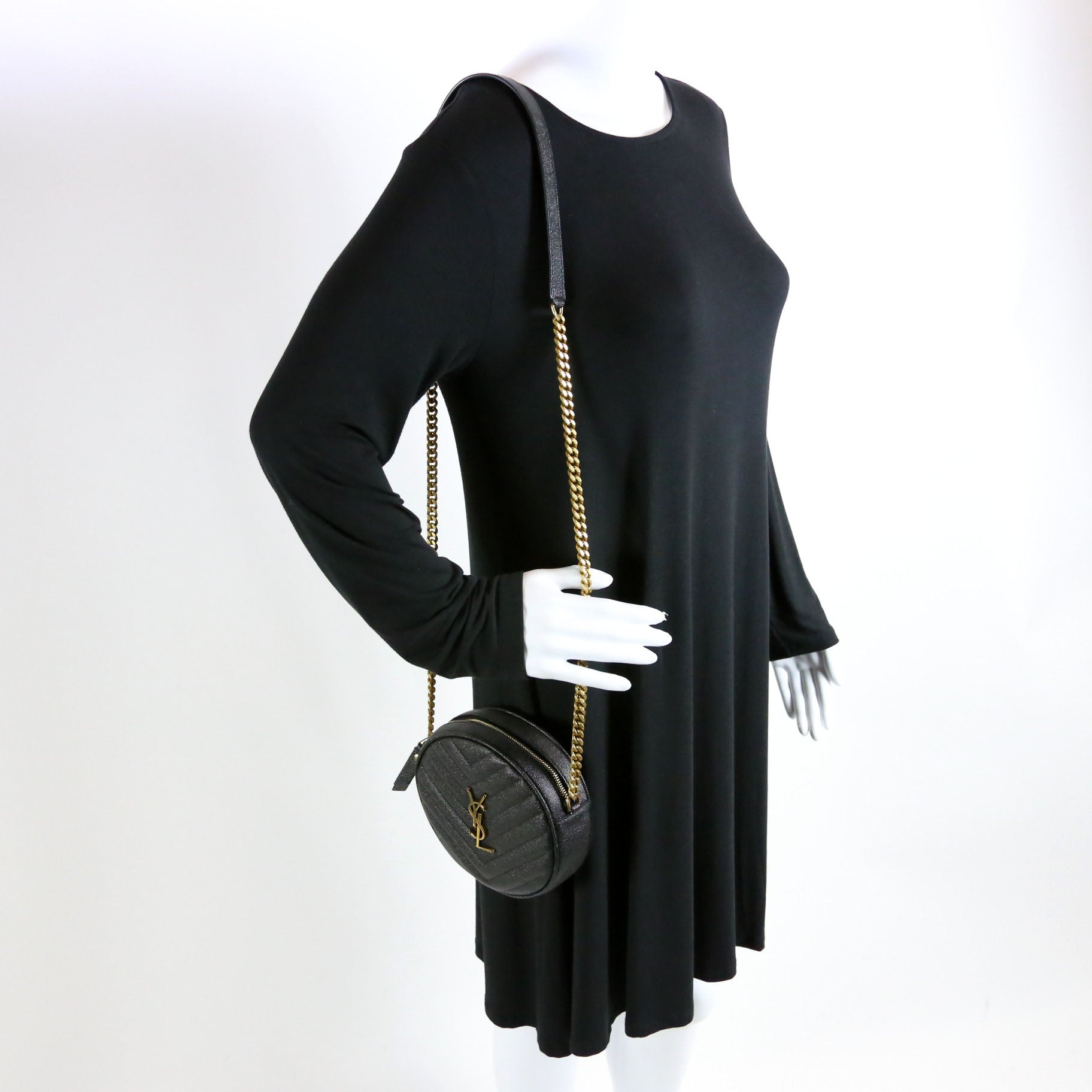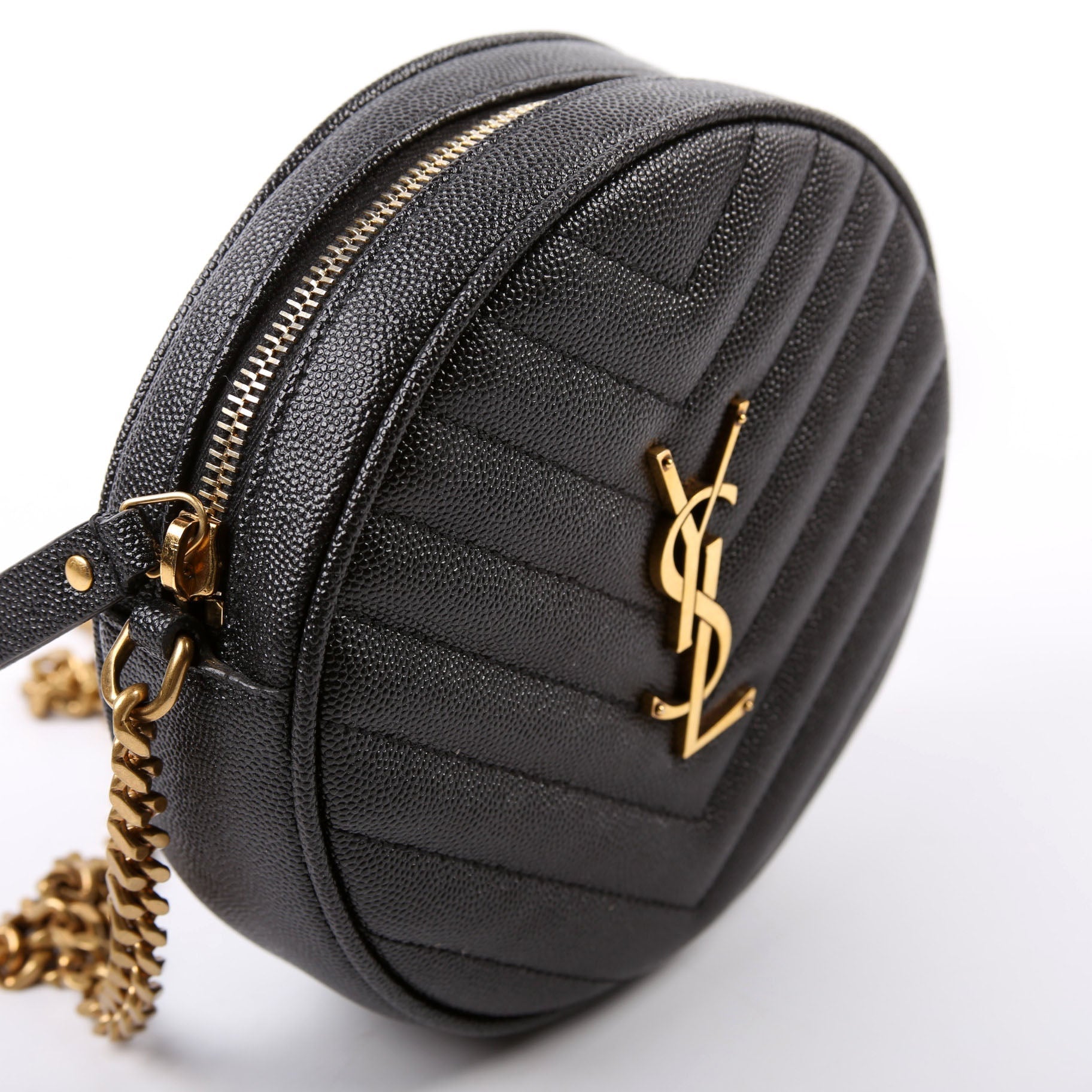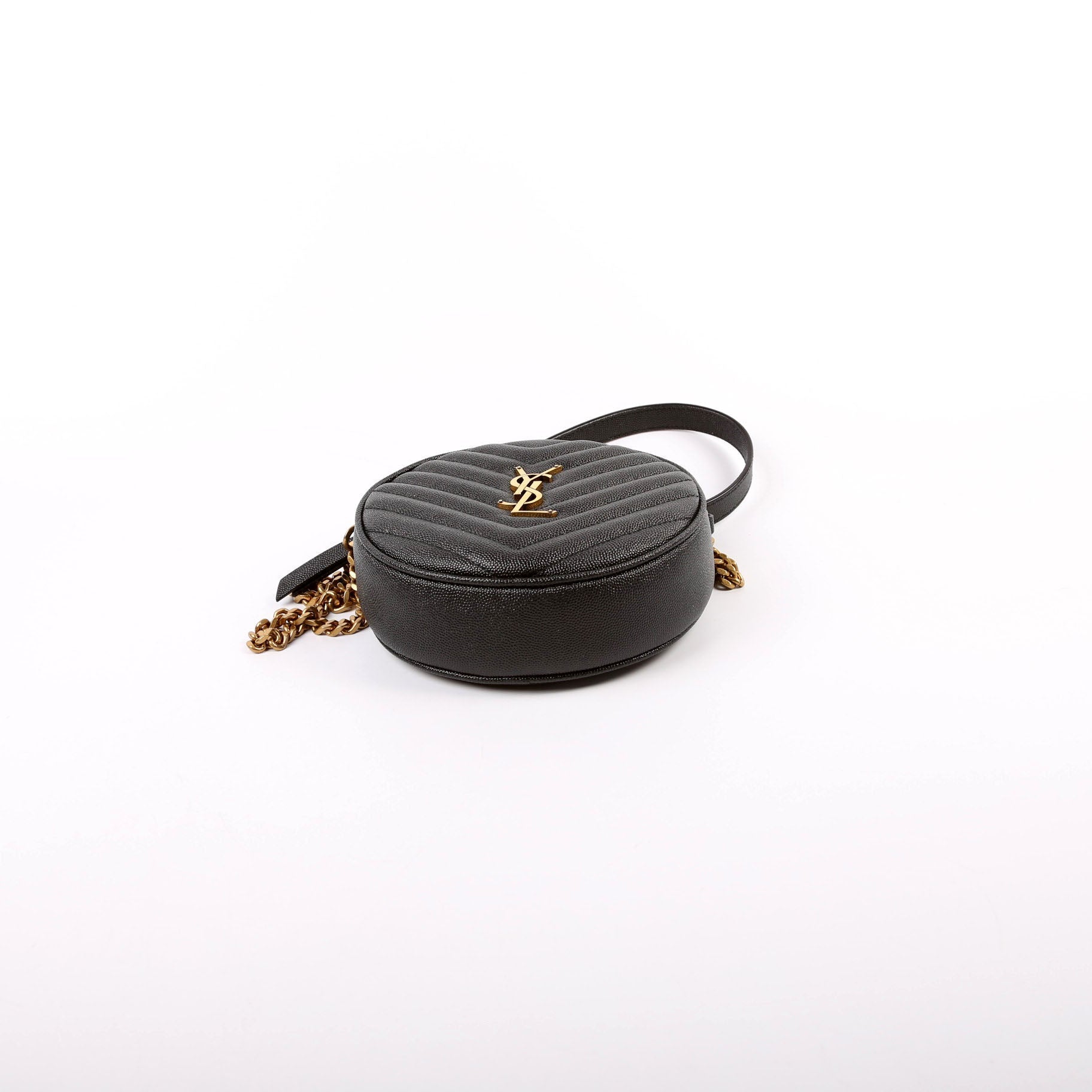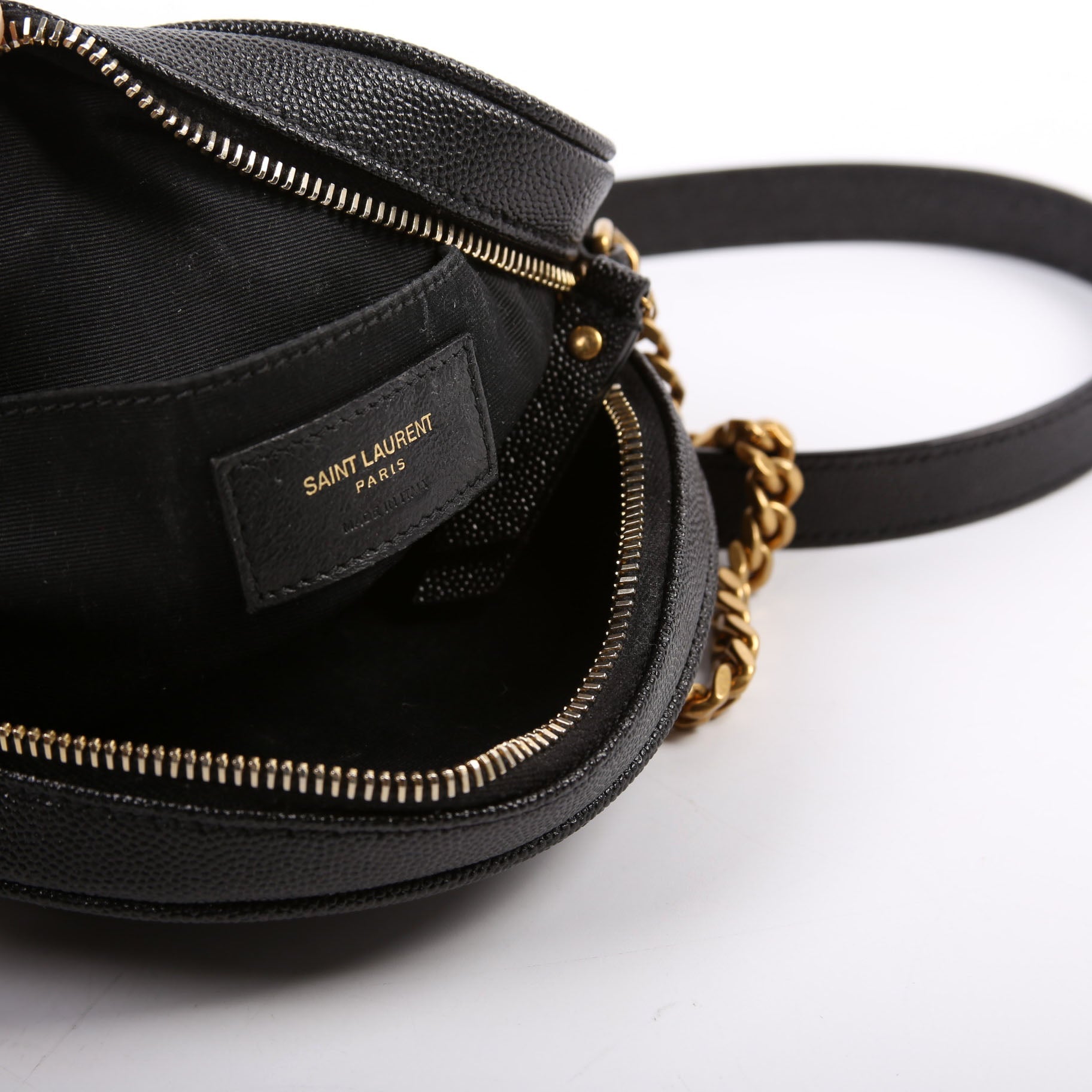 This pre-owned Saint Laurent Round Camera Bag is The exterior is in the classic Saint Laurent Grain De Poudre leather.
