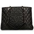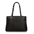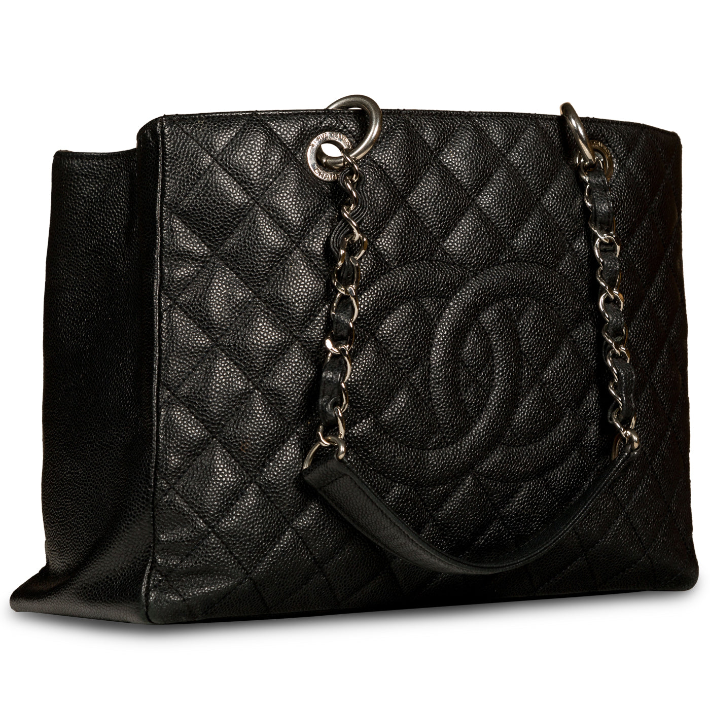 Chanel presents one of its most exclusive and coveted handbags; the Grand Shopping Tote. The bag is presented in durable caviar leather and features the brand’s iconic quilted pattern alonggoldside a large CC stitched logo. Its spacious interior features two open compartments separated by a middle zip pocket. A timeless piece that will never go out of style, the GST remains one of the most in-demand Chanel bags - despite unfortunately being discontinued in 2015. A classic handbag from the brand, the GST is that bag you'll use for any and every occasion. Going to work? Running errands? Dinner party with friends? Travelling? The GST is the ideal companion to have by your side. Sleek, stylish and sophisticated, the GST is a bag you'll have forever and one that you'll never fall out of love with. A well-worthy investment and a true must-have in any luxury handbag collection.