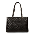 Chanel presents one of its most exclusive and coveted handbags; the Grand Shopping Tote. The bag is presented in durable caviar leather and features the brand’s iconic quilted pattern alonggoldside a large CC stitched logo. Its spacious interior features two open compartments separated by a middle zip pocket. A timeless piece that will never go out of style, the GST remains one of the most in-demand Chanel bags - despite unfortunately being discontinued in 2015. A classic handbag from the brand, the GST is that bag you'll use for any and every occasion. Going to work? Running errands? Dinner party with friends? Travelling? The GST is the ideal companion to have by your side. Sleek, stylish and sophisticated, the GST is a bag you'll have forever and one that you'll never fall out of love with. A well-worthy investment and a true must-have in any luxury handbag collection.