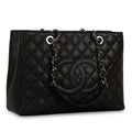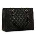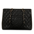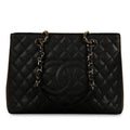 Chanel presents one of its most exclusive and coveted handbags; the Grand Shopping Tote. The bag is presented in durable caviar leather and features the brand’s iconic quilted pattern alongside a large CC stitched logo. Its spacious interior features two open compartments separated by a middle zip pocket. A timeless piece that will never go out of style, the GST remains one of the most in-demand Chanel bags - despite unfortunately being discontinued in 2015. A classic handbag from the brand, the GST is that bag you'll use for any and every occasion. Going to work? Running errands? Dinner party with friends? Travelling? The GST is the ideal companion to have by your side. Sleek, stylish and sophisticated, the GST is a bag you'll have forever and one that you'll never fall out of love with. A well-worthy investment and a true must-have in any luxury handbag collection.