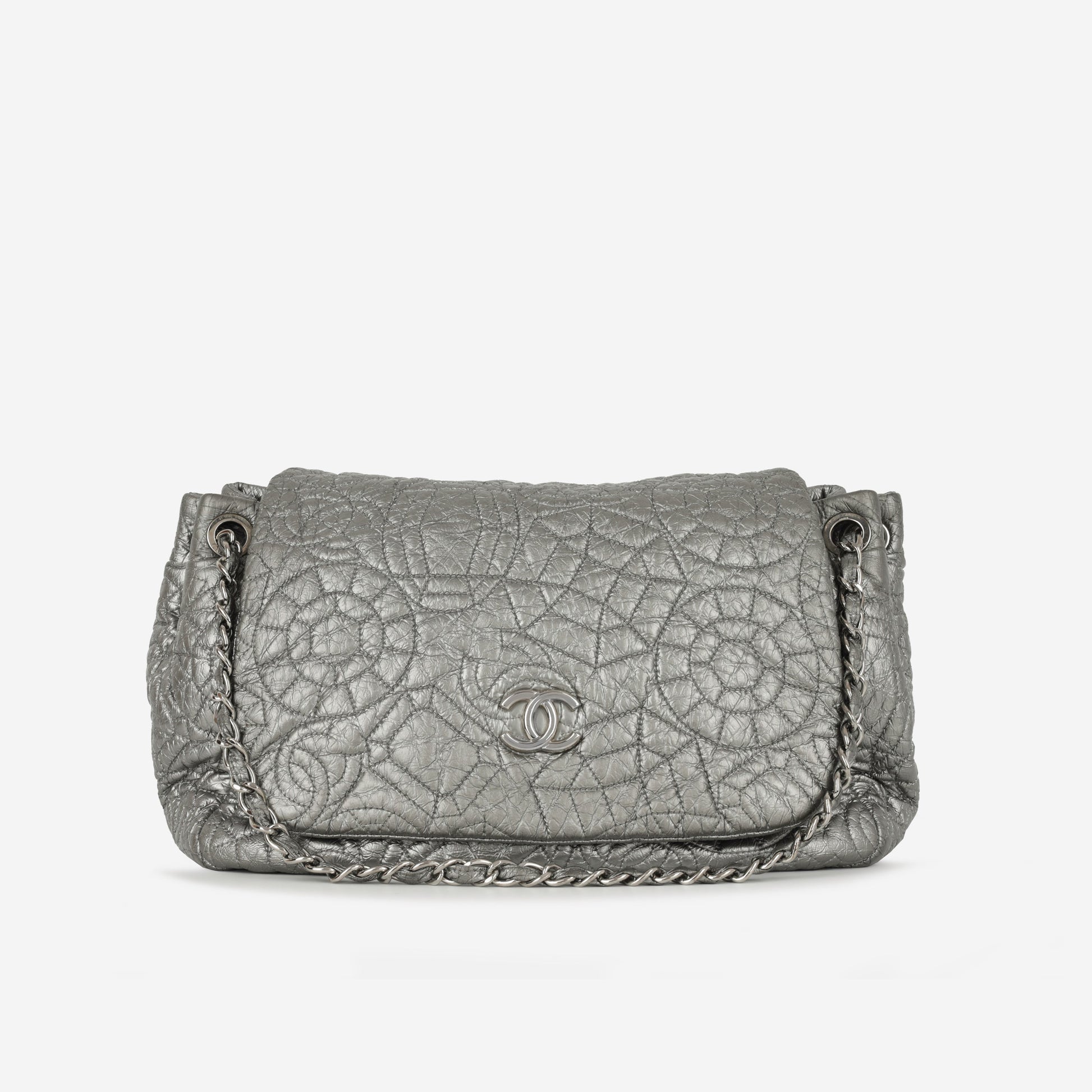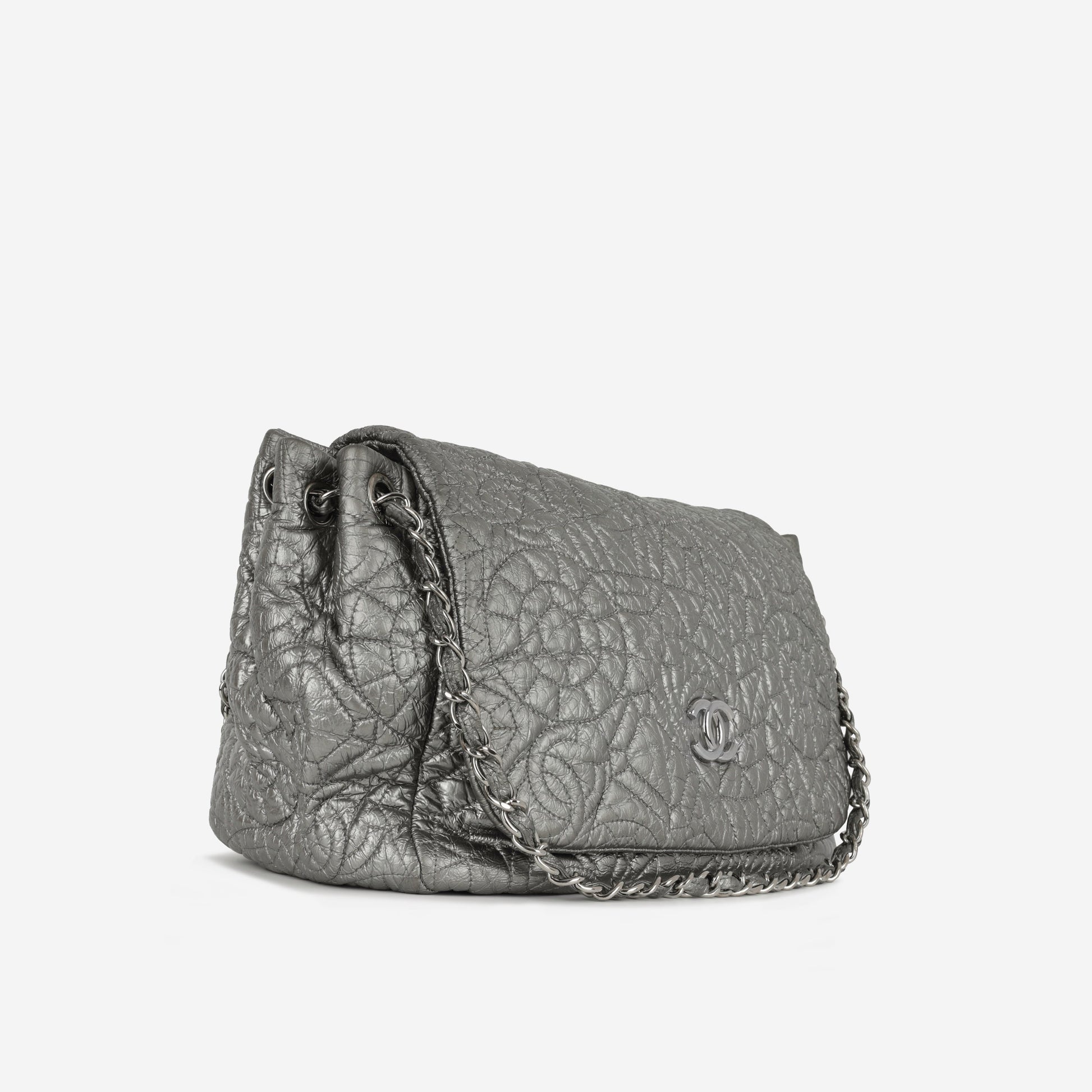 Redefines luxury with a bold, modern twist on a classic design. This statement piece combines the iconic Chanel flap bag silhouette with an edgy, contemporary vinyl finish, offering a perfect balance of high-fashion appeal and everyday practicality.