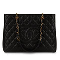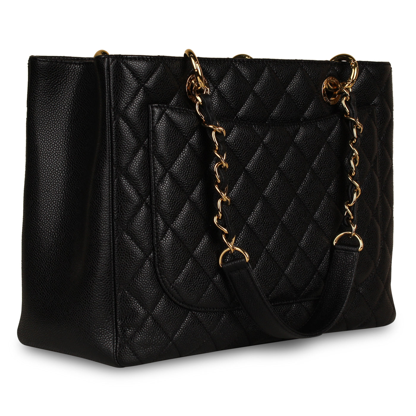 Chanel presents one of its most exclusive and coveted handbags; the Grand Shopping Tote. The bag is presented in durable caviar leather and features the brand’s iconic quilted pattern alongside a large CC stitched logo. Its spacious interior features two open compartments separated by a middle zip pocket. A timeless piece that will never go out of style, the GST remains one of the most in-demand Chanel bags - despite unfortunately being discontinued in 2015. A classic handbag from the brand, the GST is that bag you'll use for any and every occasion. Going to work? Running errands? Dinner party with friends? Travelling? The GST is the ideal companion to have by your side. Sleek, stylish and sophisticated, the GST is a bag you'll have forever and one that you'll never fall out of love with. A well-worthy investment and a true must-have in any luxury handbag collection.