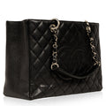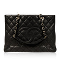 Chanel presents one of its most exclusive and coveted handbags; the Grand Shopping Tote. The bag is presented in durable caviar leather and features the brand’s iconic quilted pattern alongside a large CC stitched logo. Its spacious interior features two open compartments separated by a middle zip pocket. A timeless piece that will never go out of style, the GST remains one of the most in-demand Chanel bags - despite unfortunately being discontinued in 2015. A classic handbag from the brand, the GST is that bag you'll use for any and every occasion. Going to work? Running errands? Dinner party with friends? Travelling? The GST is the ideal companion to have by your side. Sleek, stylish and sophisticated, the GST is a bag you'll have forever and one that you'll never fall out of love with. A well-worthy investment and a true must-have in any luxury handbag collection.
