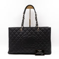 Chanel classic GST bag is very popular choice for work and business use. This grand shopping tote is made with black caviarskin leather and silver-tone hardware. Two compartments and a middle zipper pocket. Outside has a slim pocket. Easy to use everyday, with documents, laptop, and all daily items. This is the hard to find largest XL version of the classic GST, with plenty of space for everything.