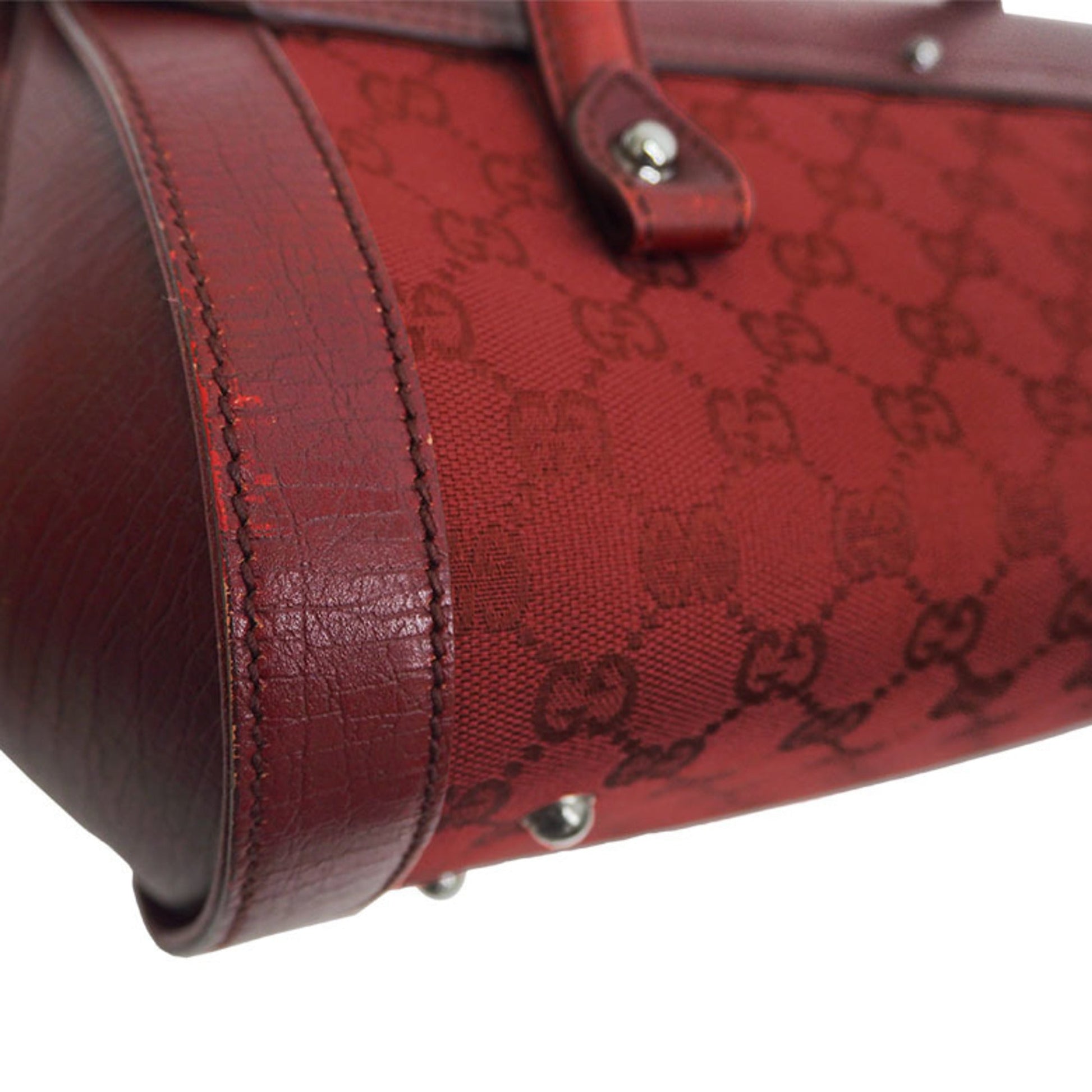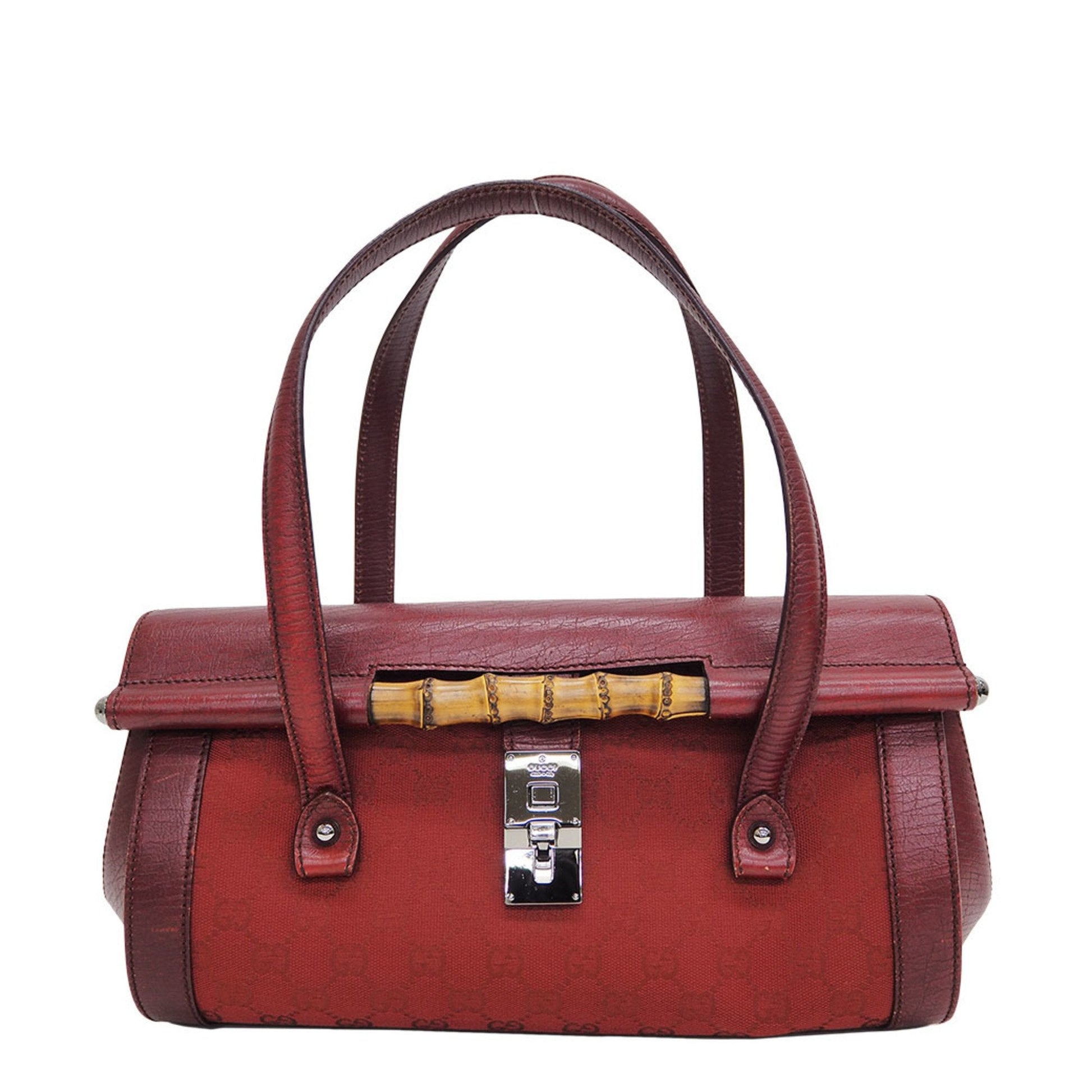 Gucci 111713 GG canvas bamboo handbag red tubular shoulder