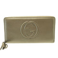 Gucci 308004 Soho Interlocking G Leather Gunmetal Round Long Wallet