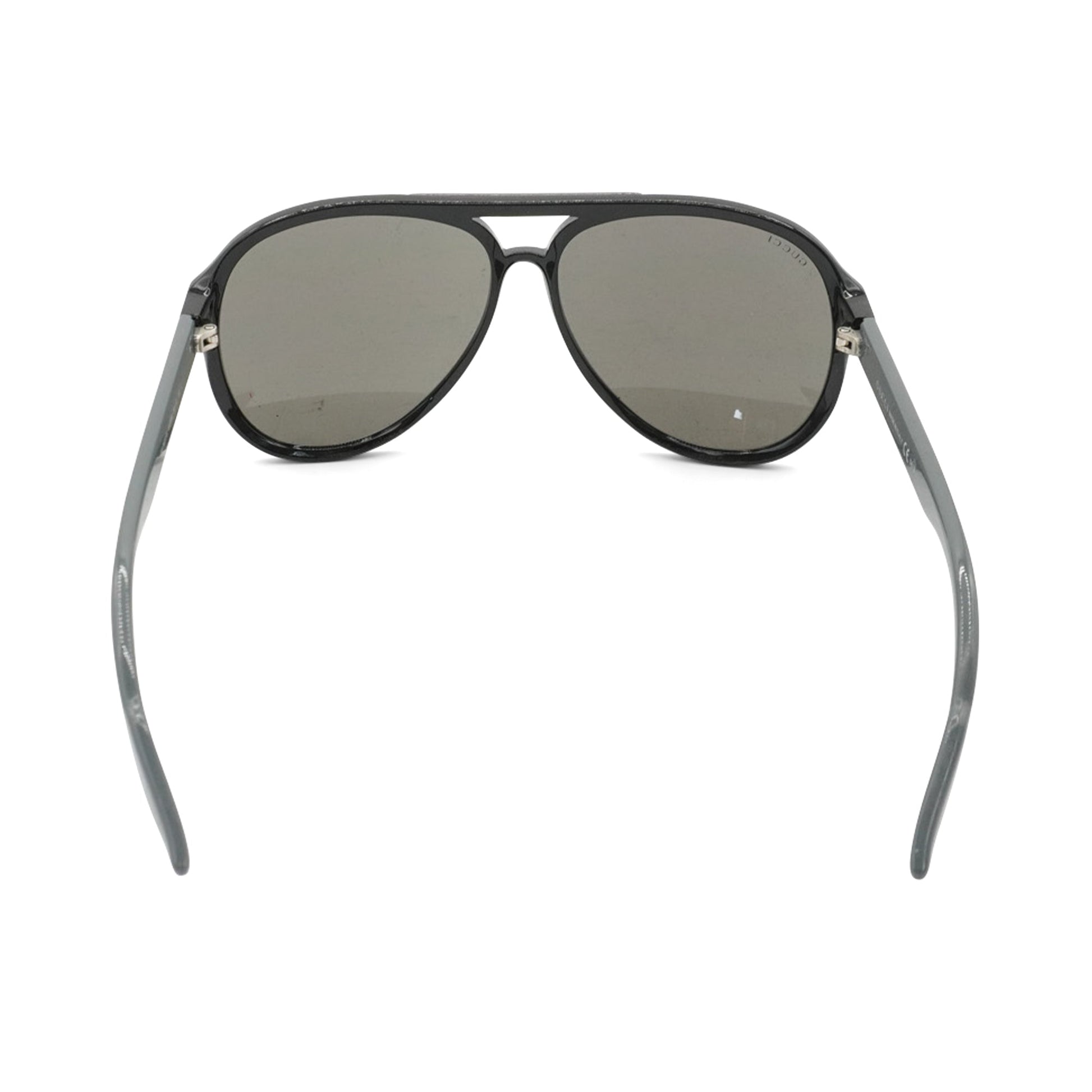 Gucci aviator sunglasses in black acetate with grey arms and red and green racing stripe detail.