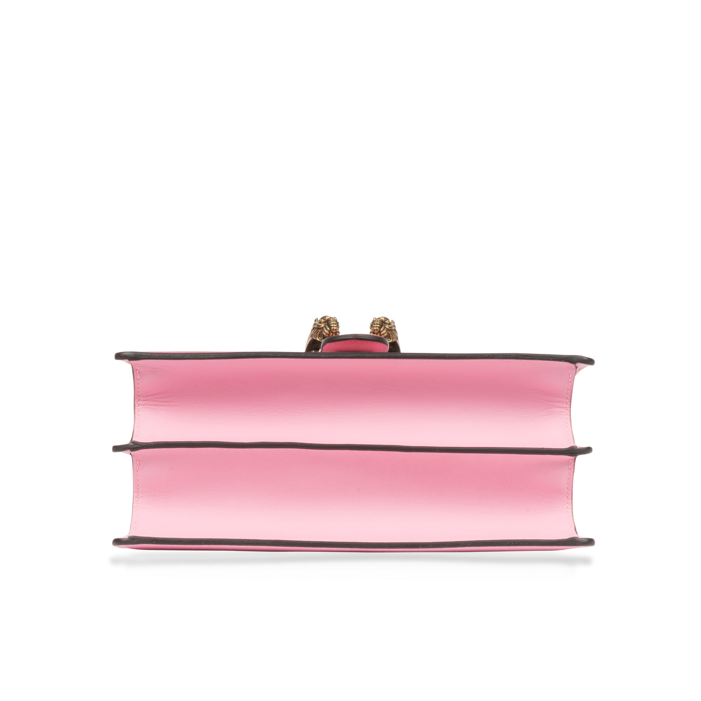 For the sophisticated woman with a bit of an edgy style, the Gucci Bamboo Dionysus is the perfect mix between classic and fashion-forward. Carefully crafted from smooth pink leather with two red and blue stripes, this gorgeous bag features the signature Dionysus tiger clasp, bamboo top handle and removable red and blue fabric shoulder strap. With two spacious compartments that can easily hold all your every day essentials inside, the Bamboo Dionysus is the ideal balance between style and practicality. This feminine piece was made for the sophisticated girly-girls who aren't afraid of turning heads wherever they go. A true must-have for any Gucci lover, this stunning piece is a well worthy addition to any luxury handbag collection.