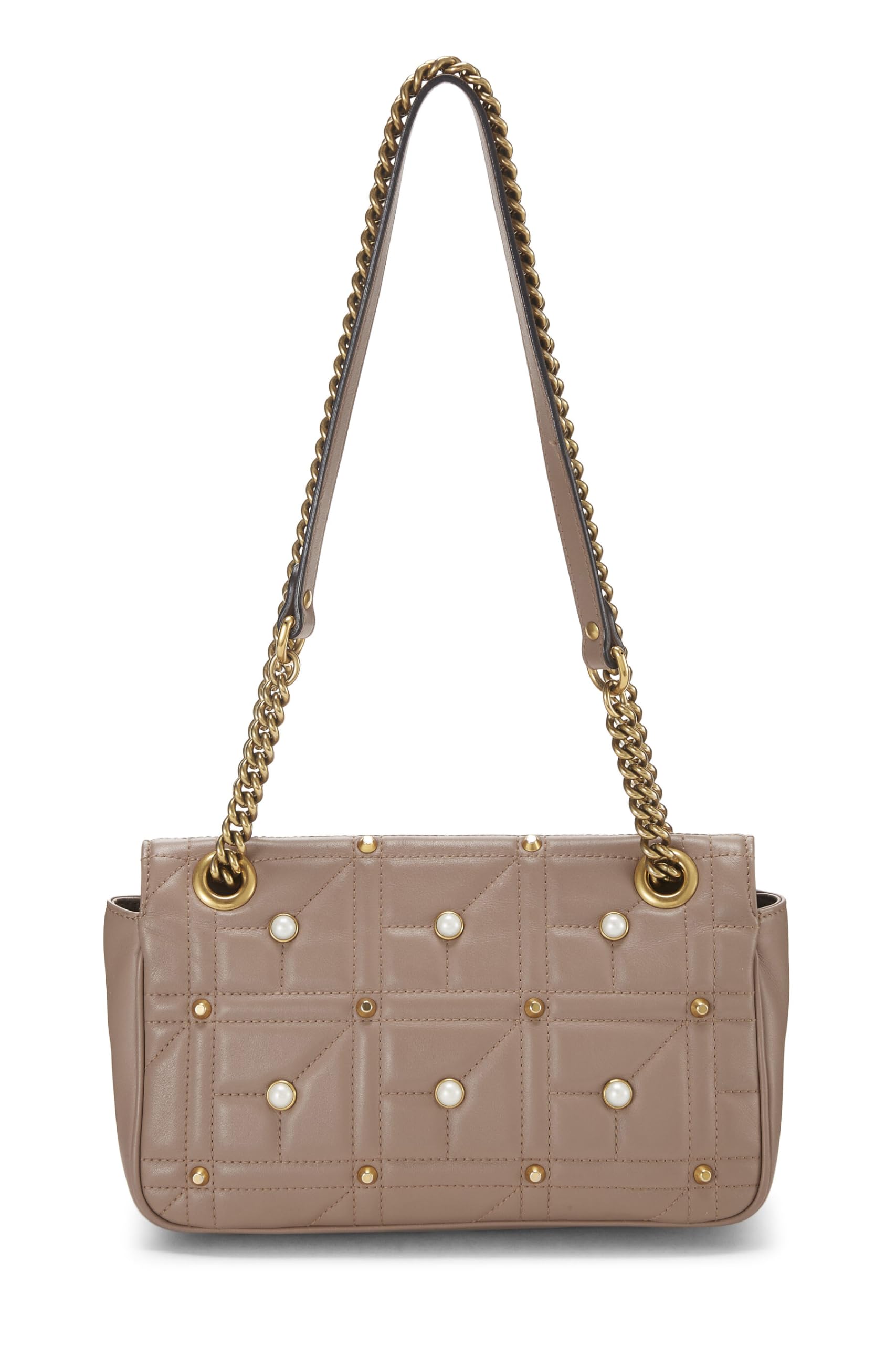 Gucci, Beige Leather & Faux Pearl GG Marmont Shoulder Bag Small, Beige