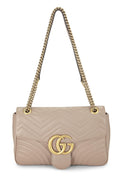 Gucci, Beige Leather GG Marmont Shoulder Bag, Beige