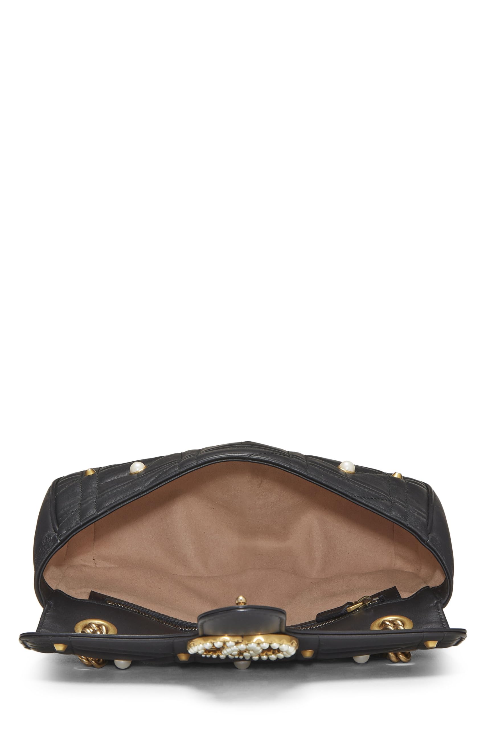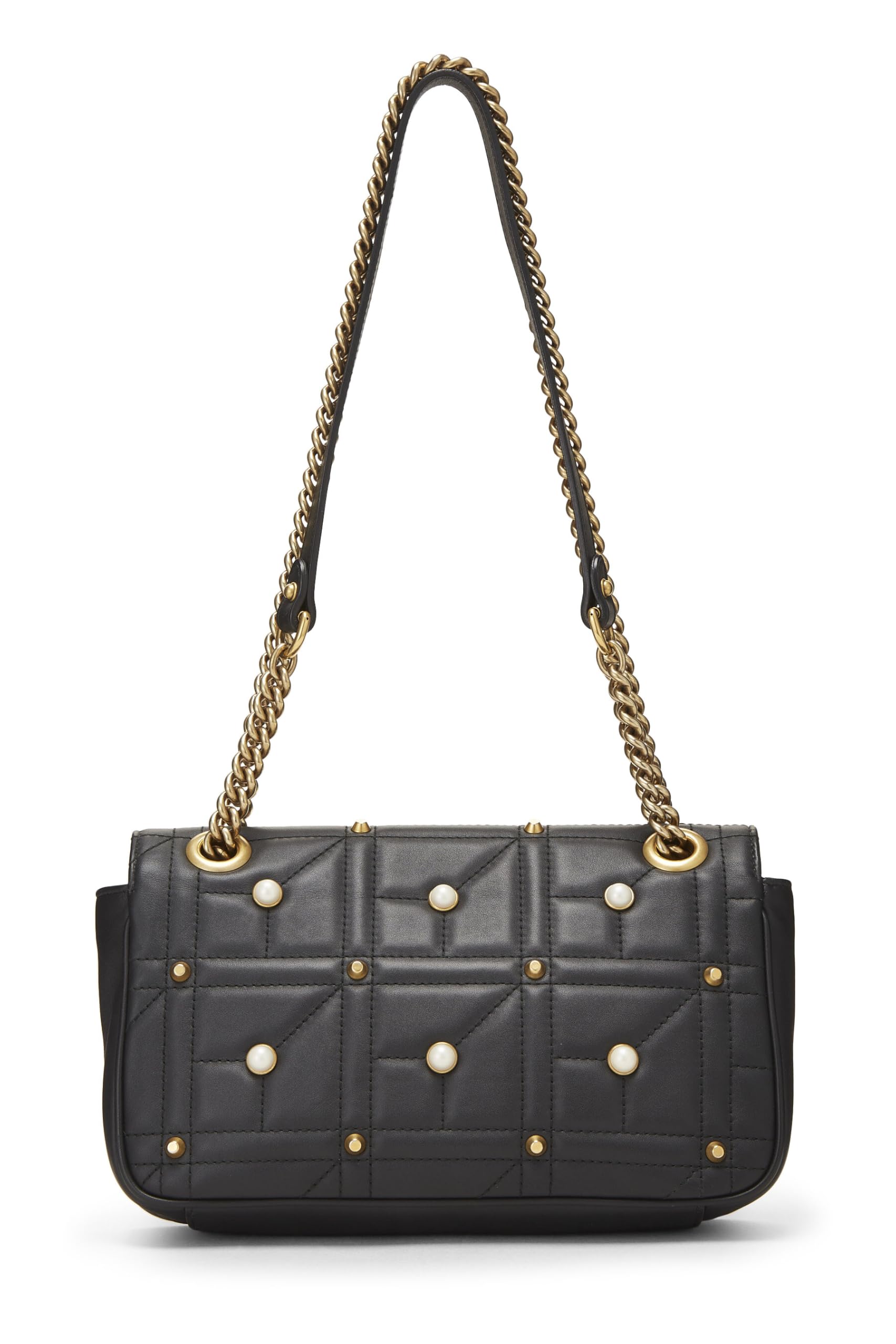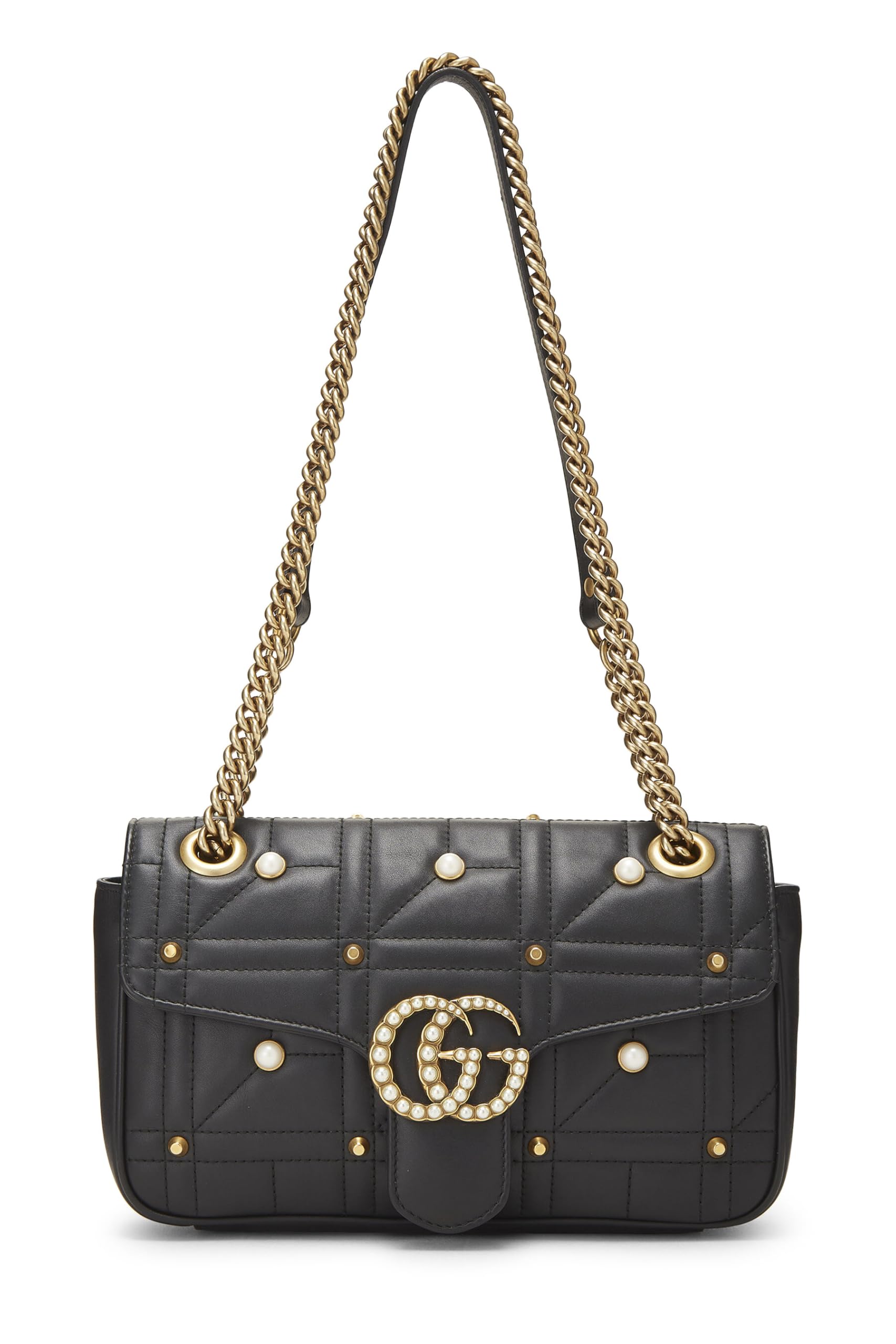 Gucci, Black Faux Pearl Matelassé Leather Marmont Shoulder Bag Small, Black