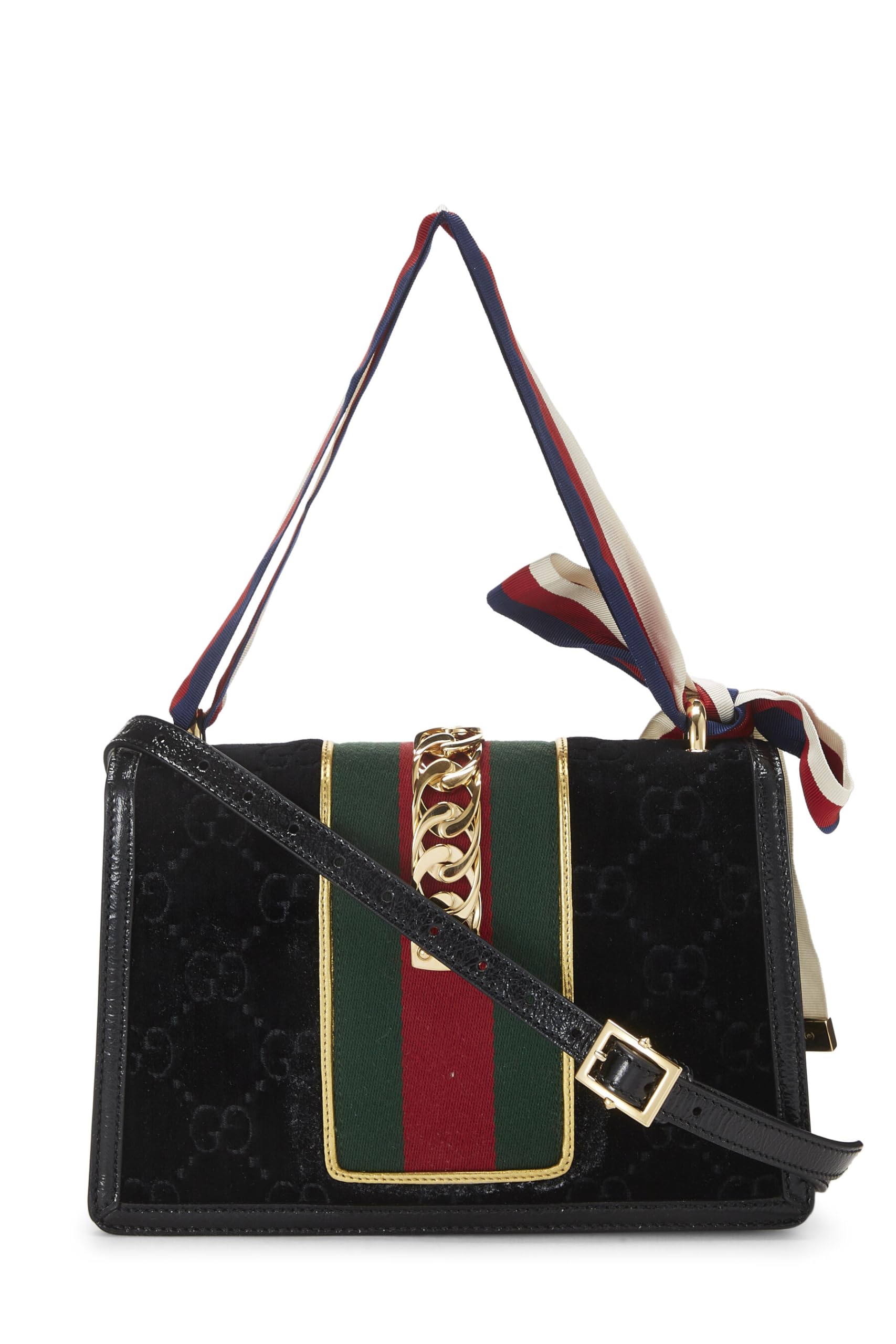 Gucci, Black GG Velvet Sylvie Shoulder Bag, Black