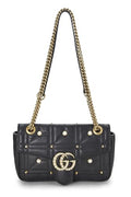 Gucci, Black Leather & Faux Pearl GG Marmont Shoulder Bag Small, Black
