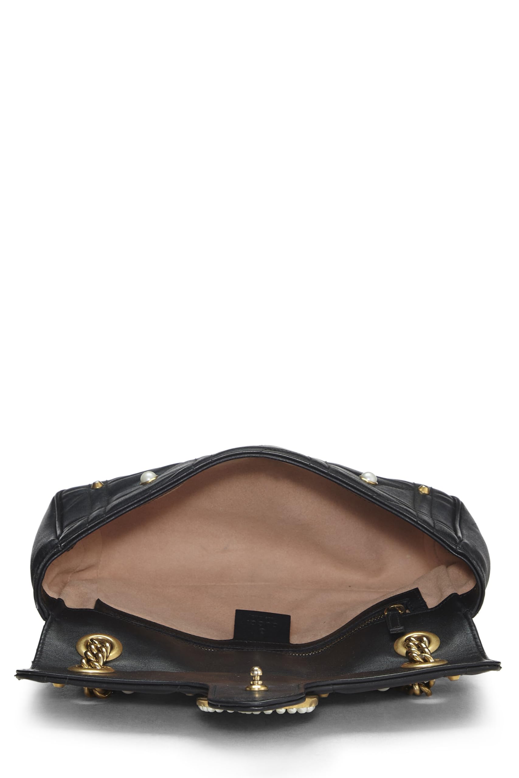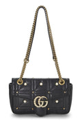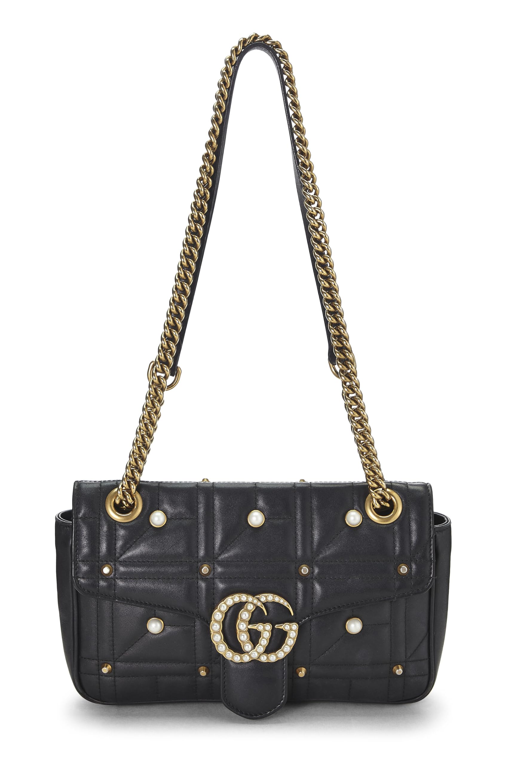Gucci, Black Leather & Faux Pearl GG Marmont Shoulder Bag Small, Black