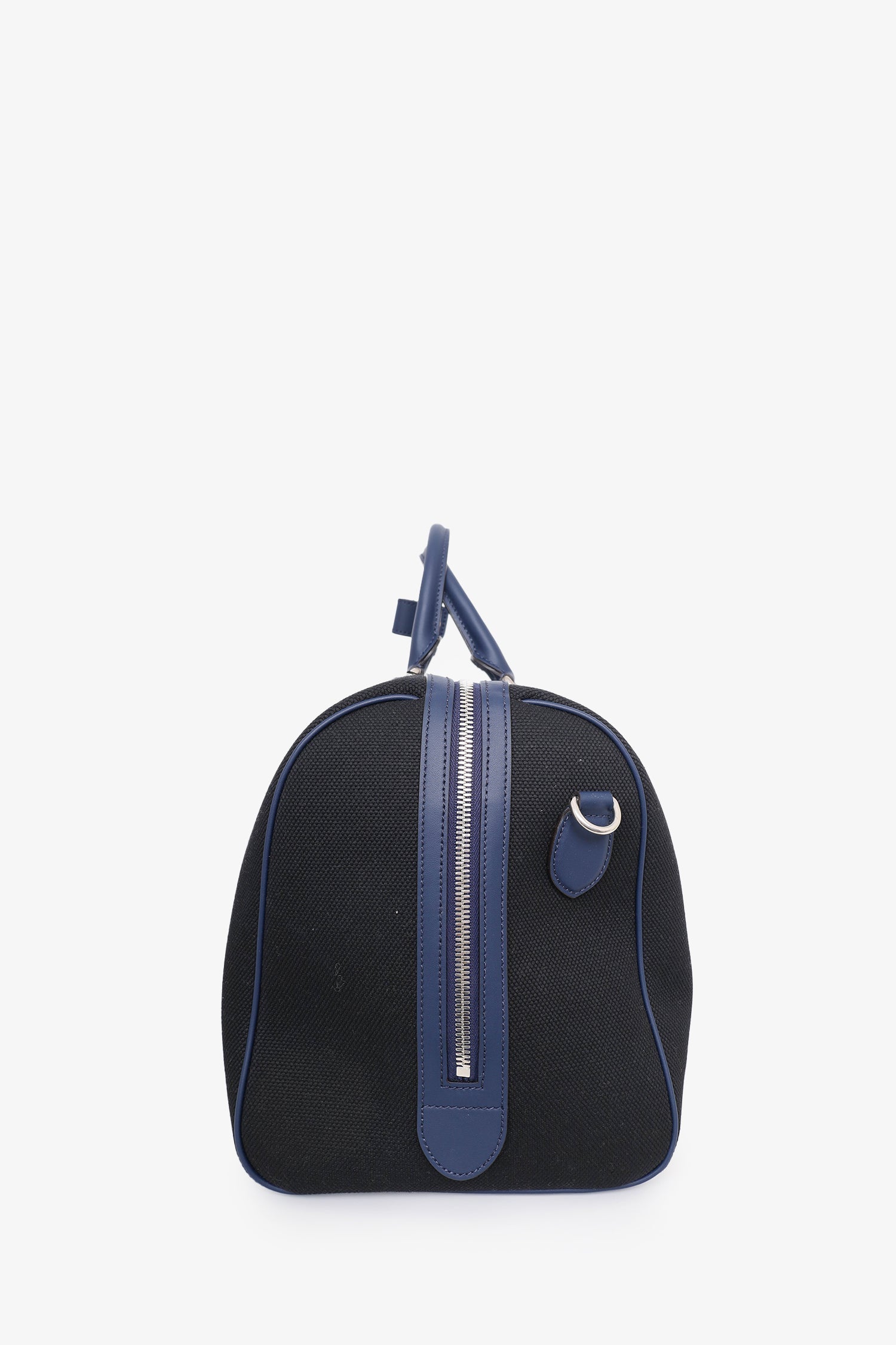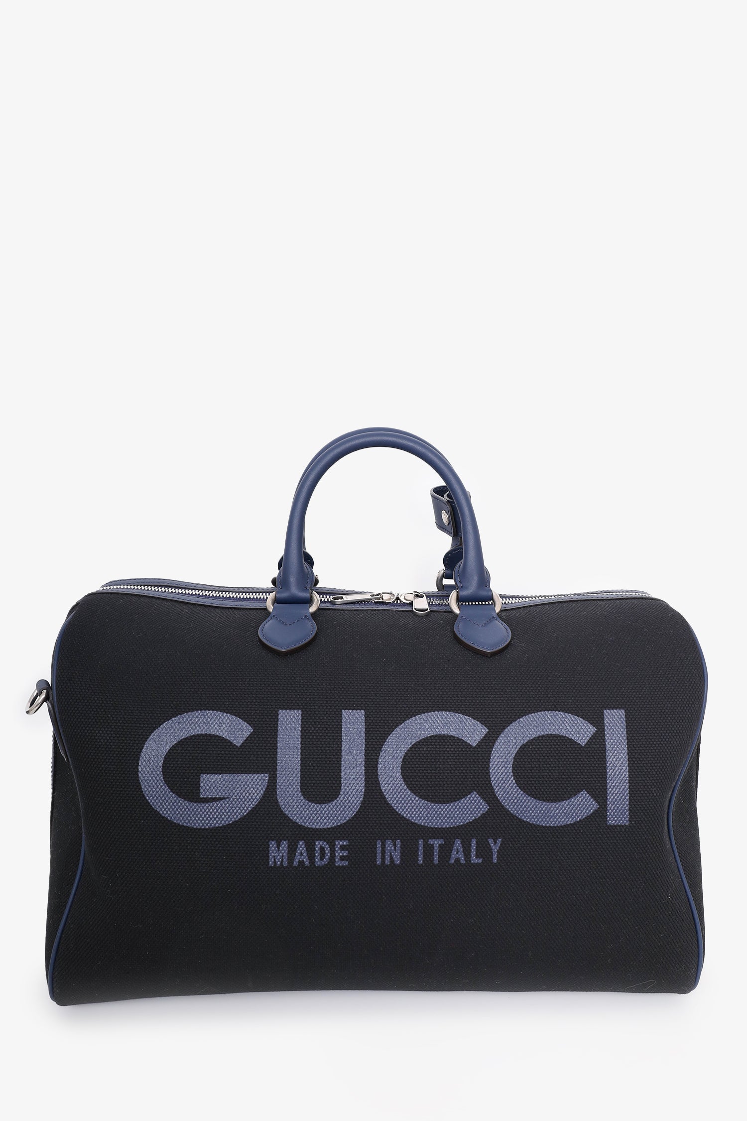 Gucci Black/Navy Canvas/Leather 'Gucci' Printed Duffle Bag With Strap