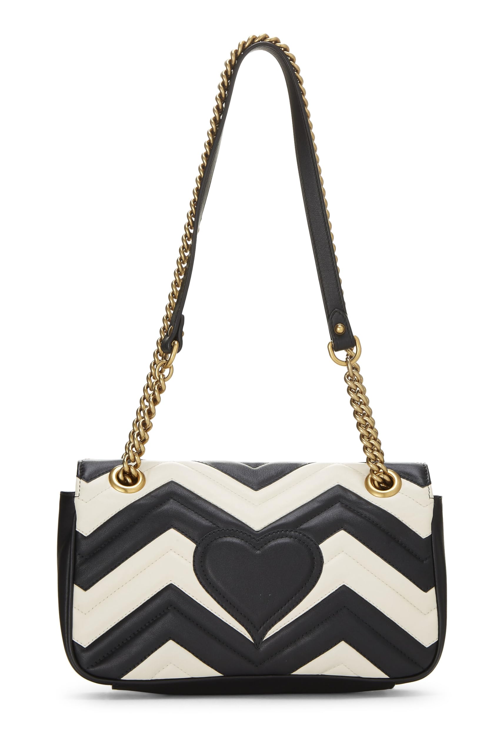 Gucci, Black & White Leather GG Marmont Shoulder Bag Small, Multi