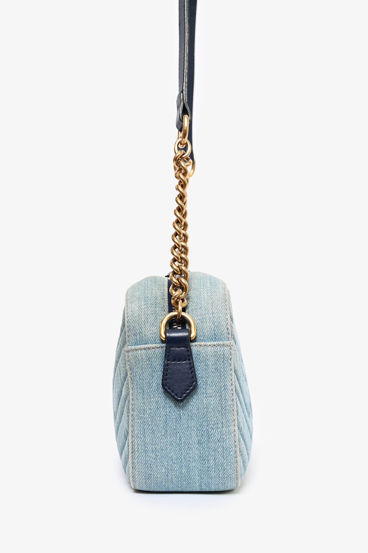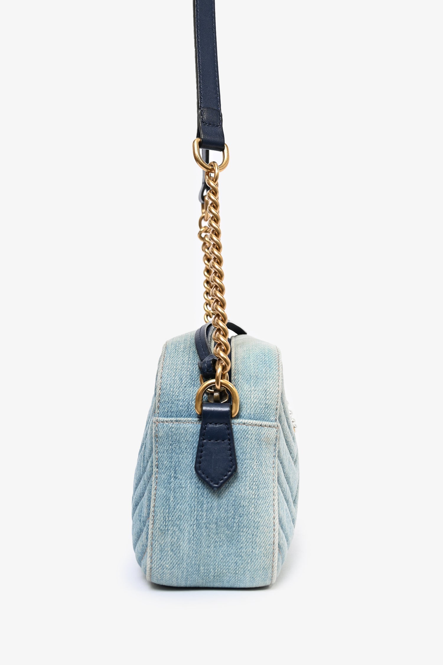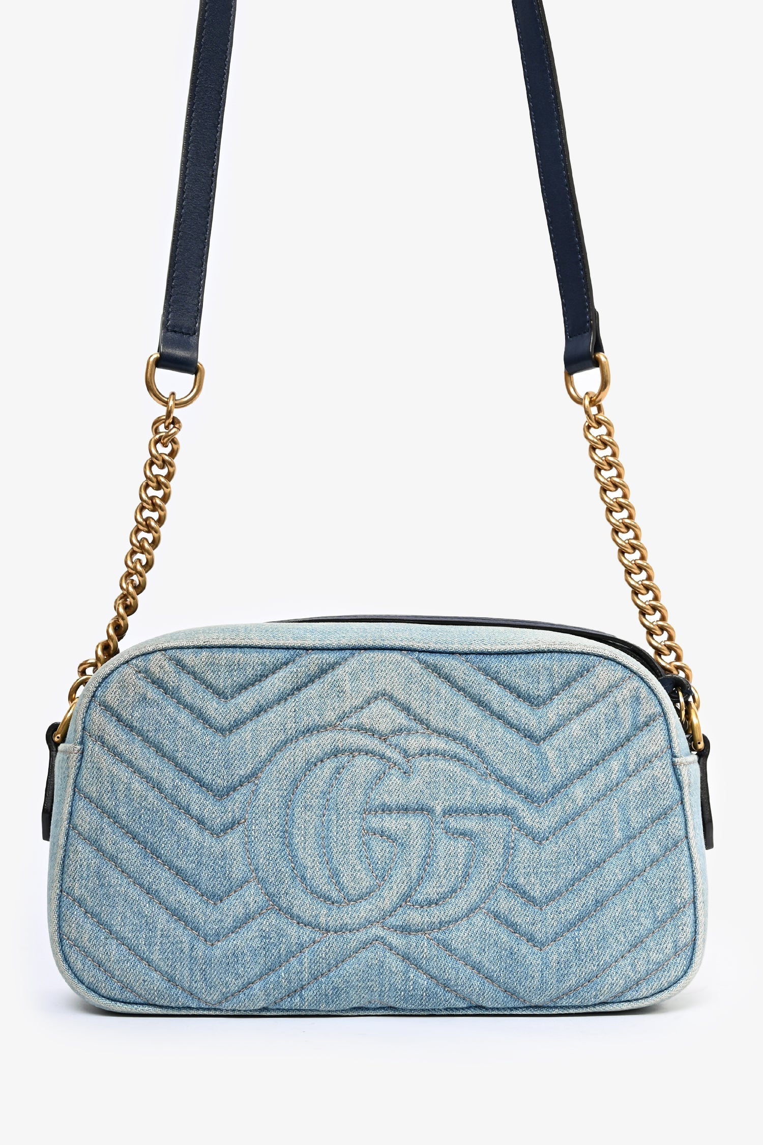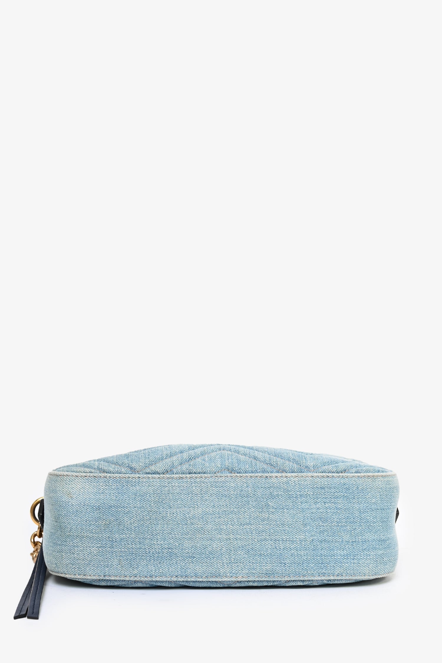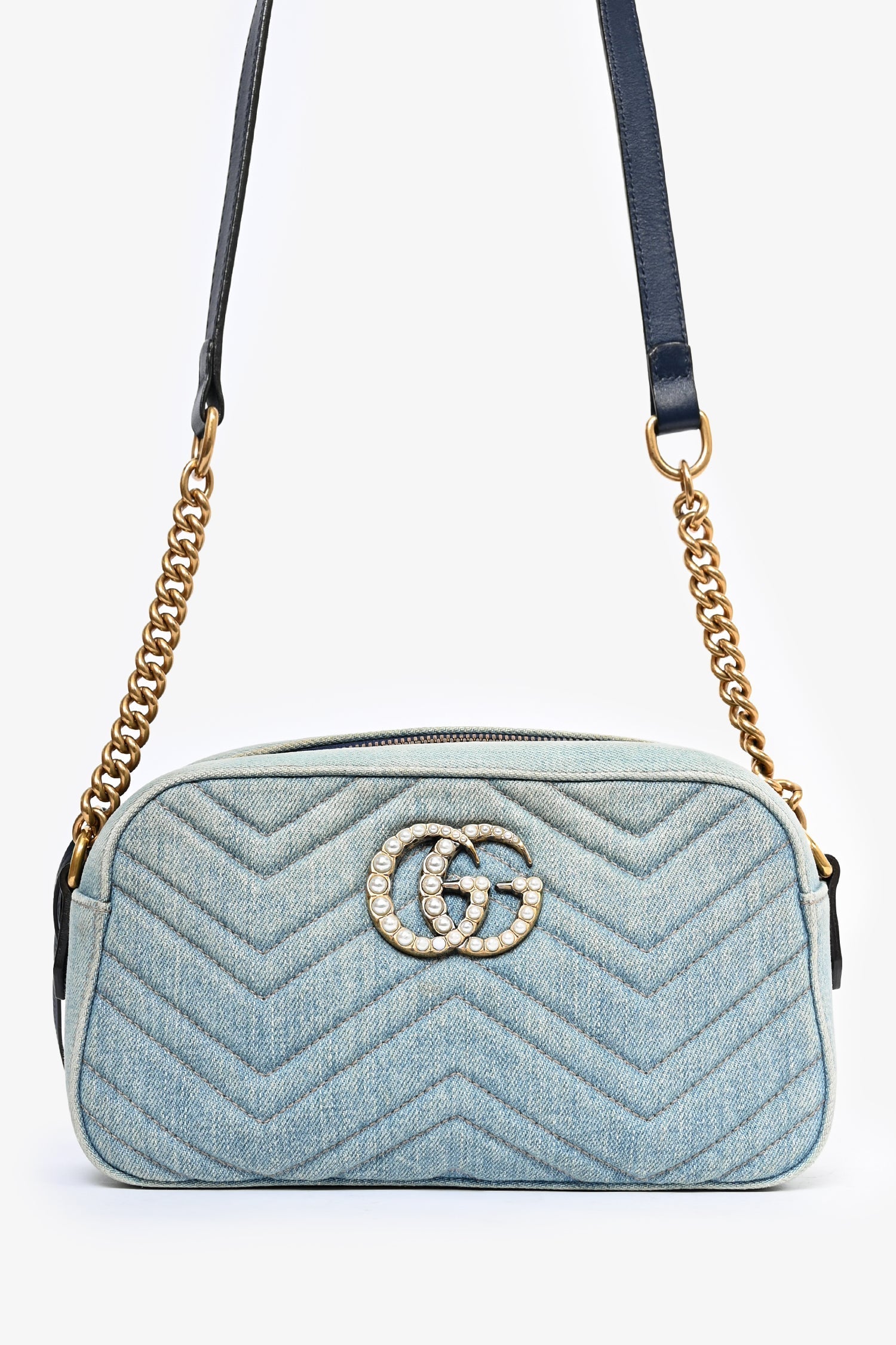 Gucci Blue Denim Pearly GG Small Marmont Camera Bag